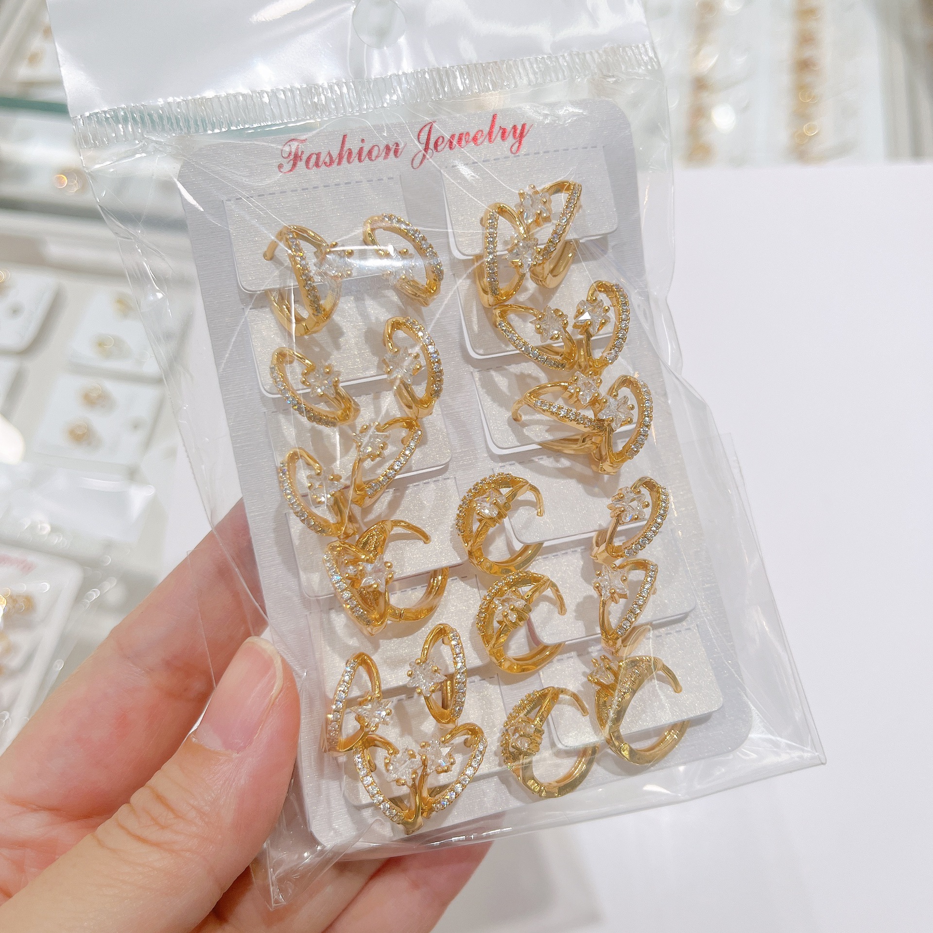 跨境耳扣微镶星星锆石多层精致耳环女个性耳饰品高级感轻奢时尚