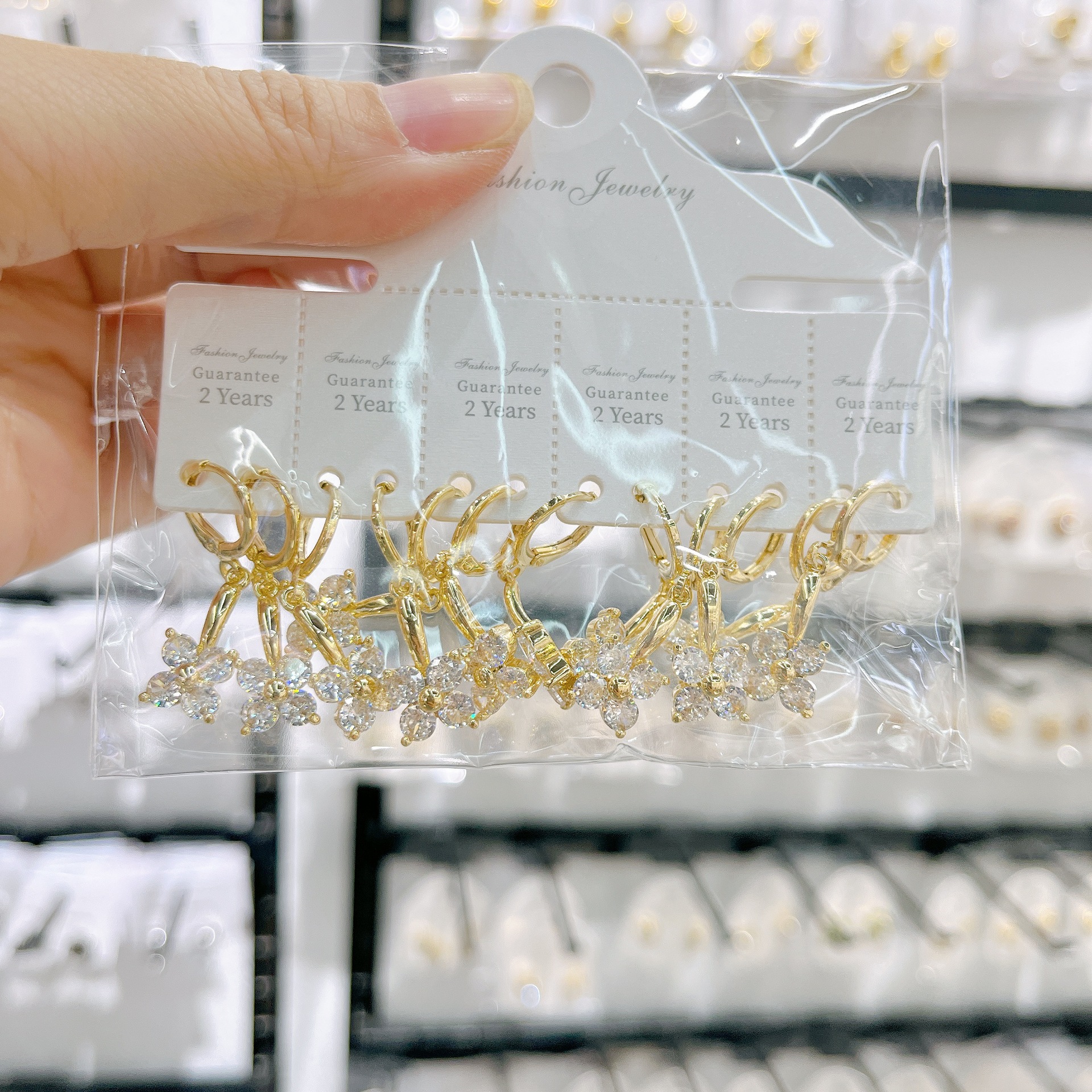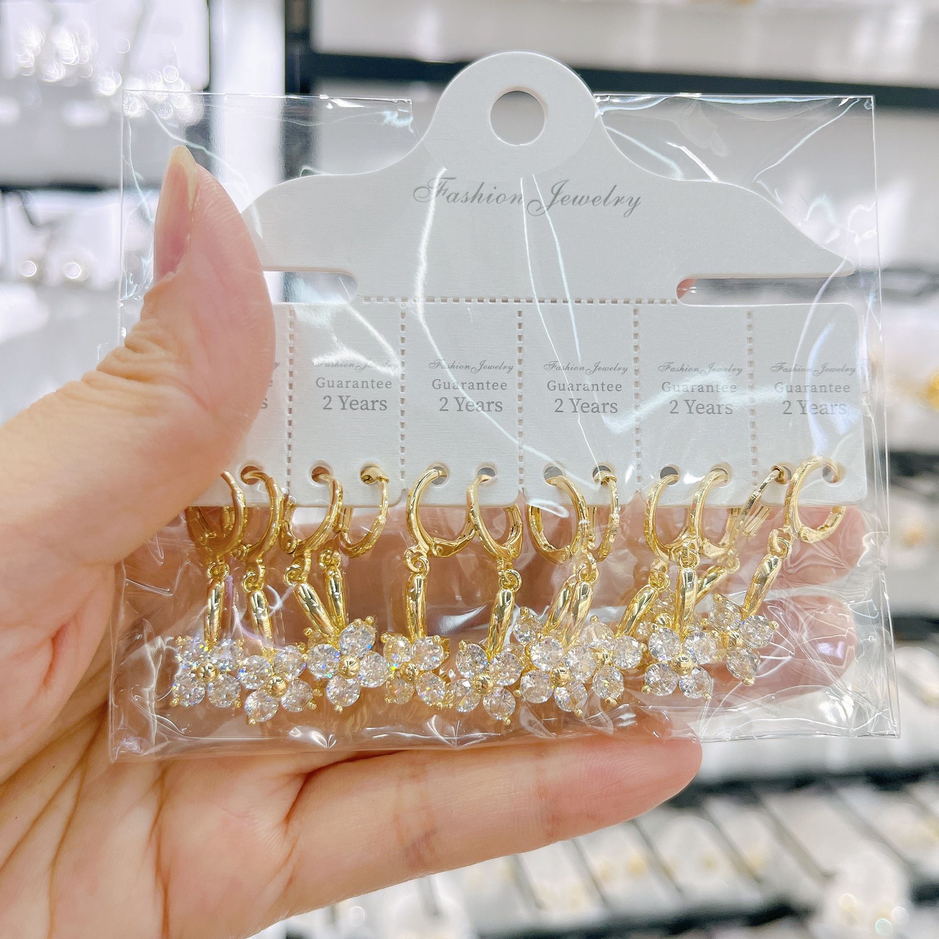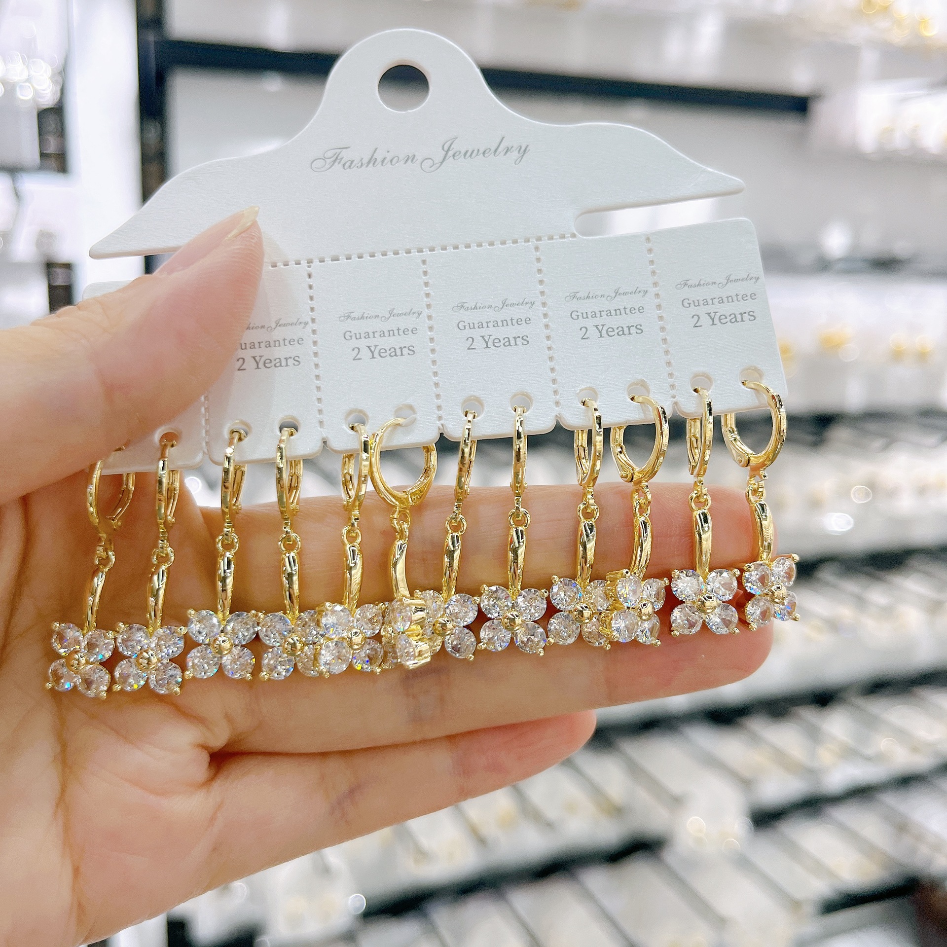 跨境耳环锆石花朵耳扣女时尚网红气质耳饰气质感链条个性气质简约