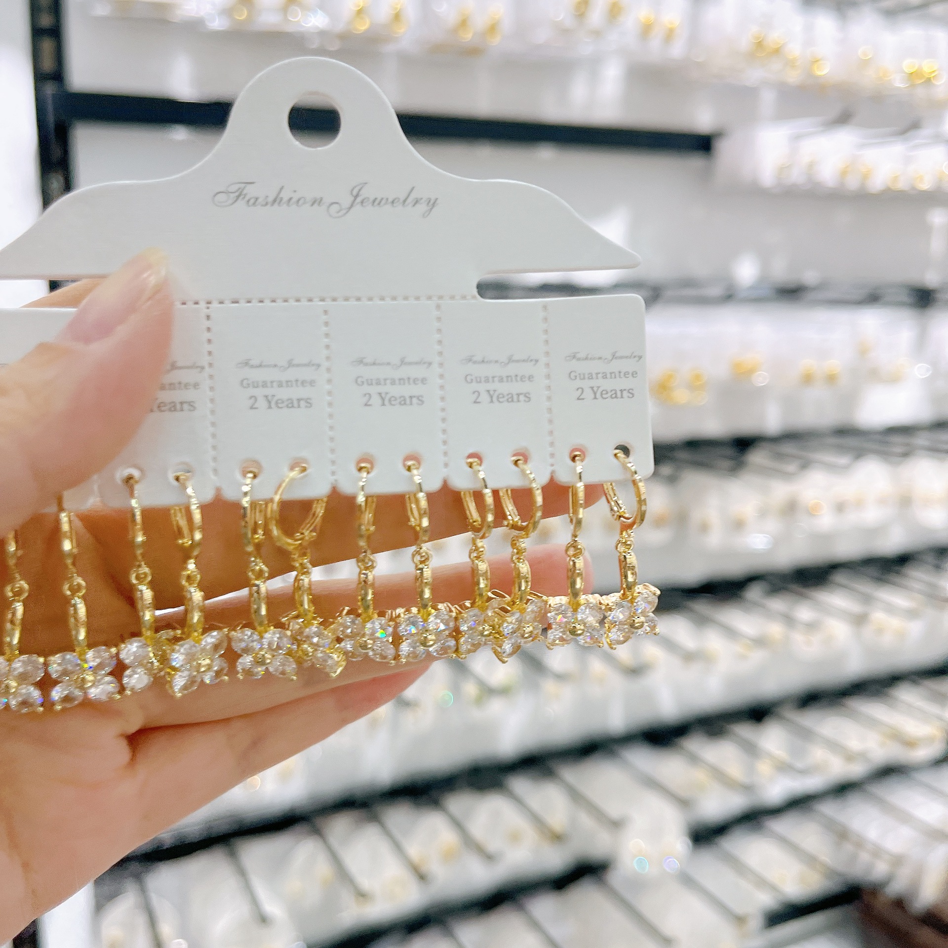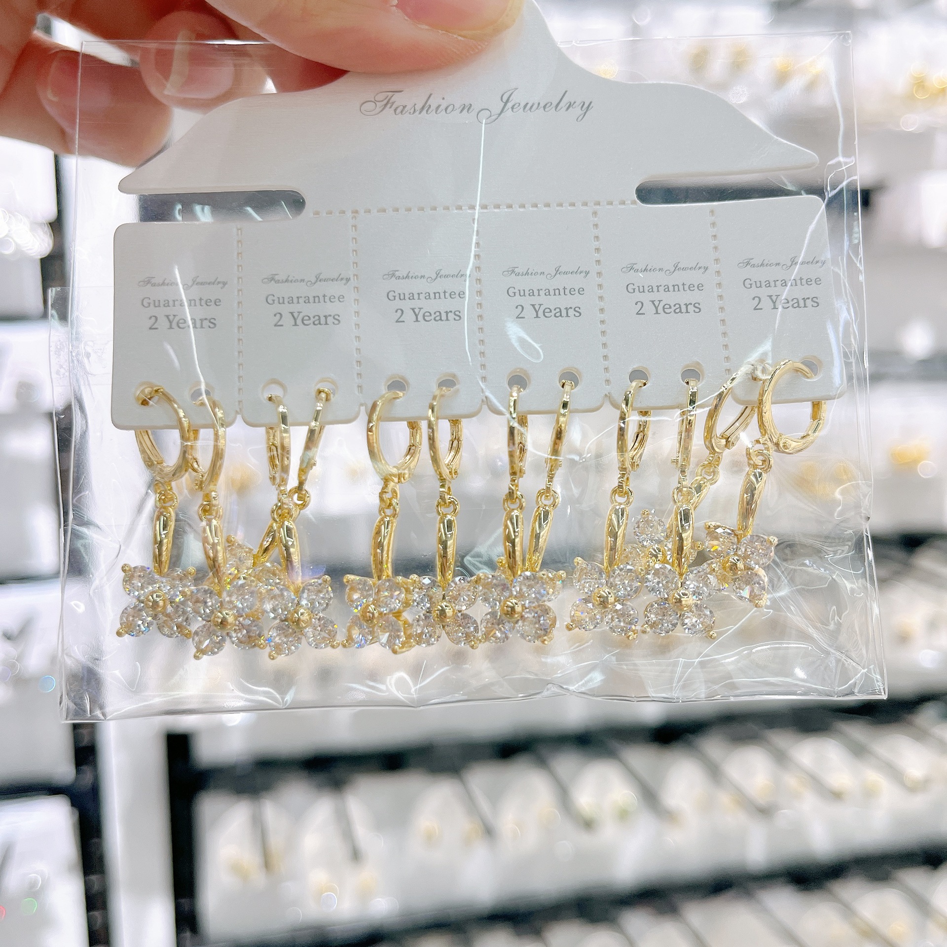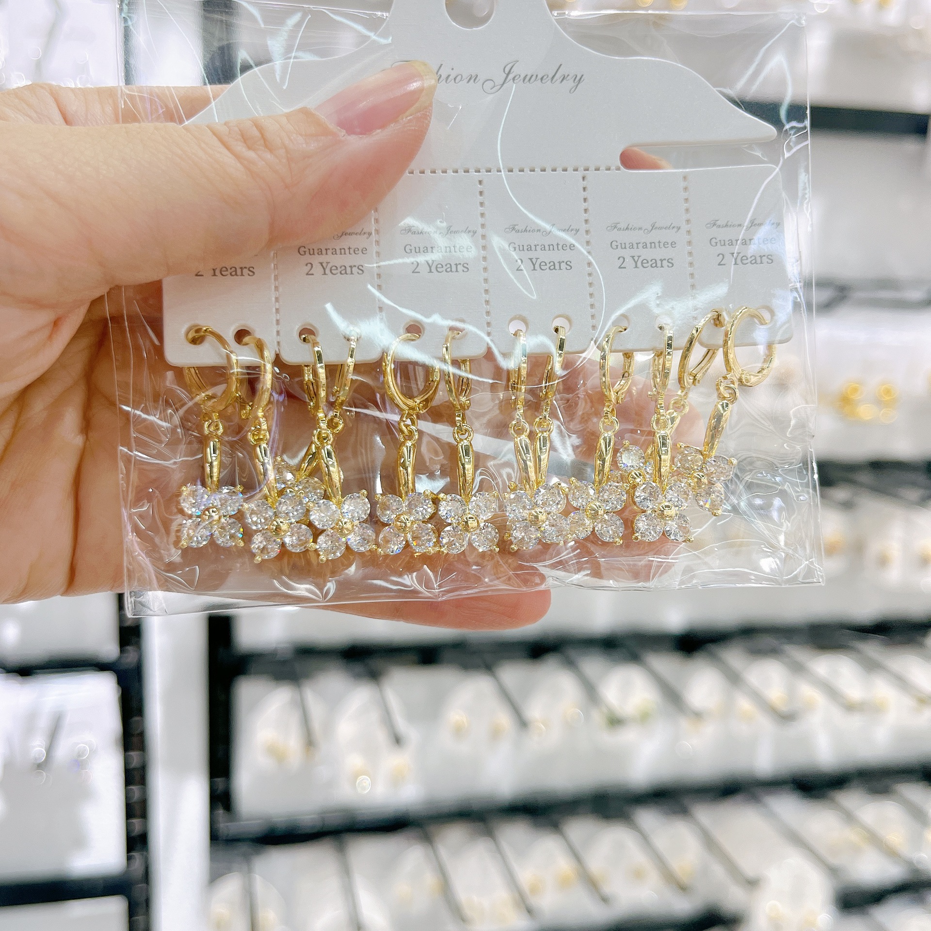 跨境耳环锆石花朵耳扣女时尚网红气质耳饰气质感链条个性气质简约