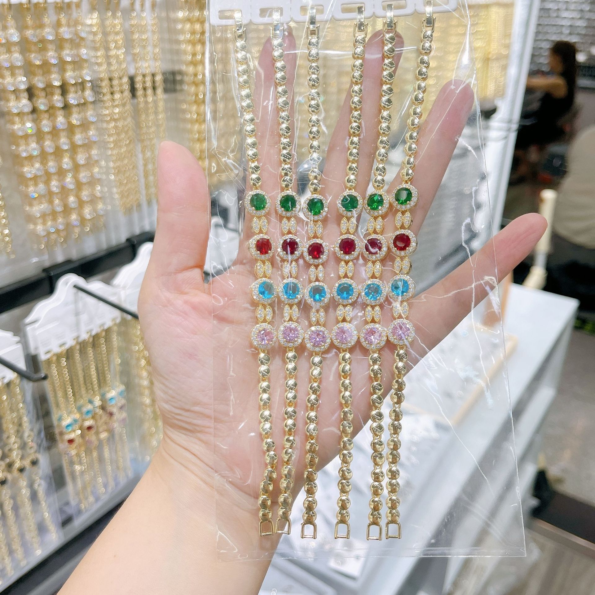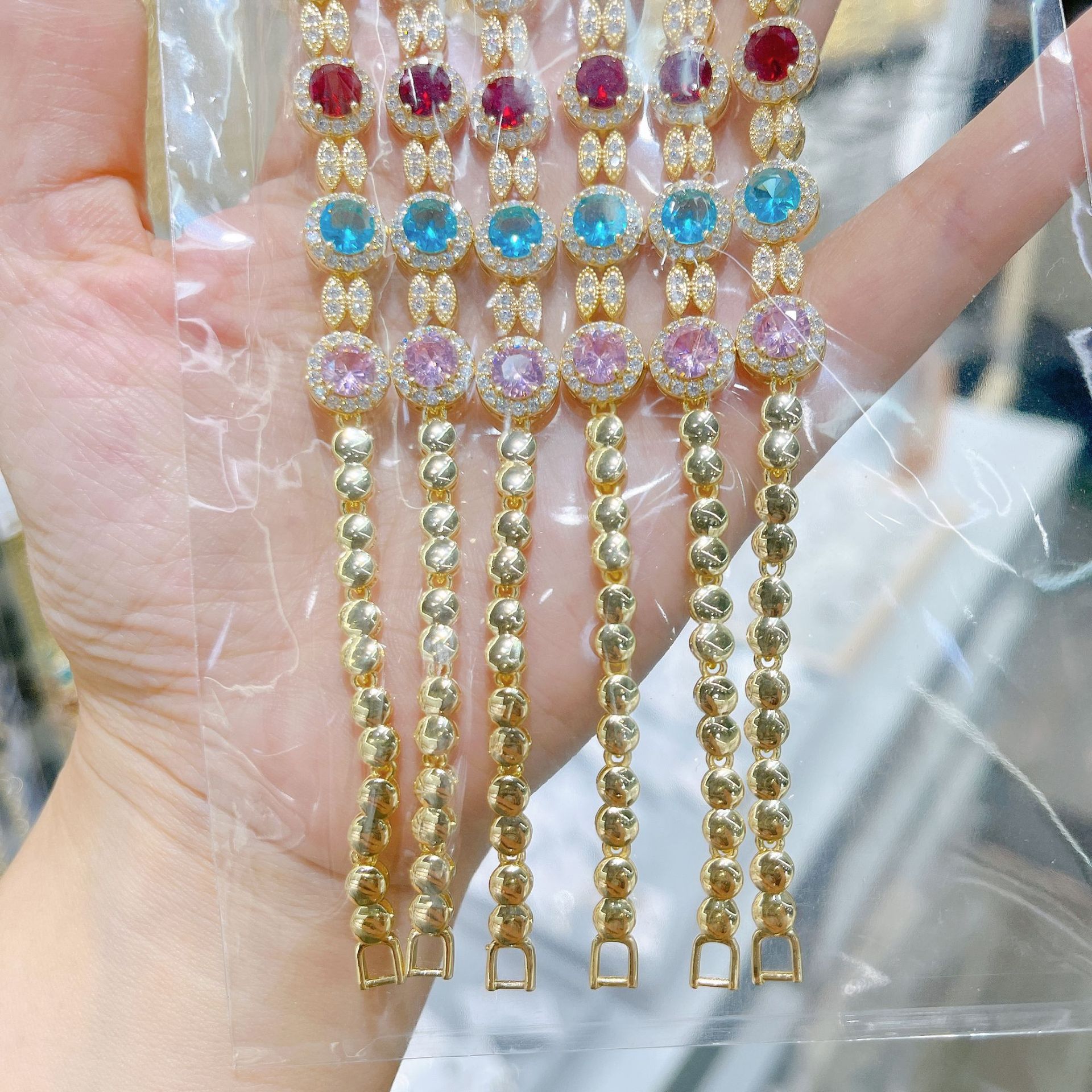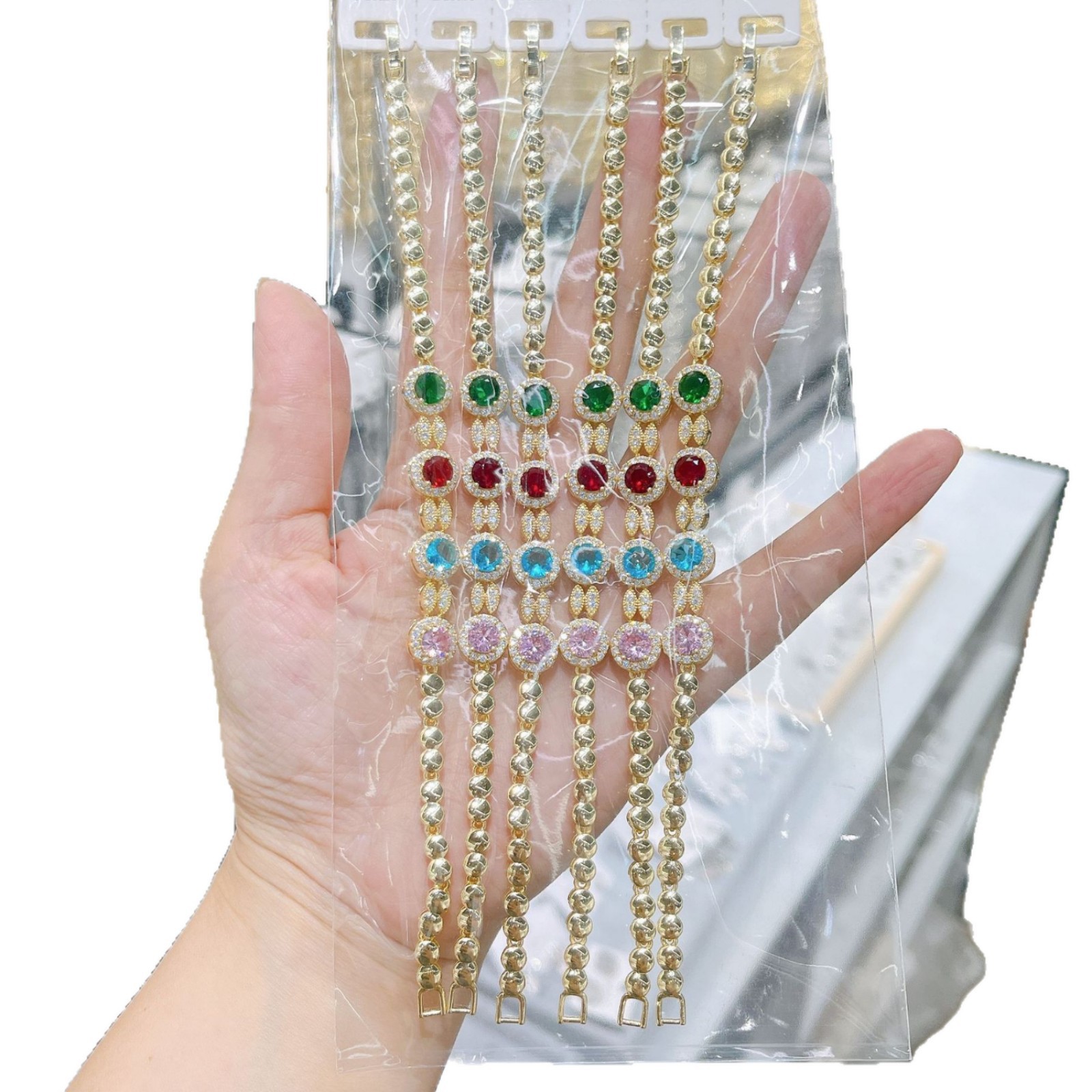 跨境手链轻奢高级感锆石镶钻金色人工宝石水晶手饰节日礼物手链女