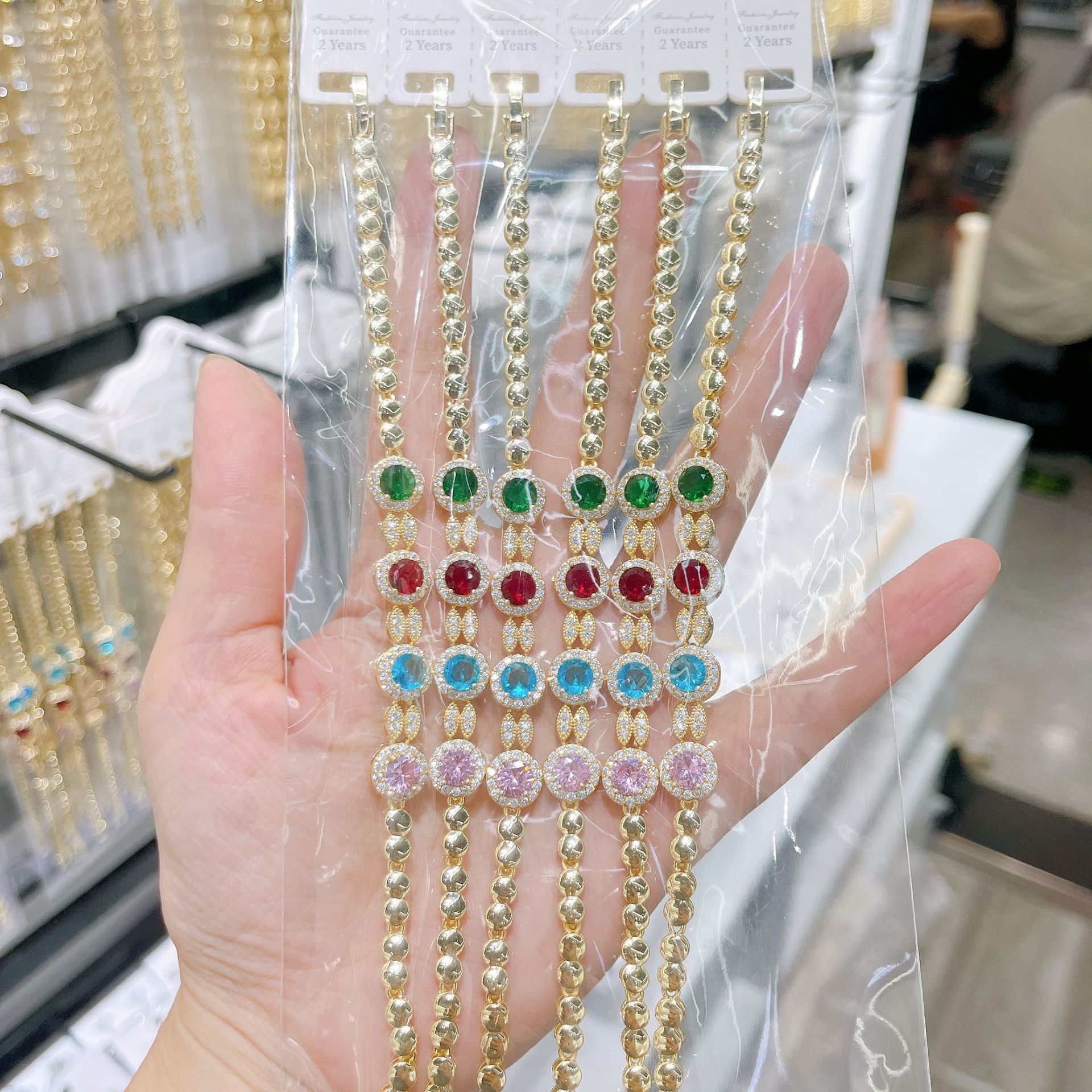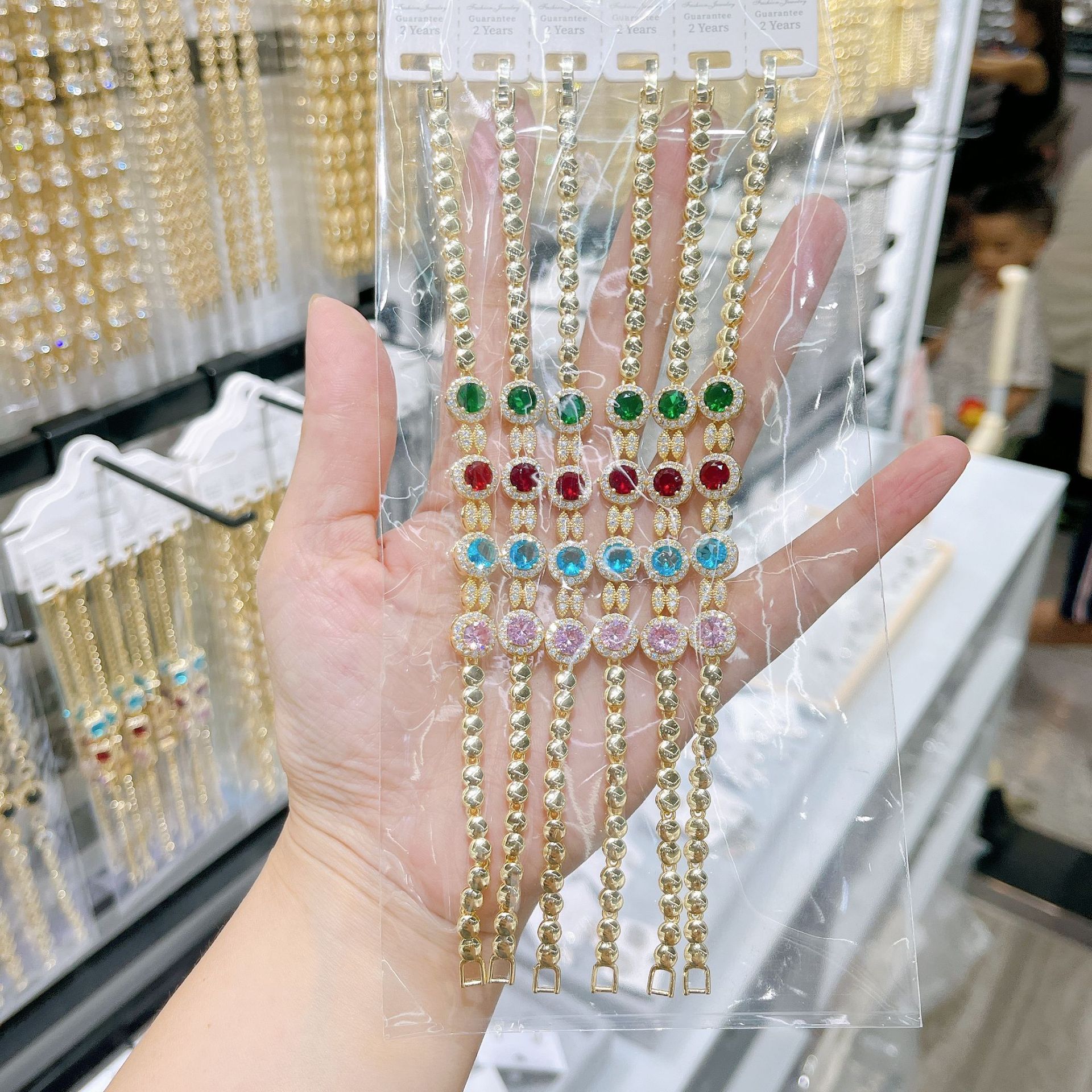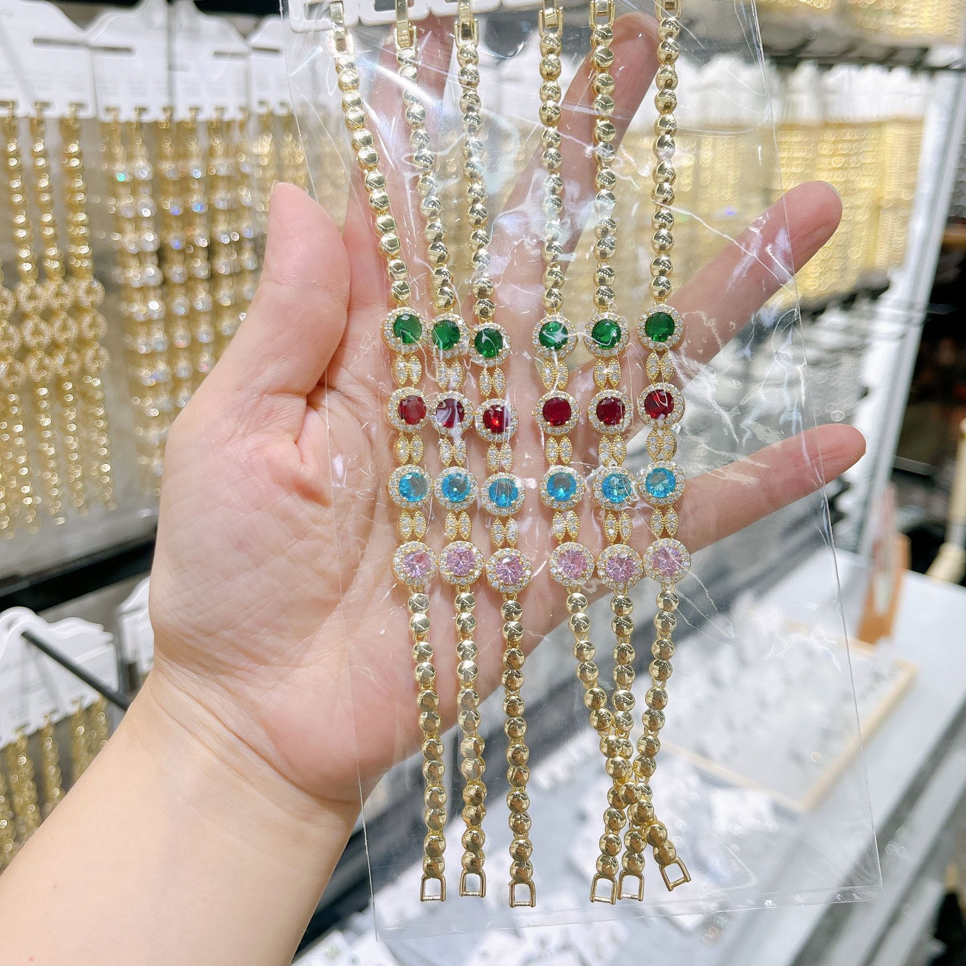 跨境手链轻奢高级感锆石镶钻金色人工宝石水晶手饰节日礼物手链女