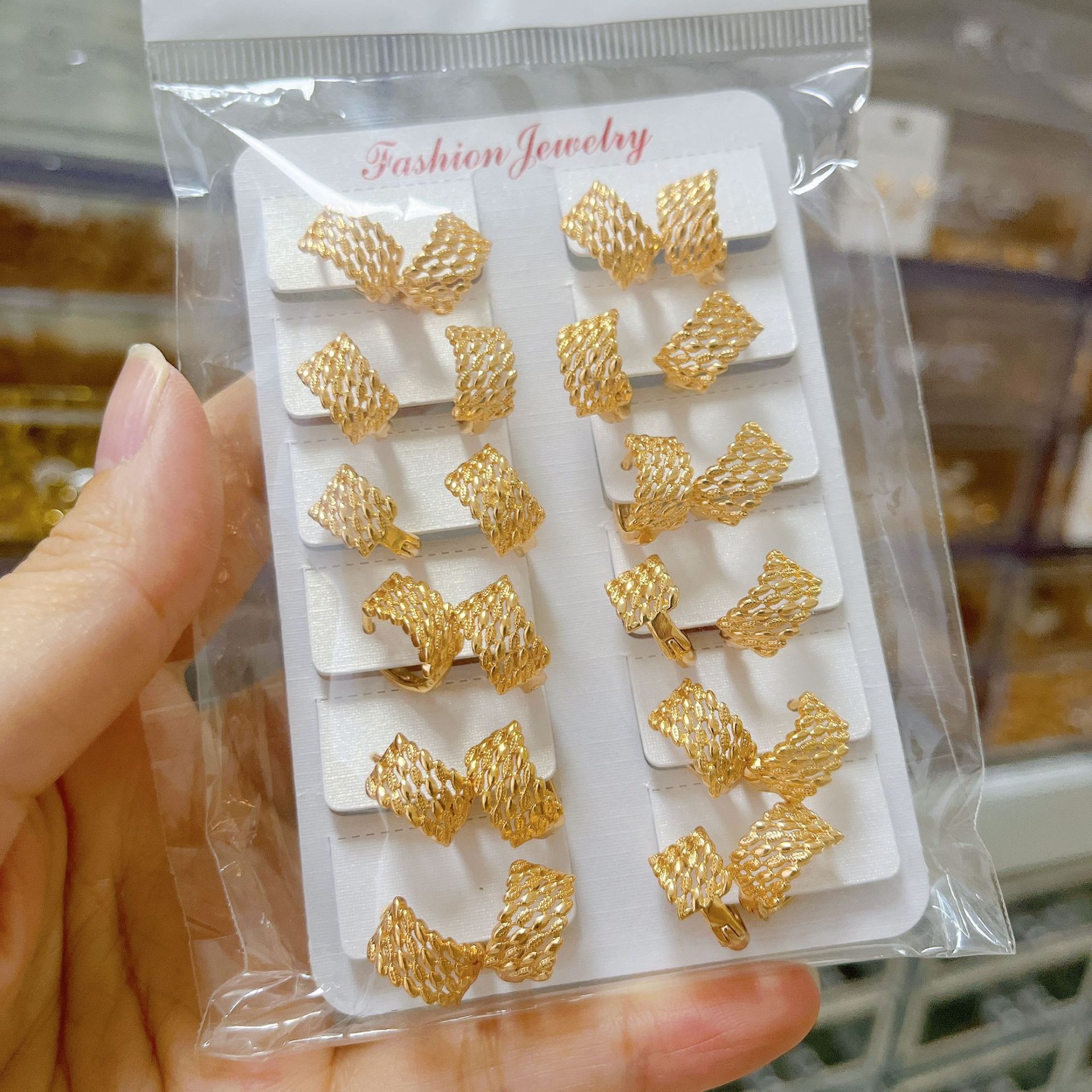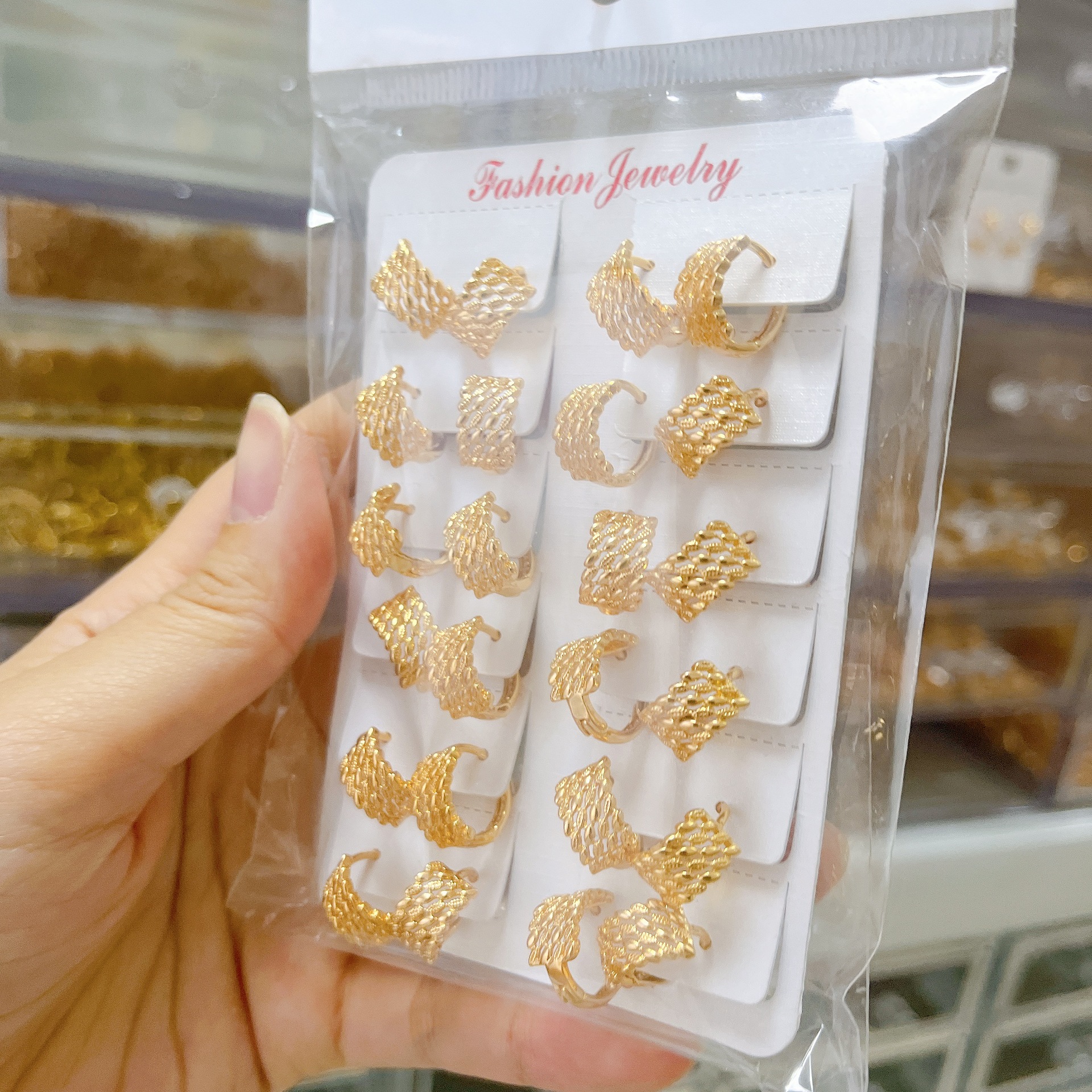 跨境耳环宽面编织镂空耳扣镀金18K耳圈耳饰圆圈简约时尚日常金属
