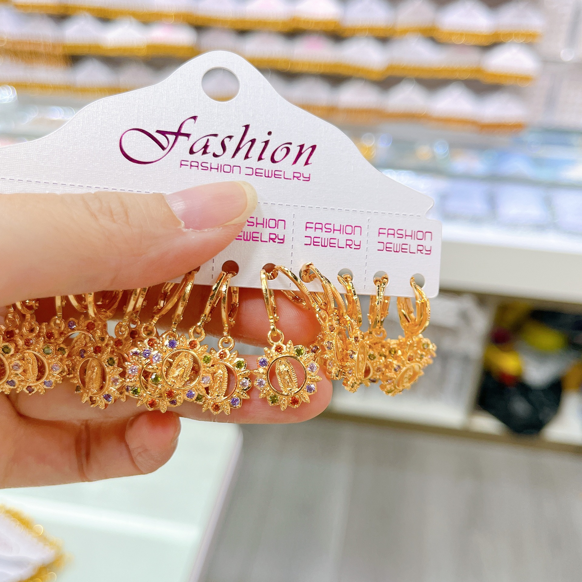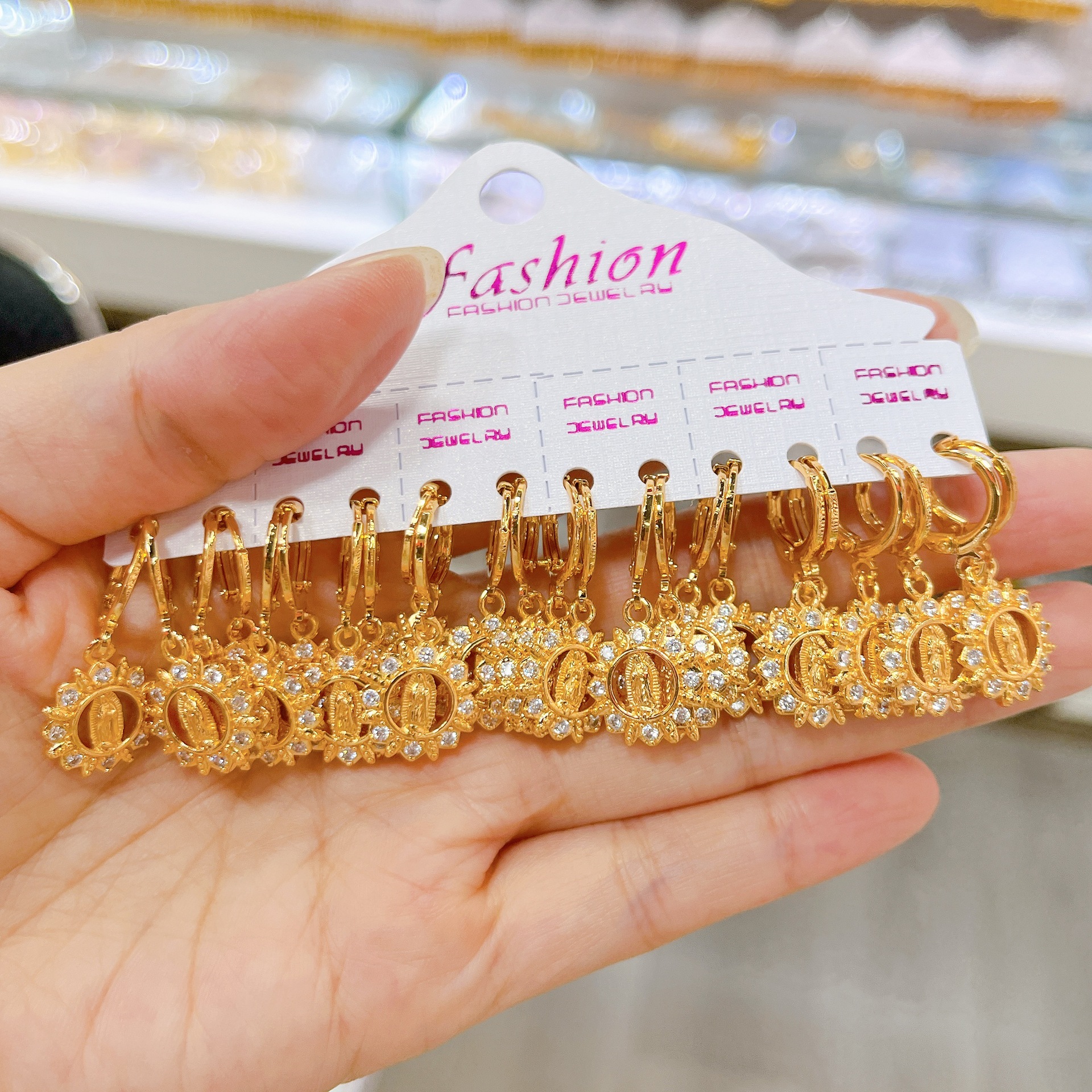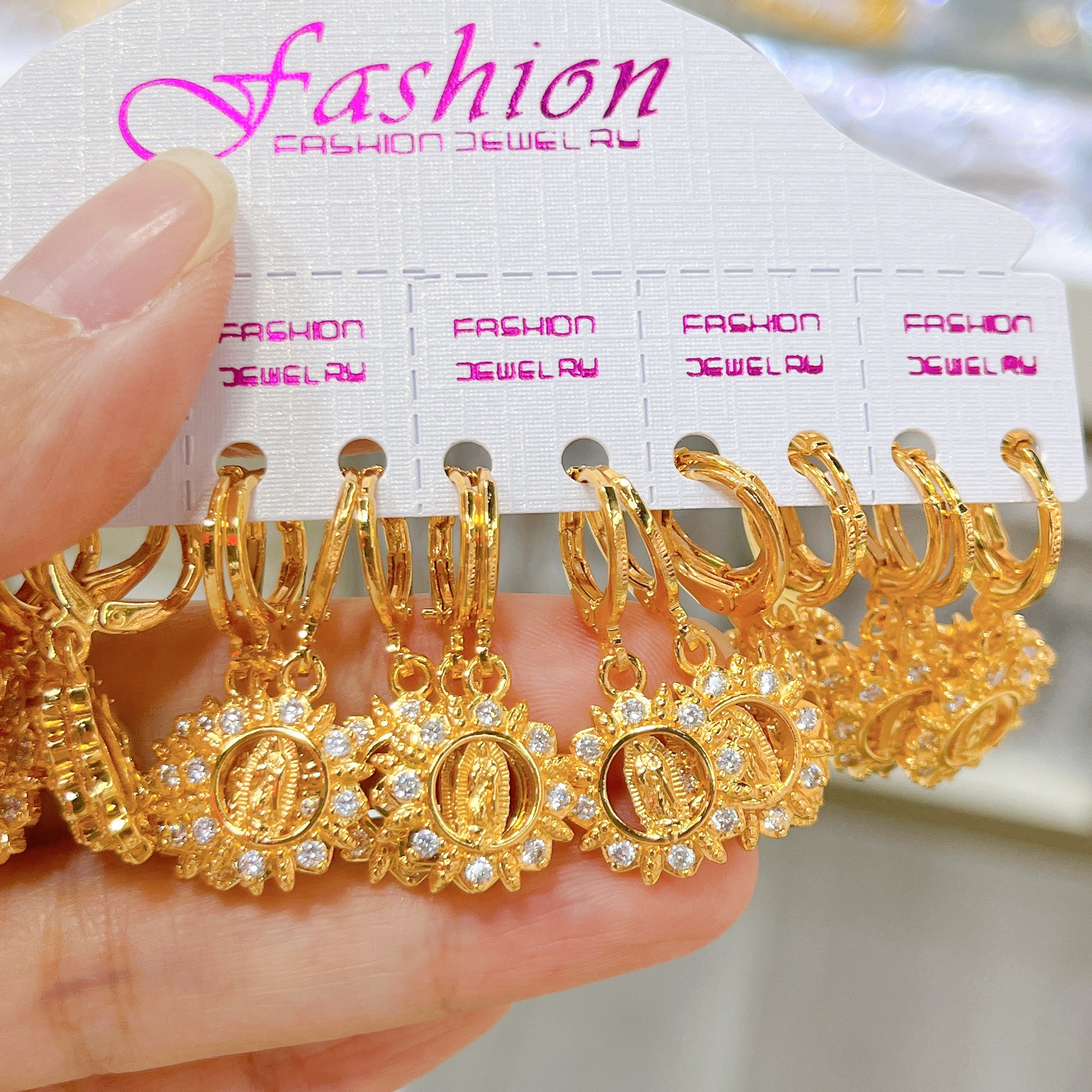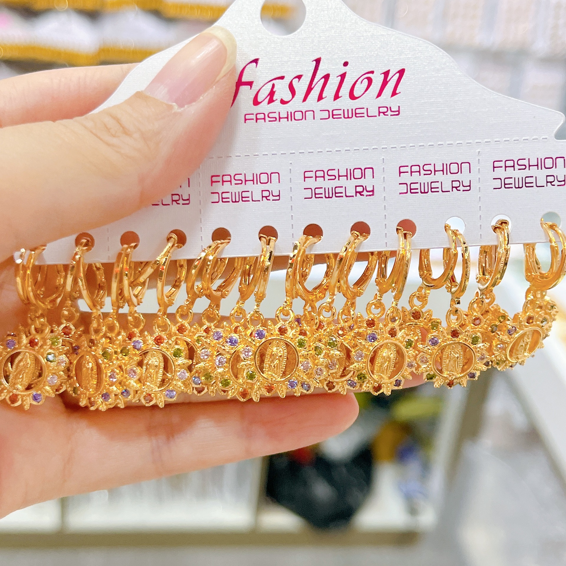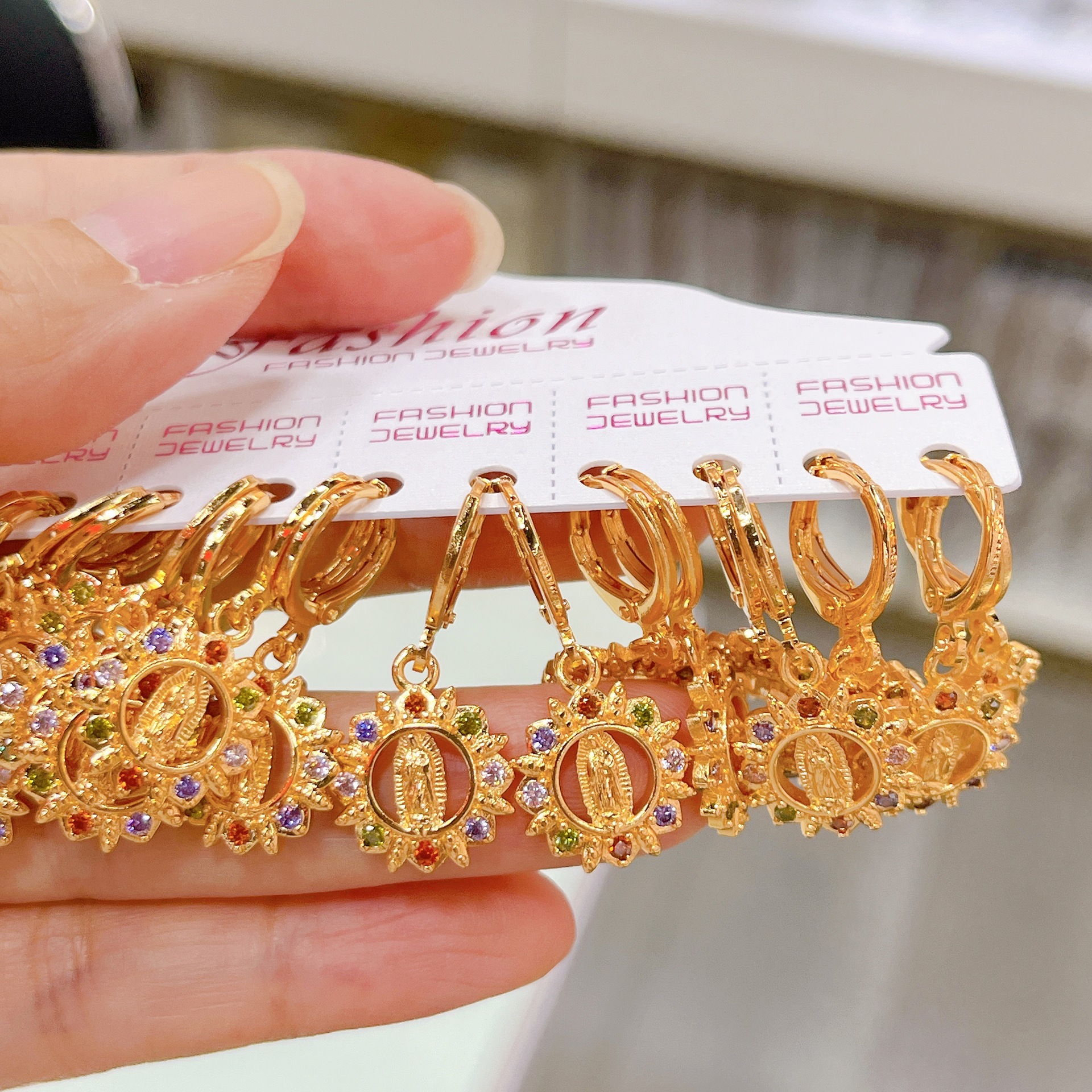 跨境耳扣欧美潮圣母玛利亚耳环女黄铜电镀微镶锆石神像宗教耳坠