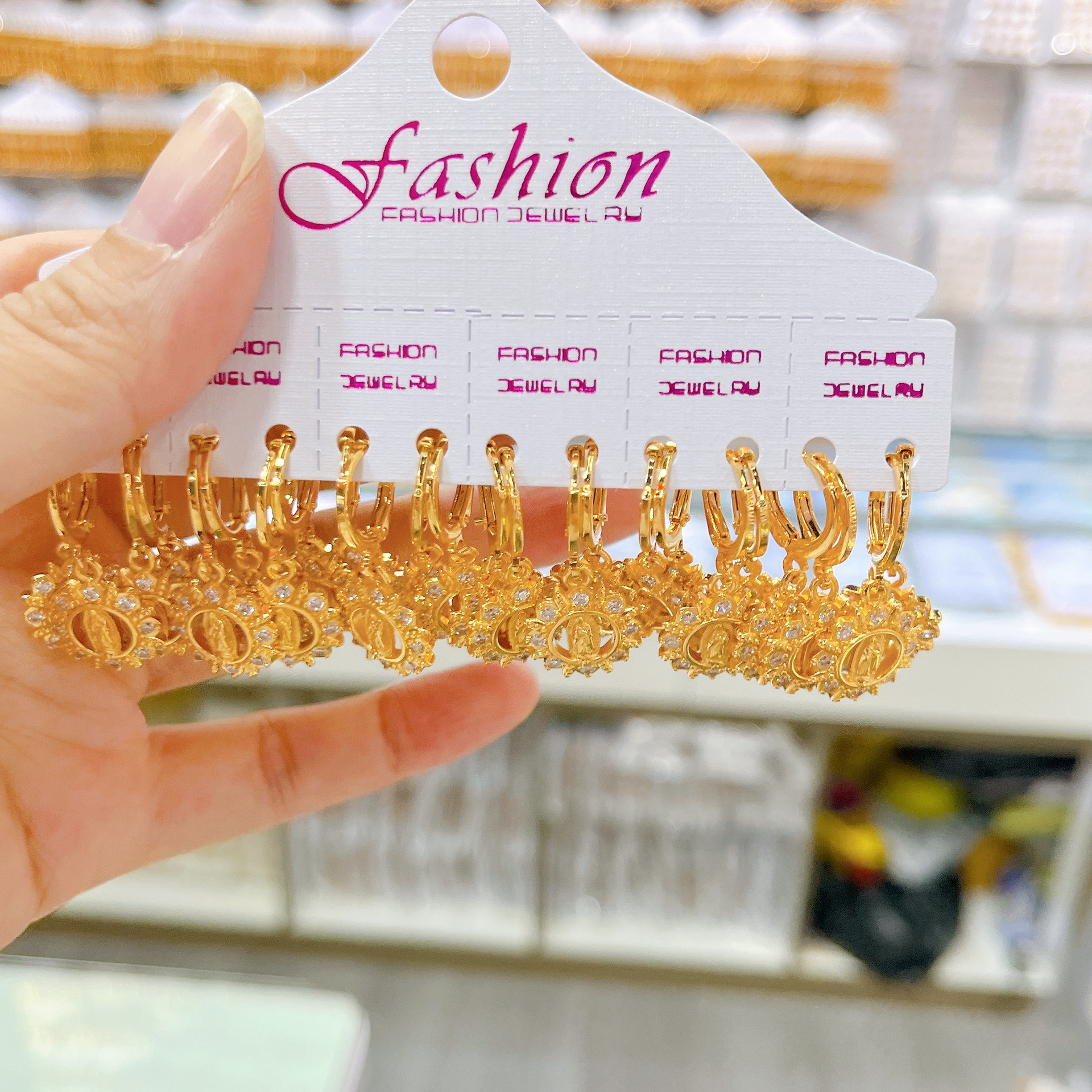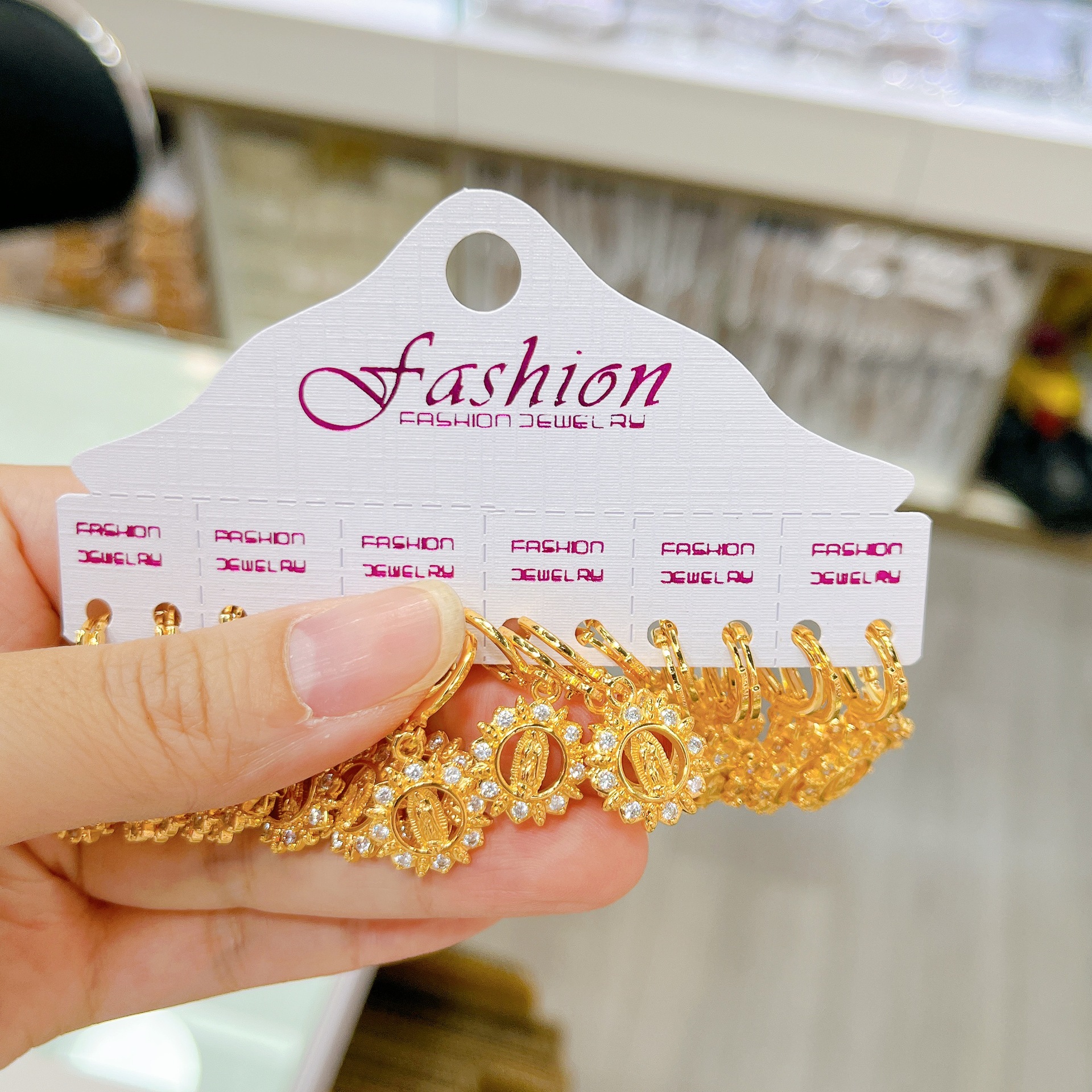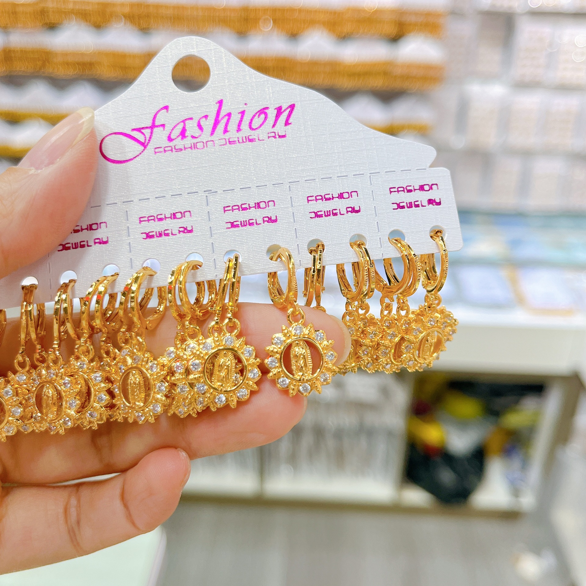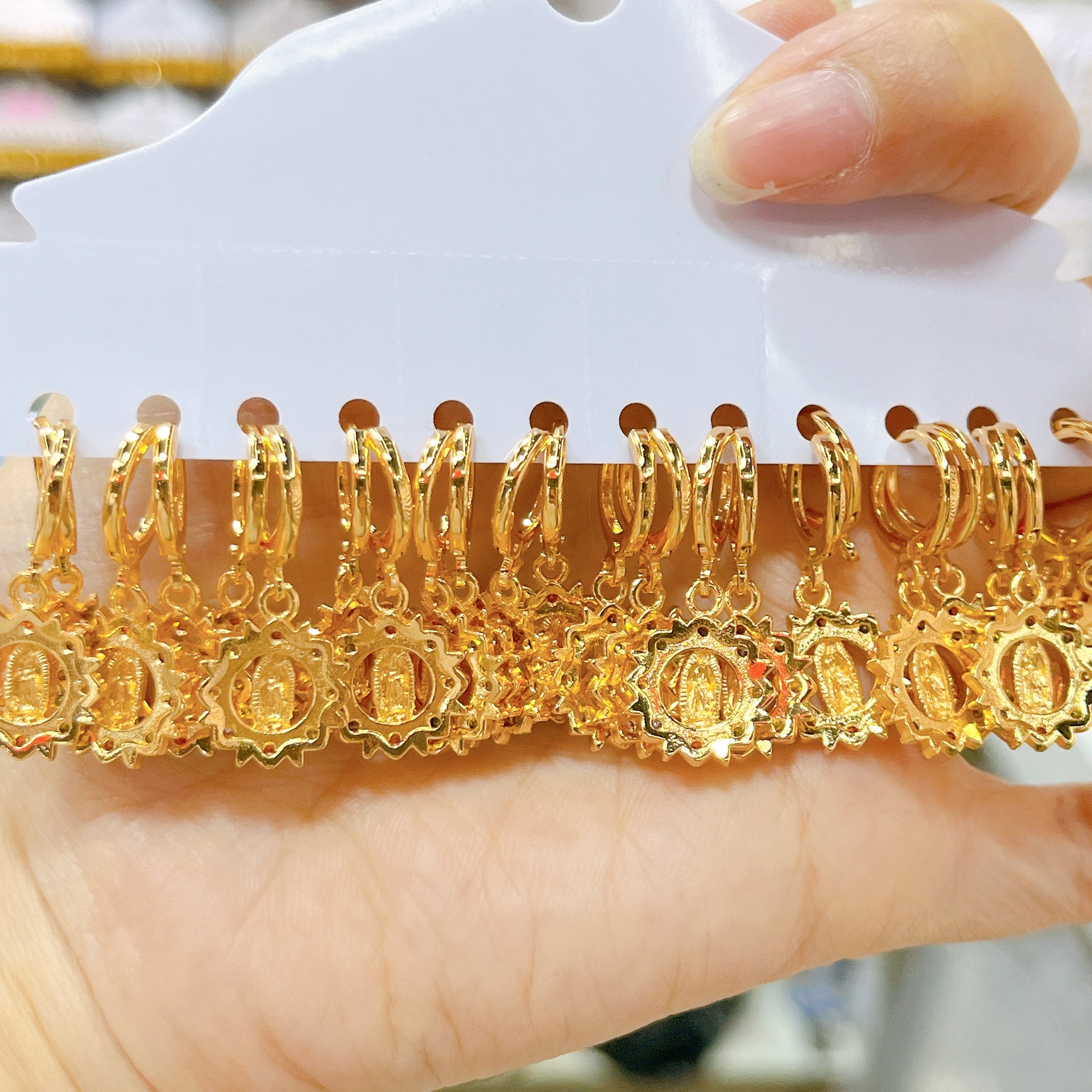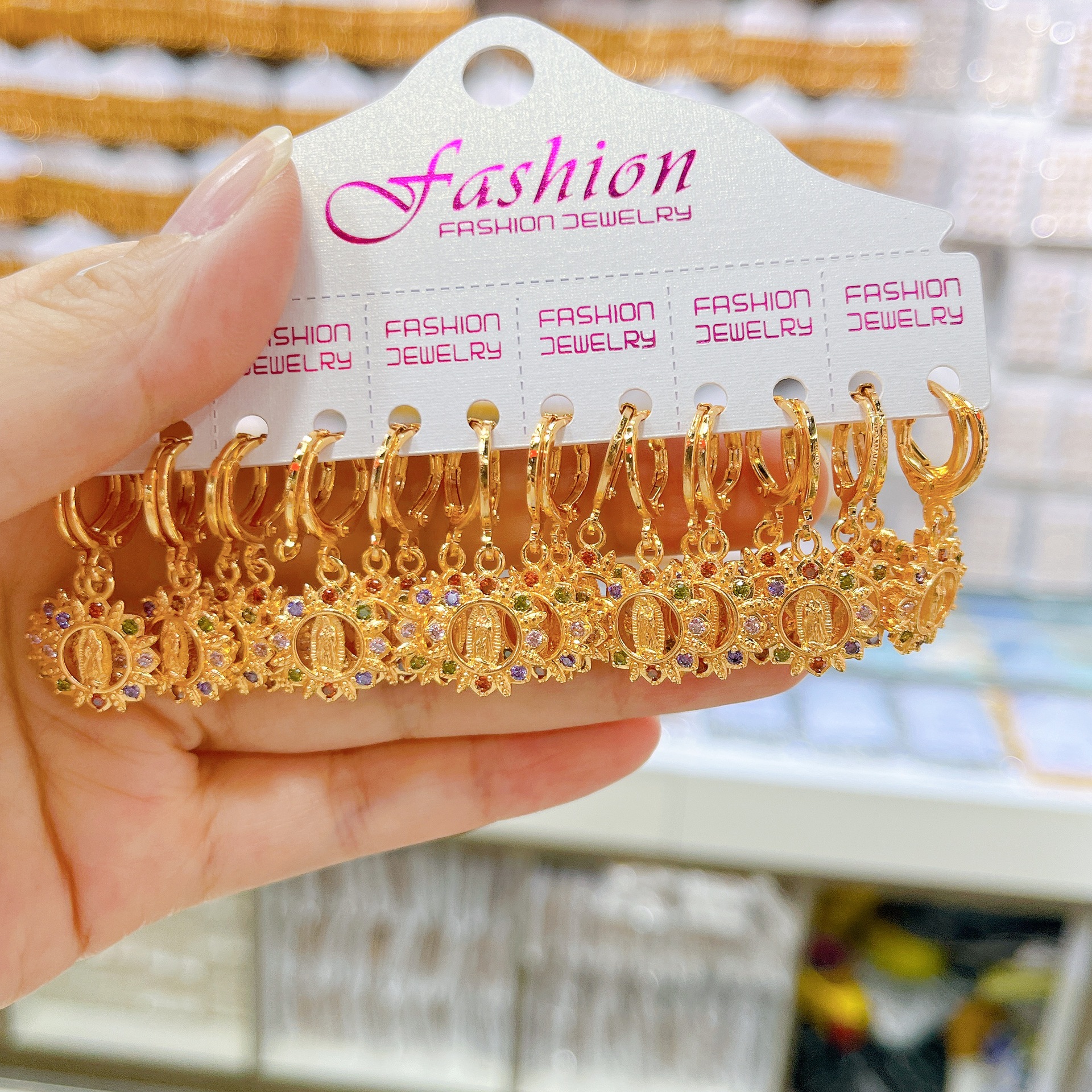 跨境耳扣欧美潮圣母玛利亚耳环女黄铜电镀微镶锆石神像宗教耳坠