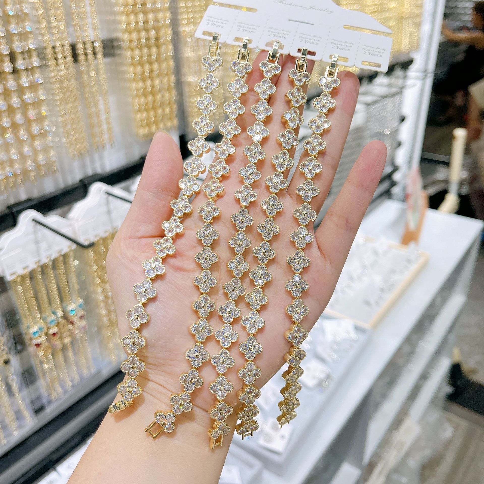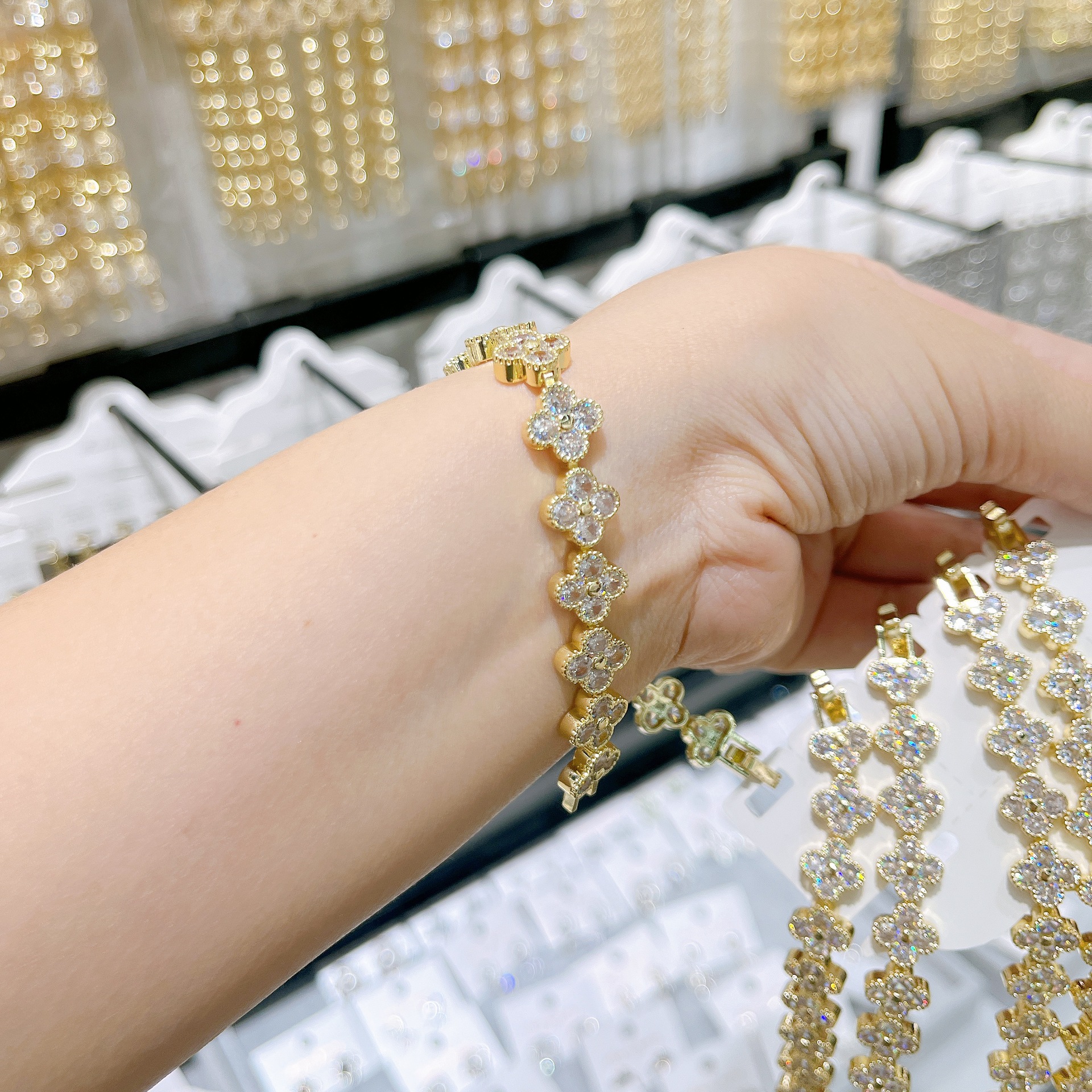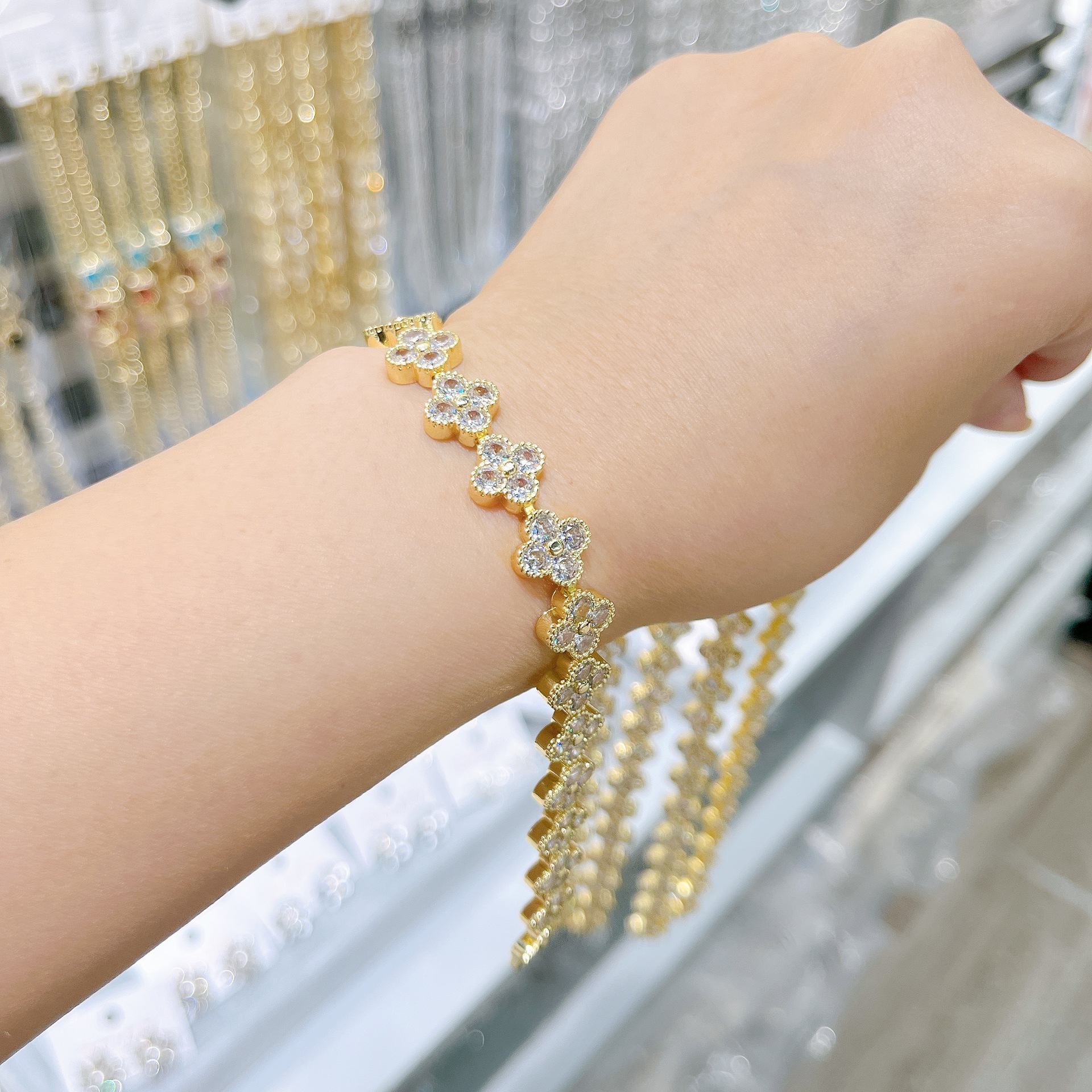 跨境手链满钻四叶草时尚高级感轻奢精致锆石手链女生设计感手饰