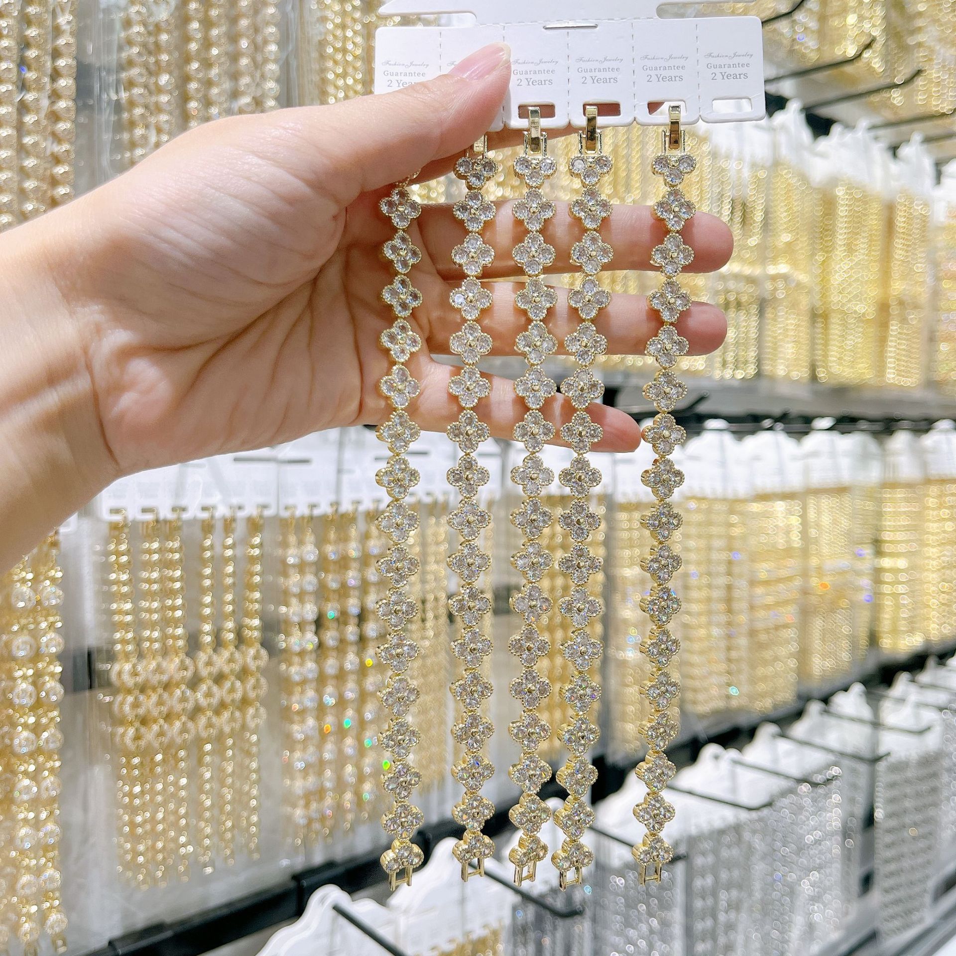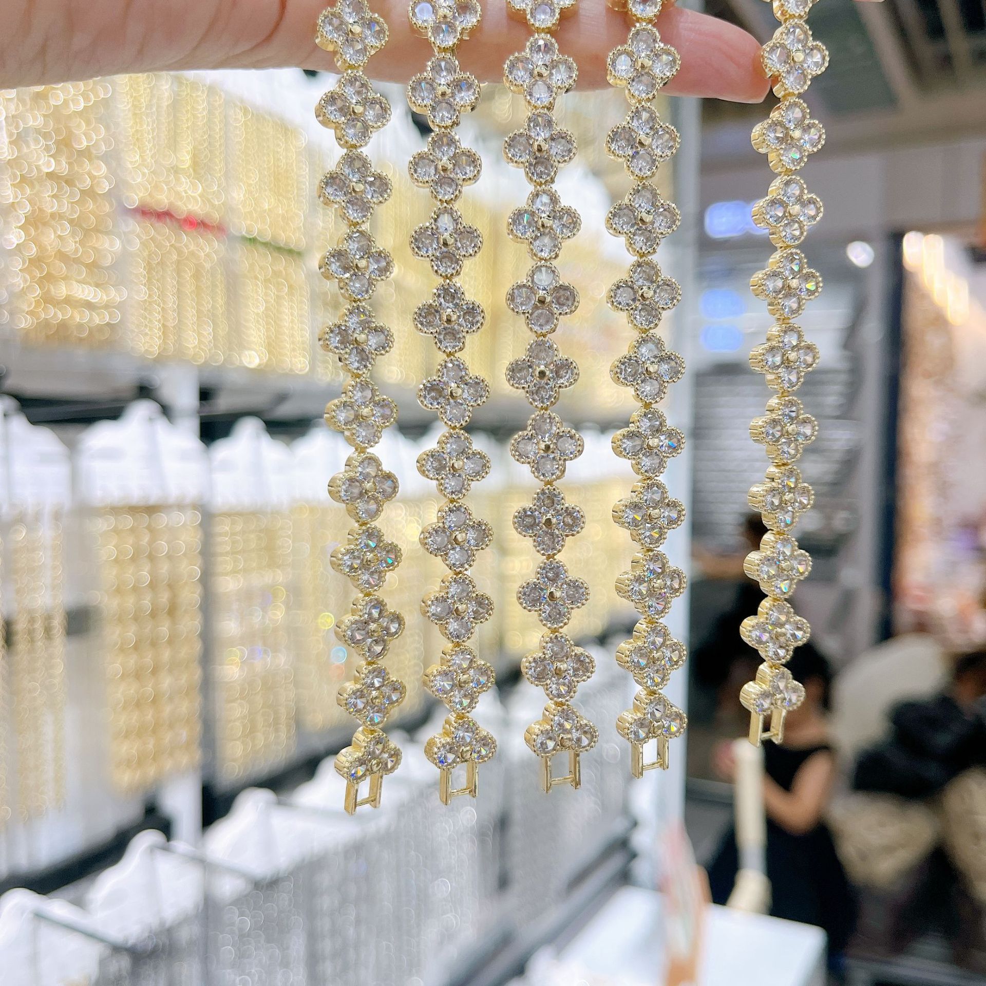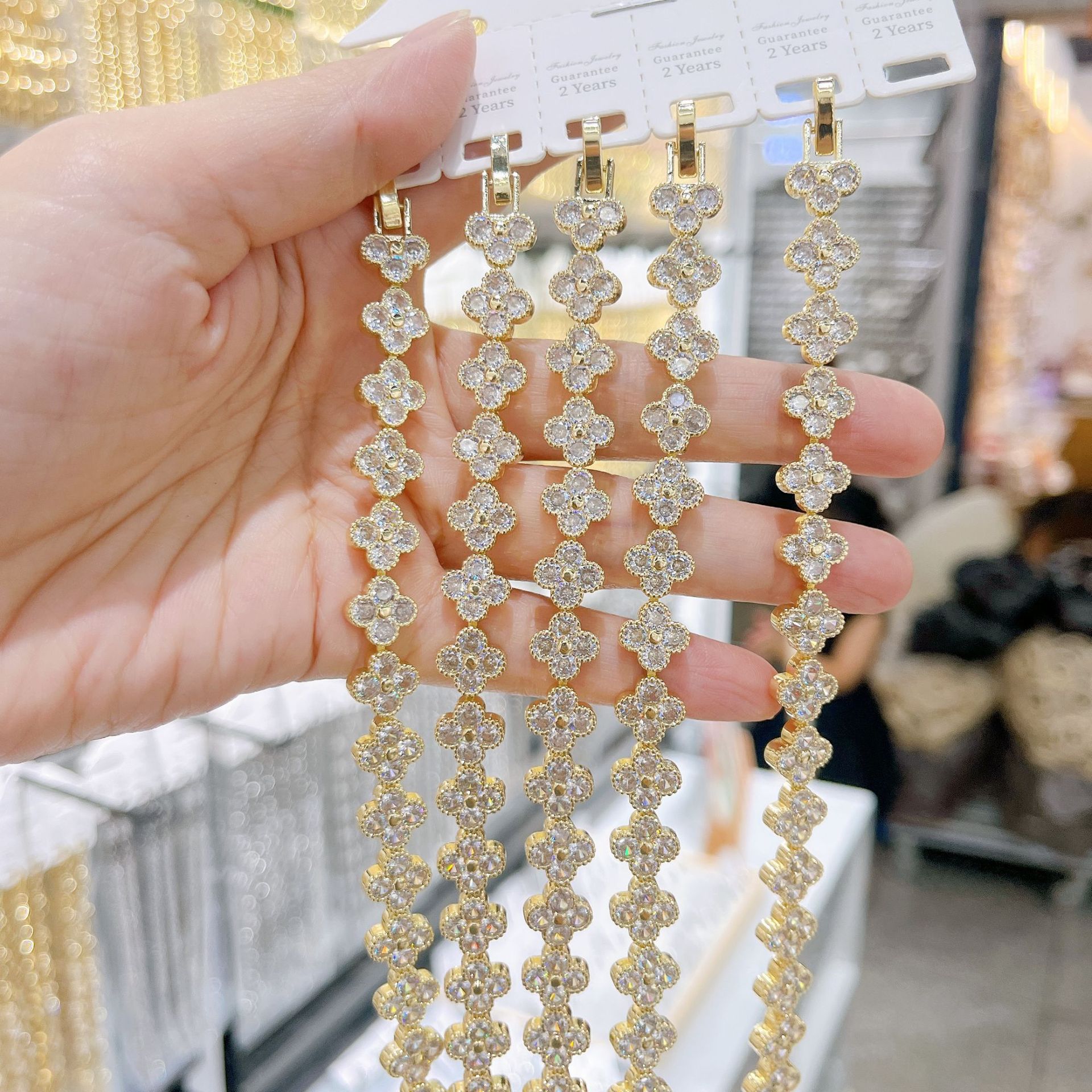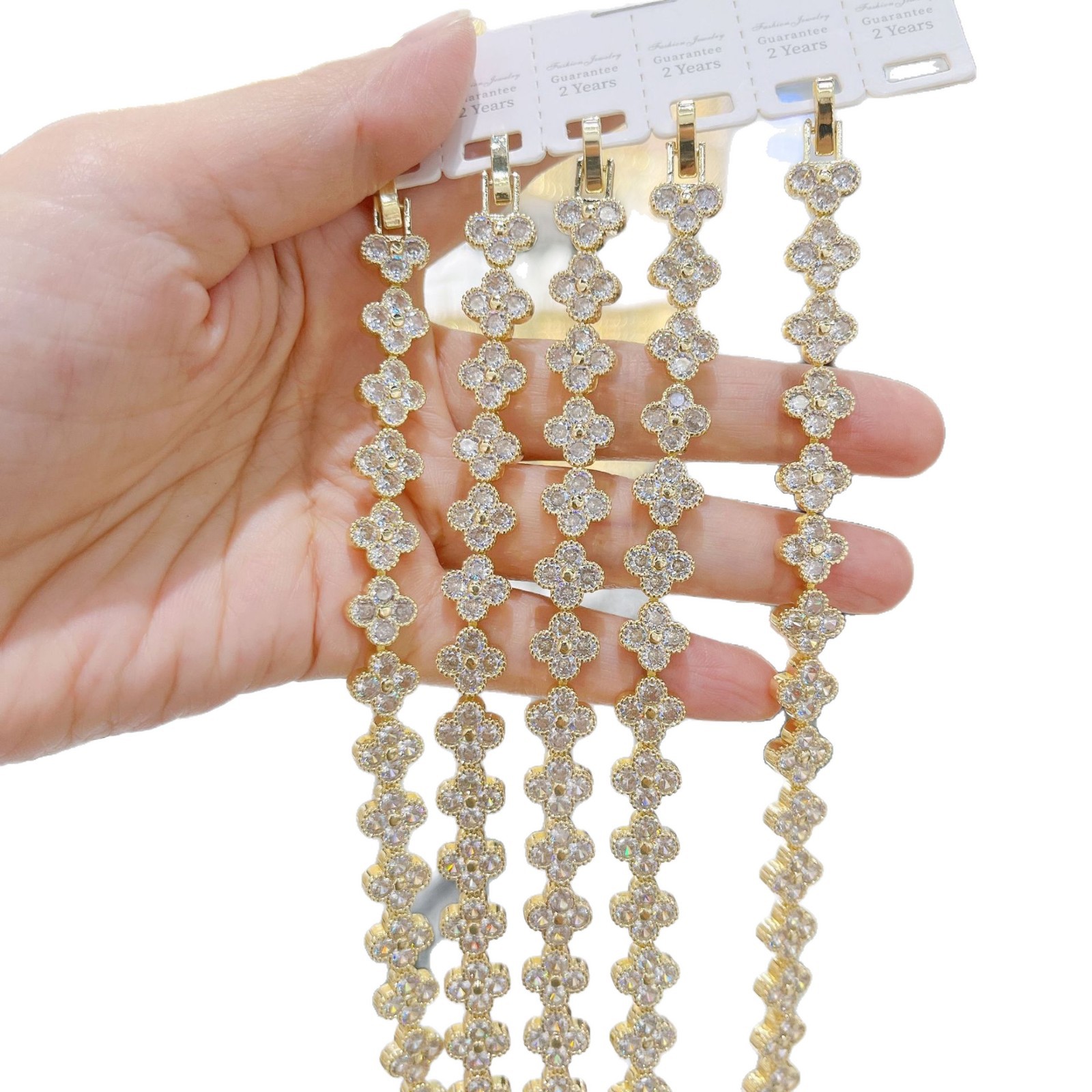 跨境手链满钻四叶草时尚高级感轻奢精致锆石手链女生设计感手饰