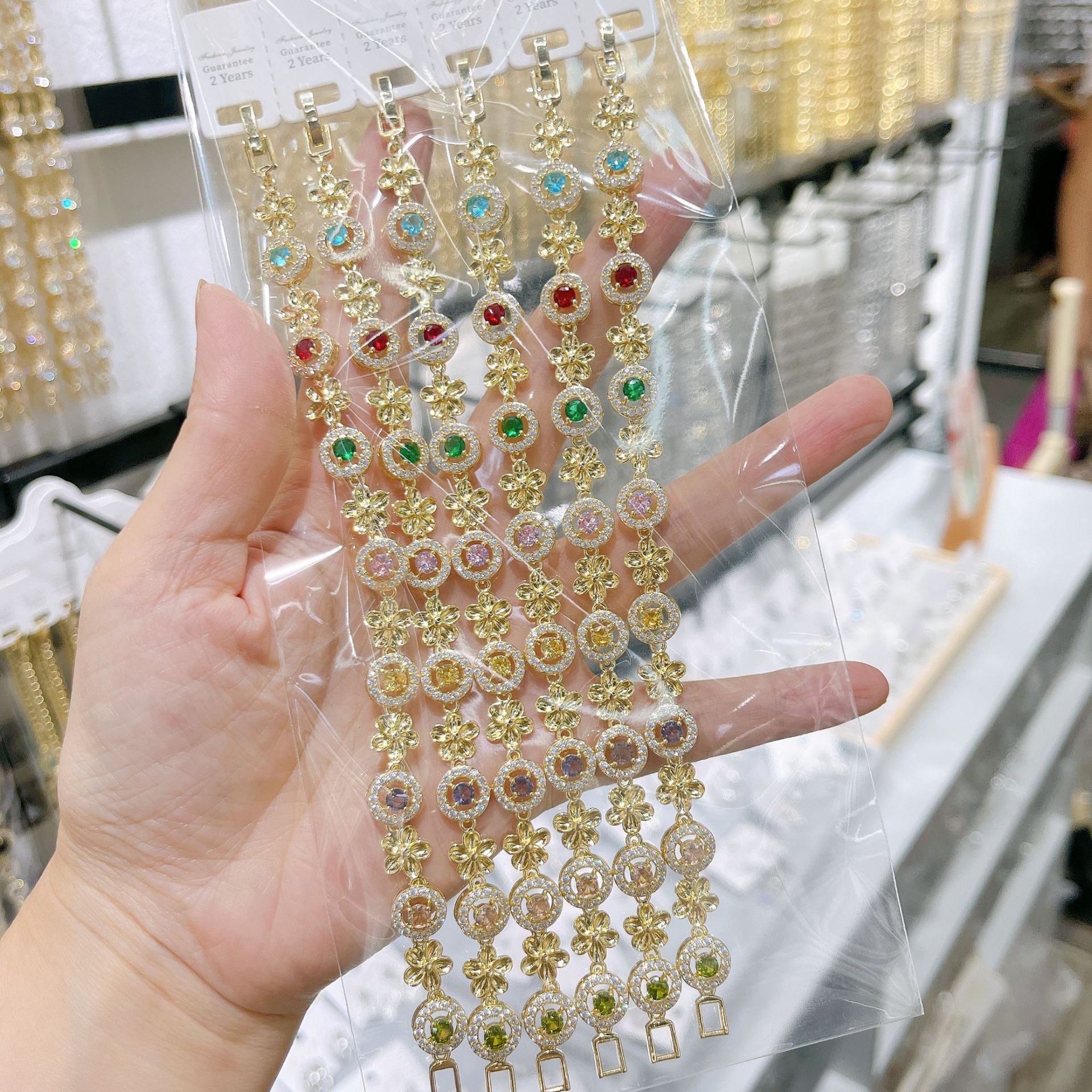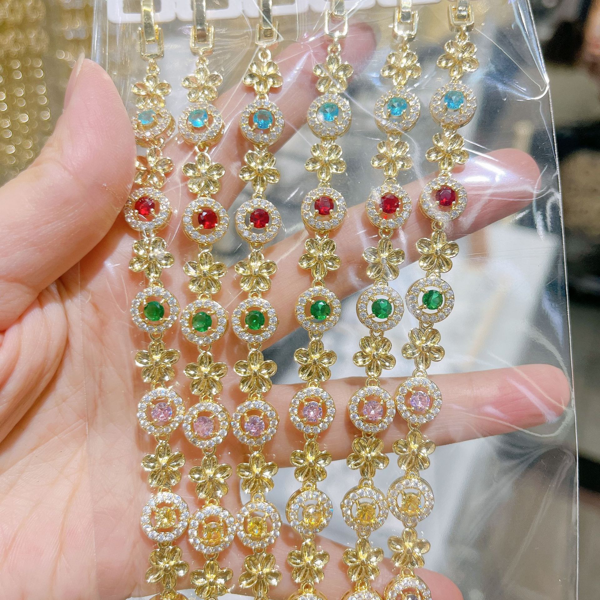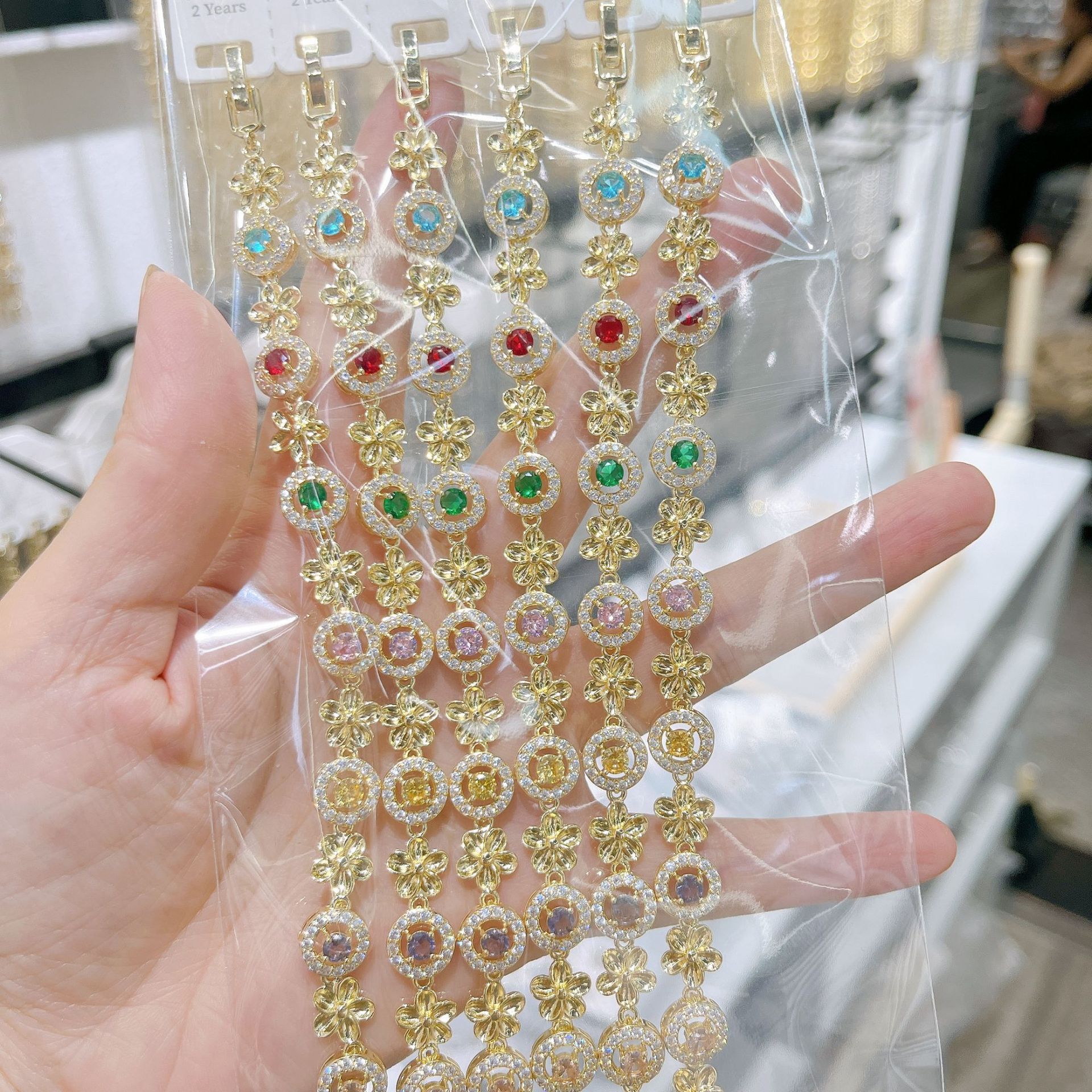 跨境手链花朵彩色锆石欧美女士轻奢风镶钻手饰气质百搭高级感手链