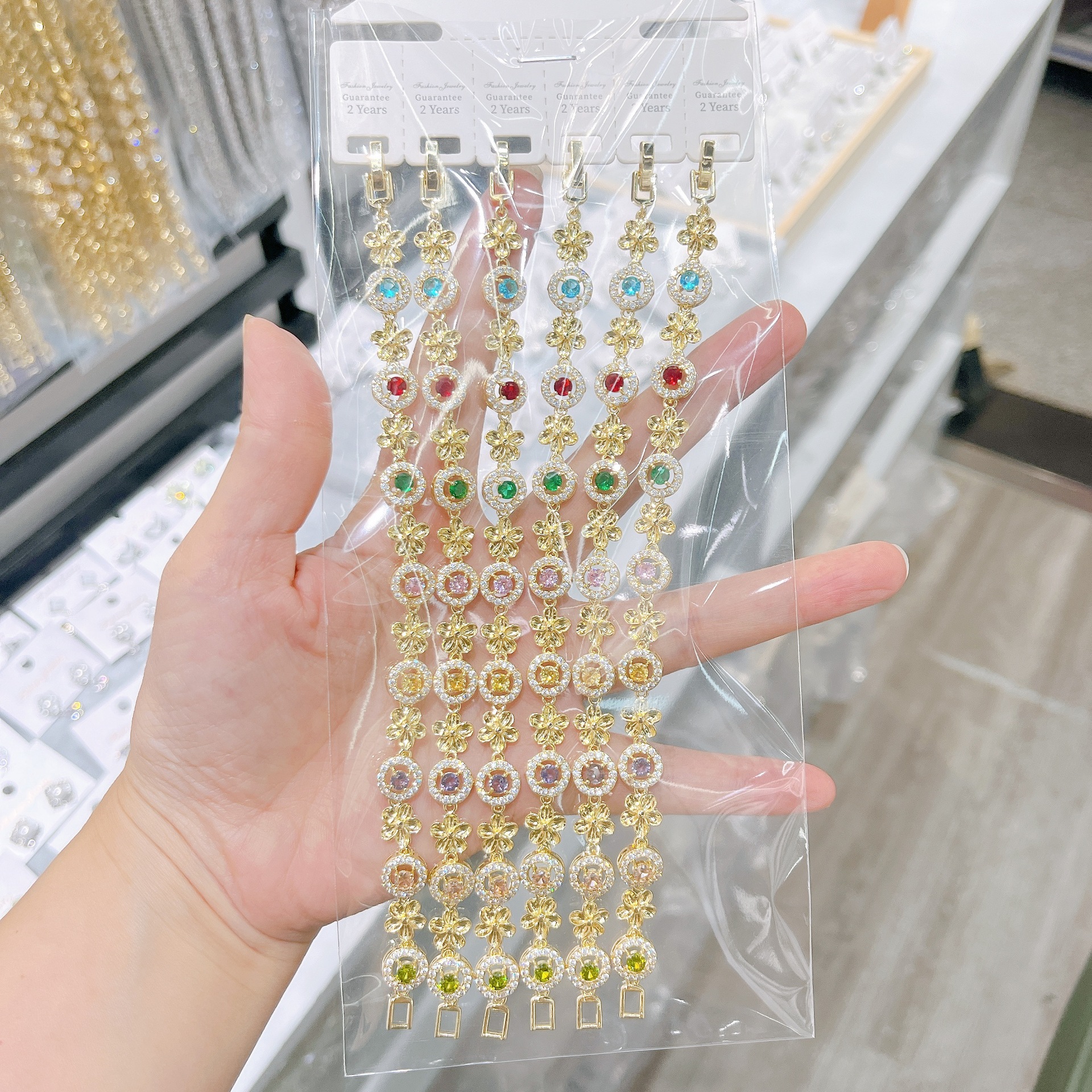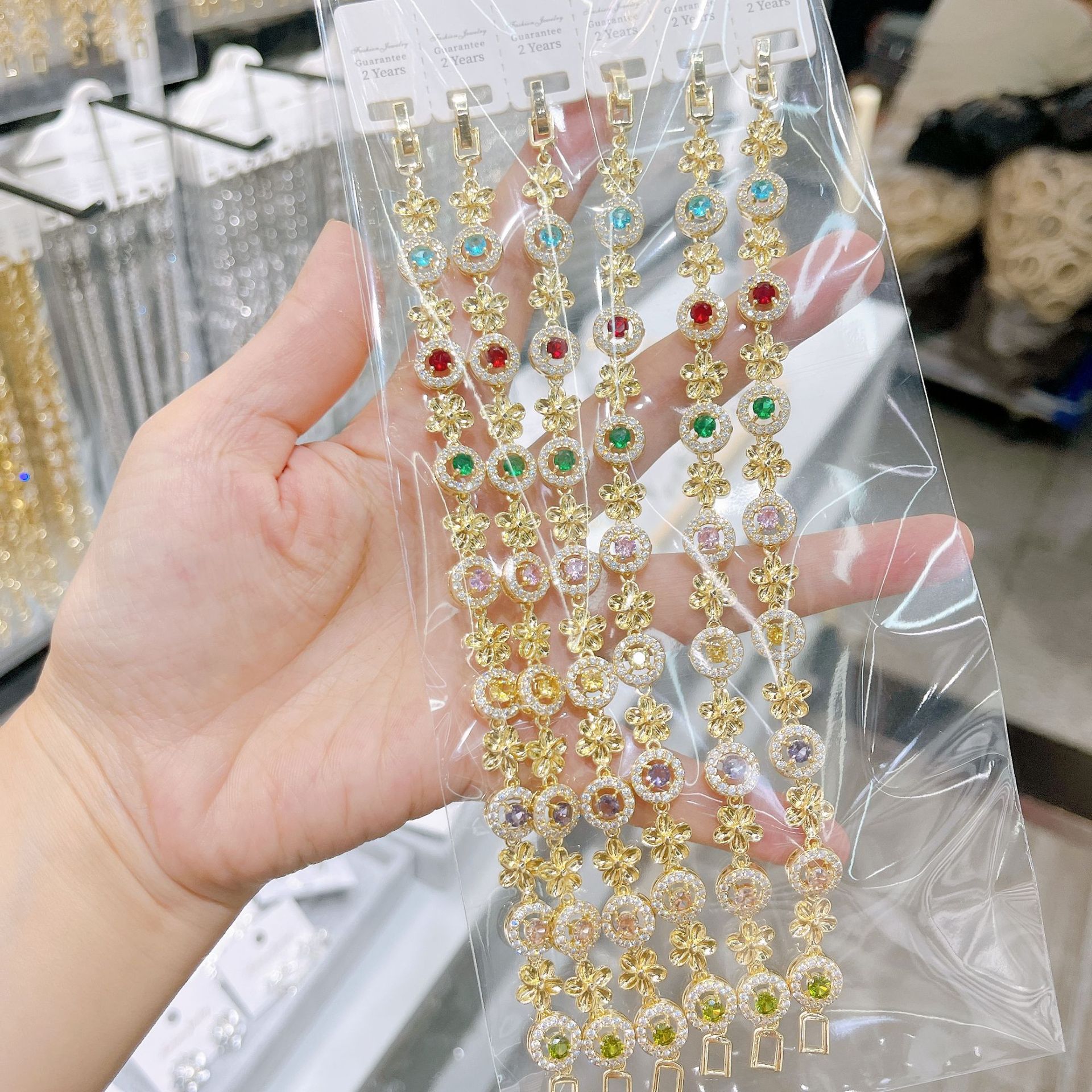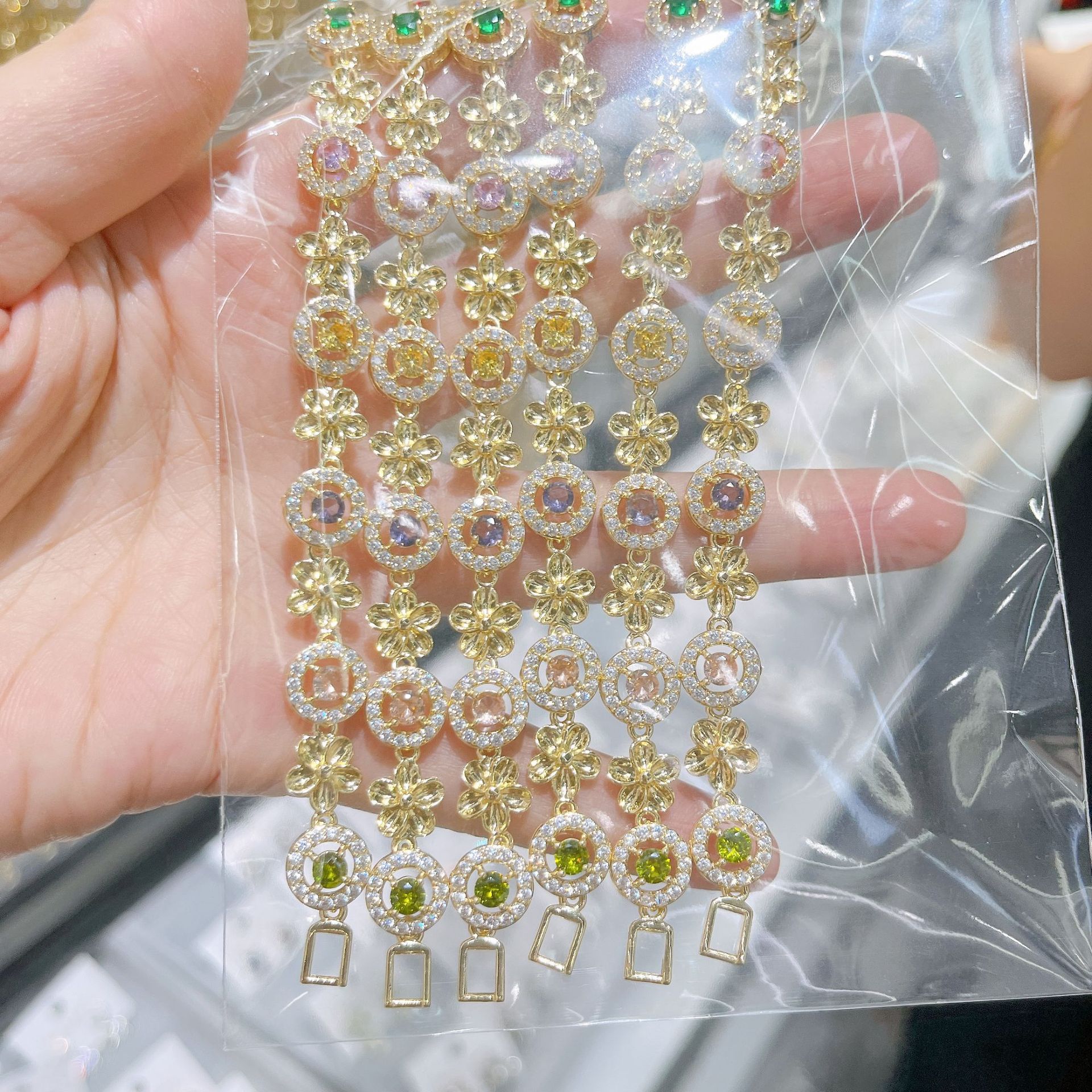 跨境手链花朵彩色锆石欧美女士轻奢风镶钻手饰气质百搭高级感手链
