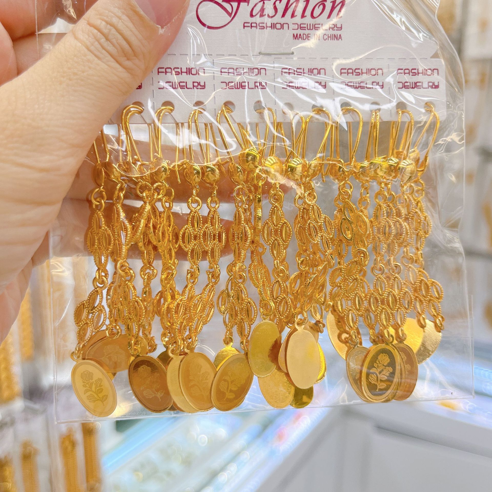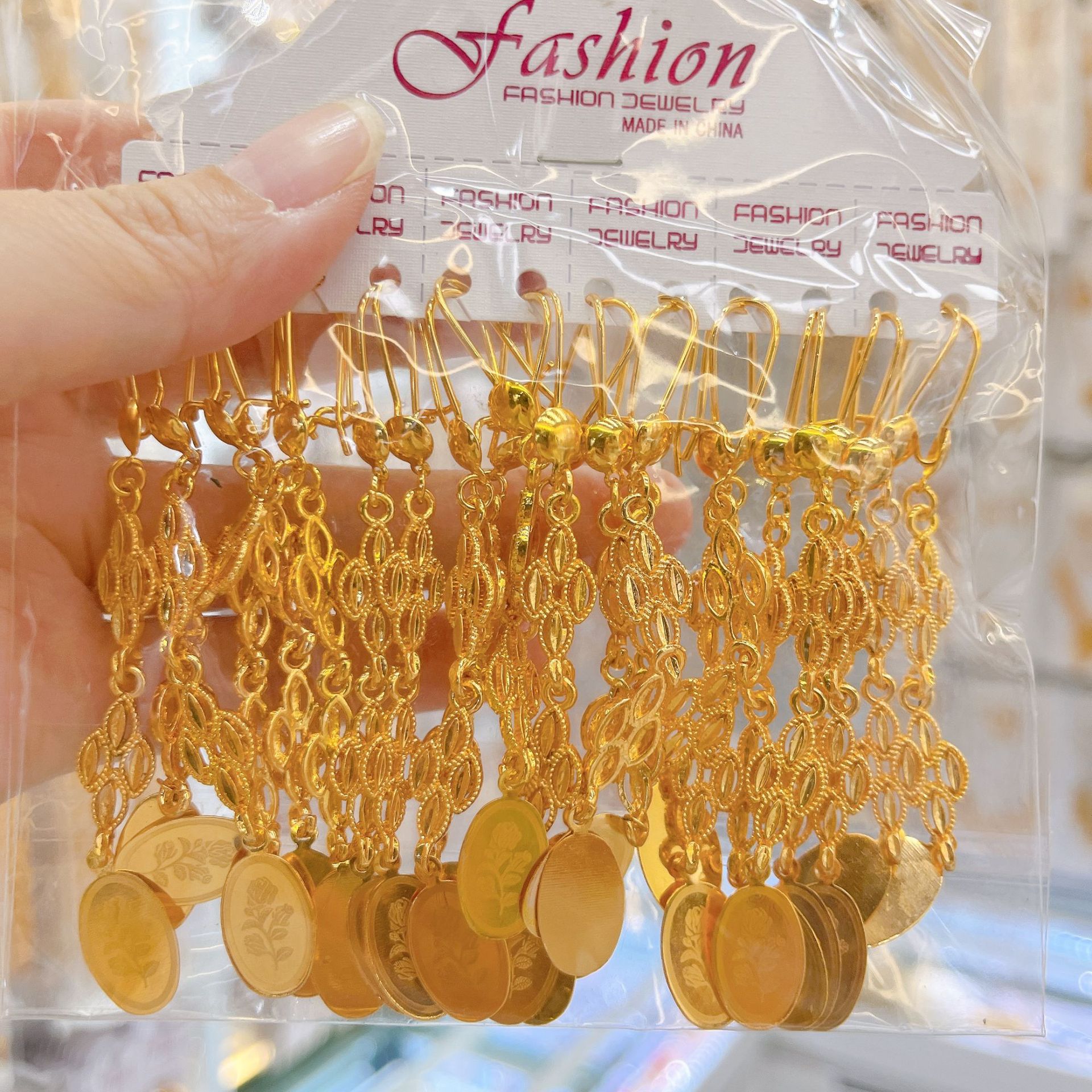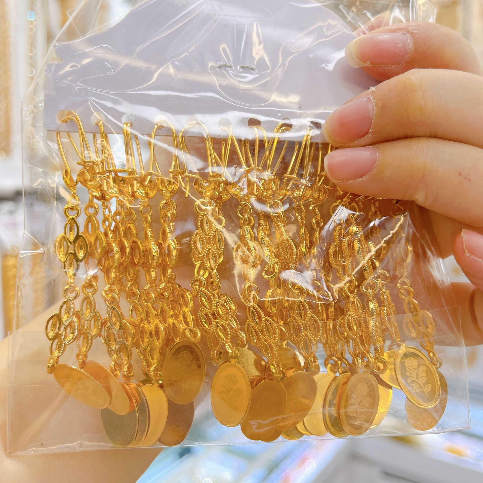 跨境耳环耳挂耳扣铜镀金锆石流苏耳坠女士小众设计感中东流行饰品