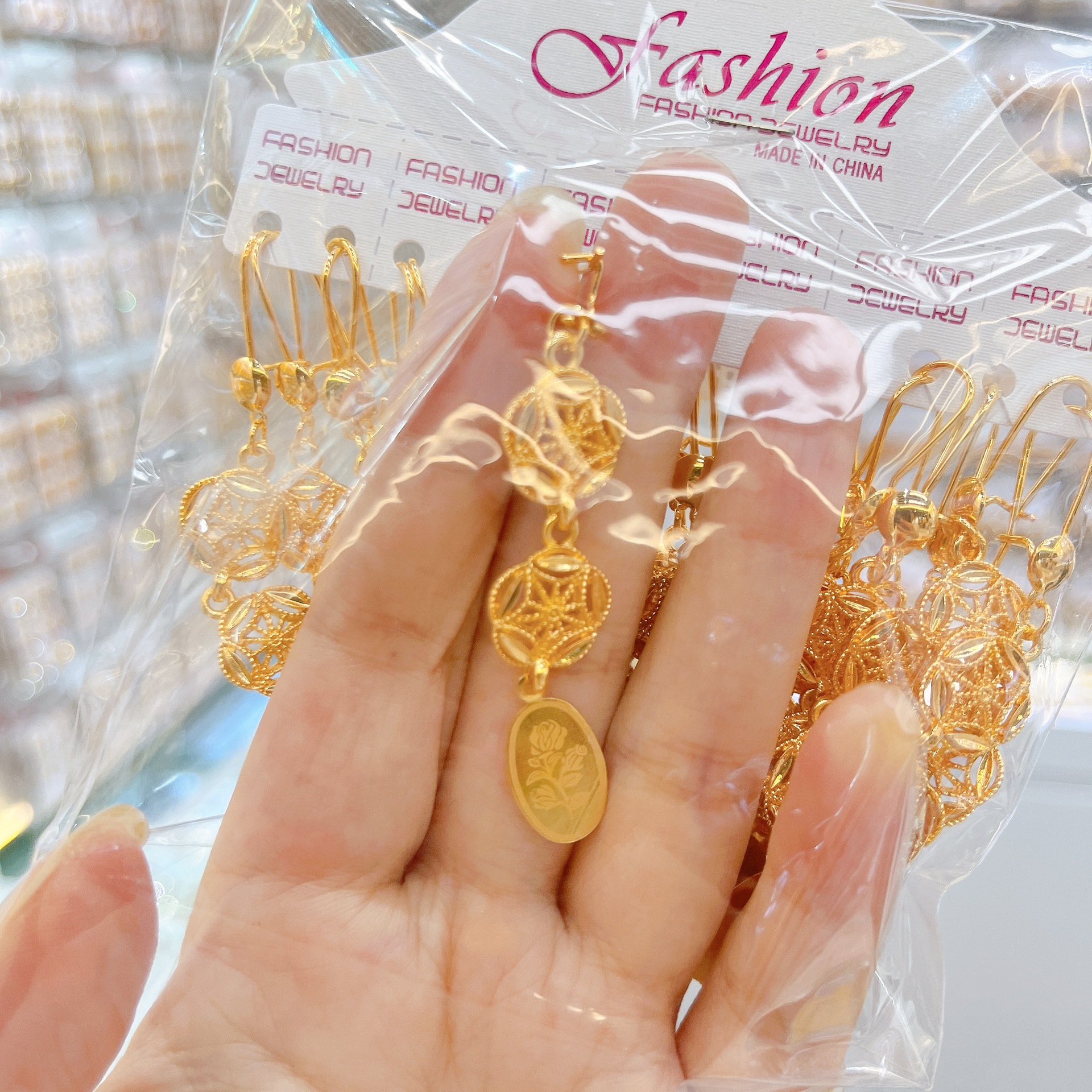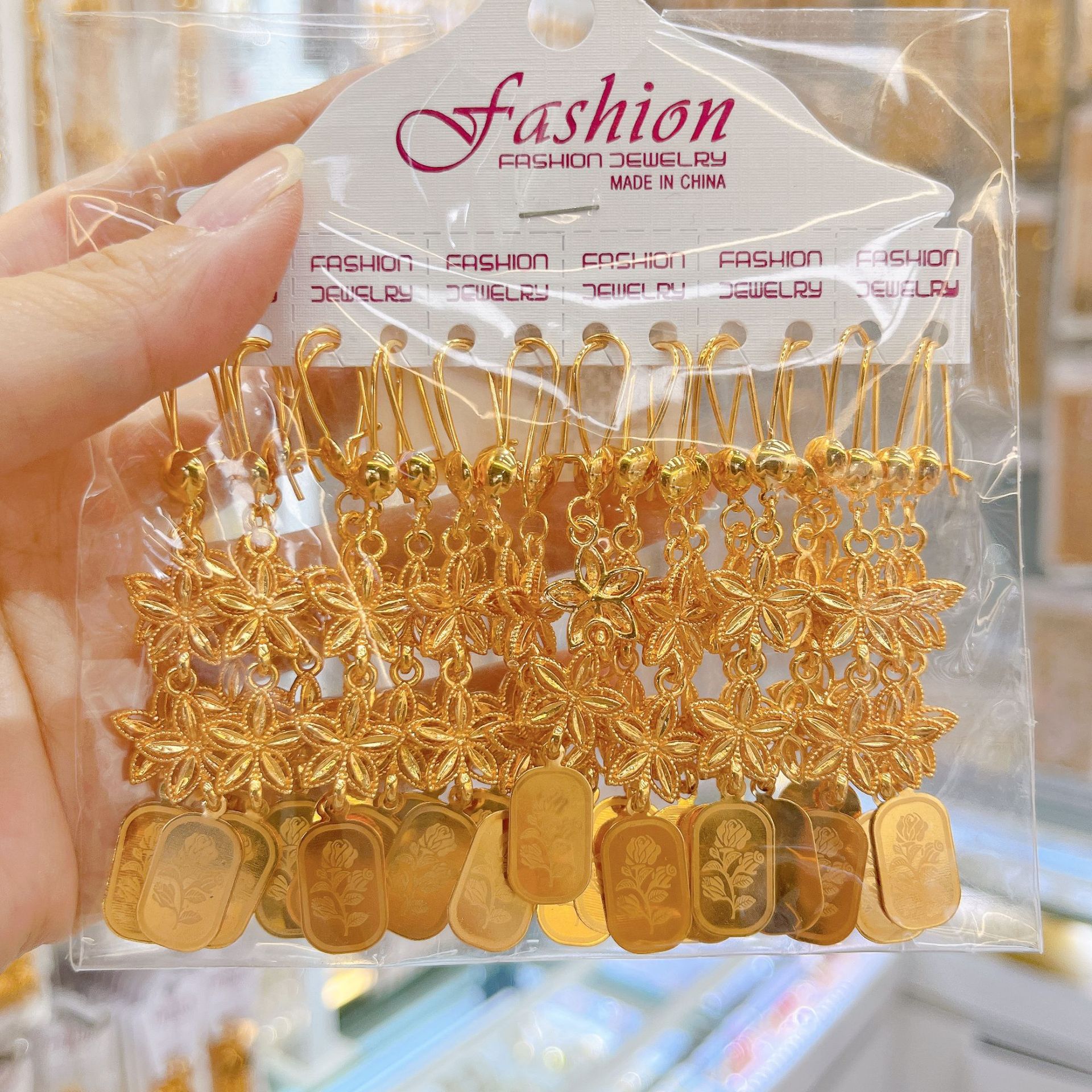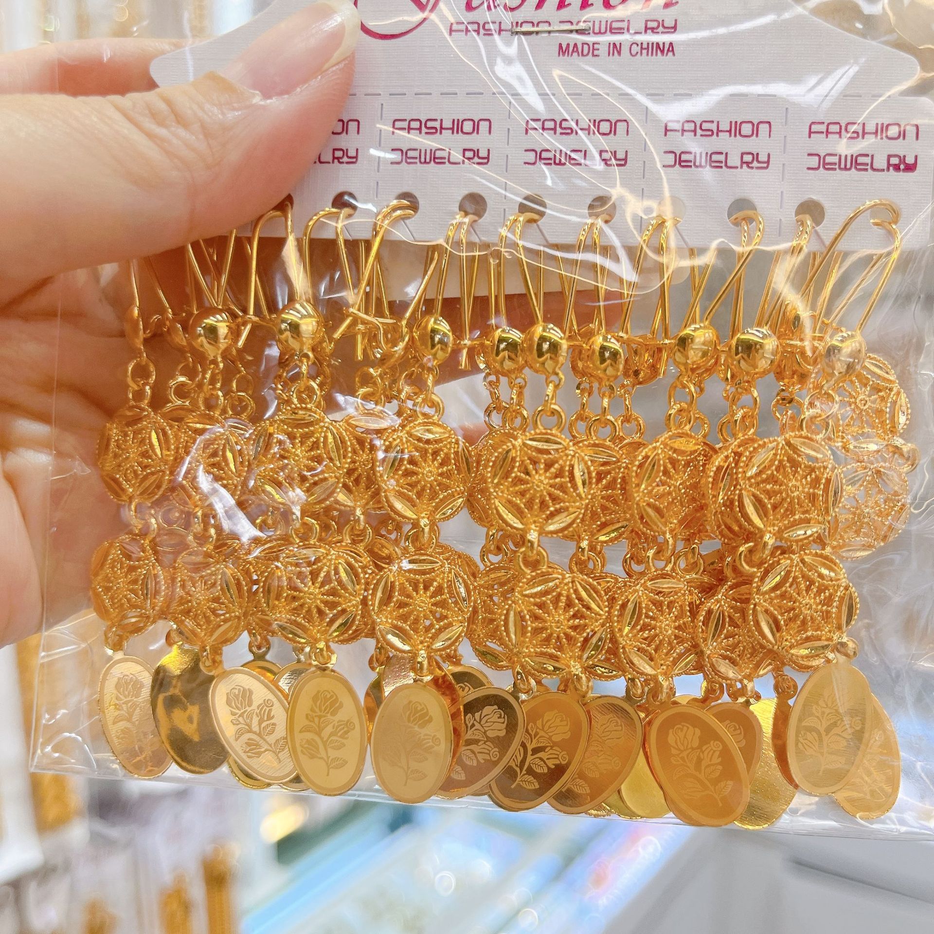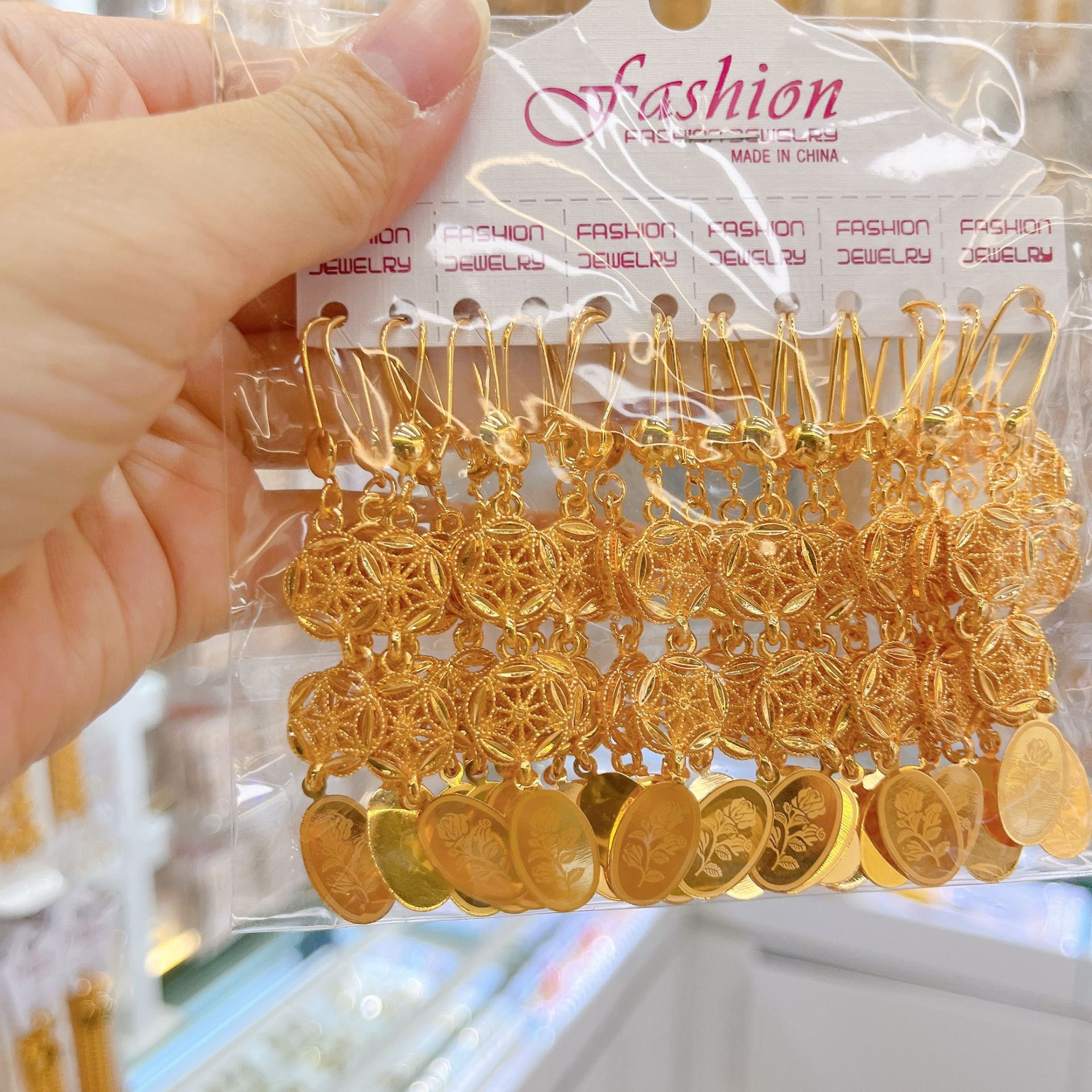 跨境耳环耳挂耳扣铜镀金锆石流苏耳坠女士小众设计感中东流行饰品
