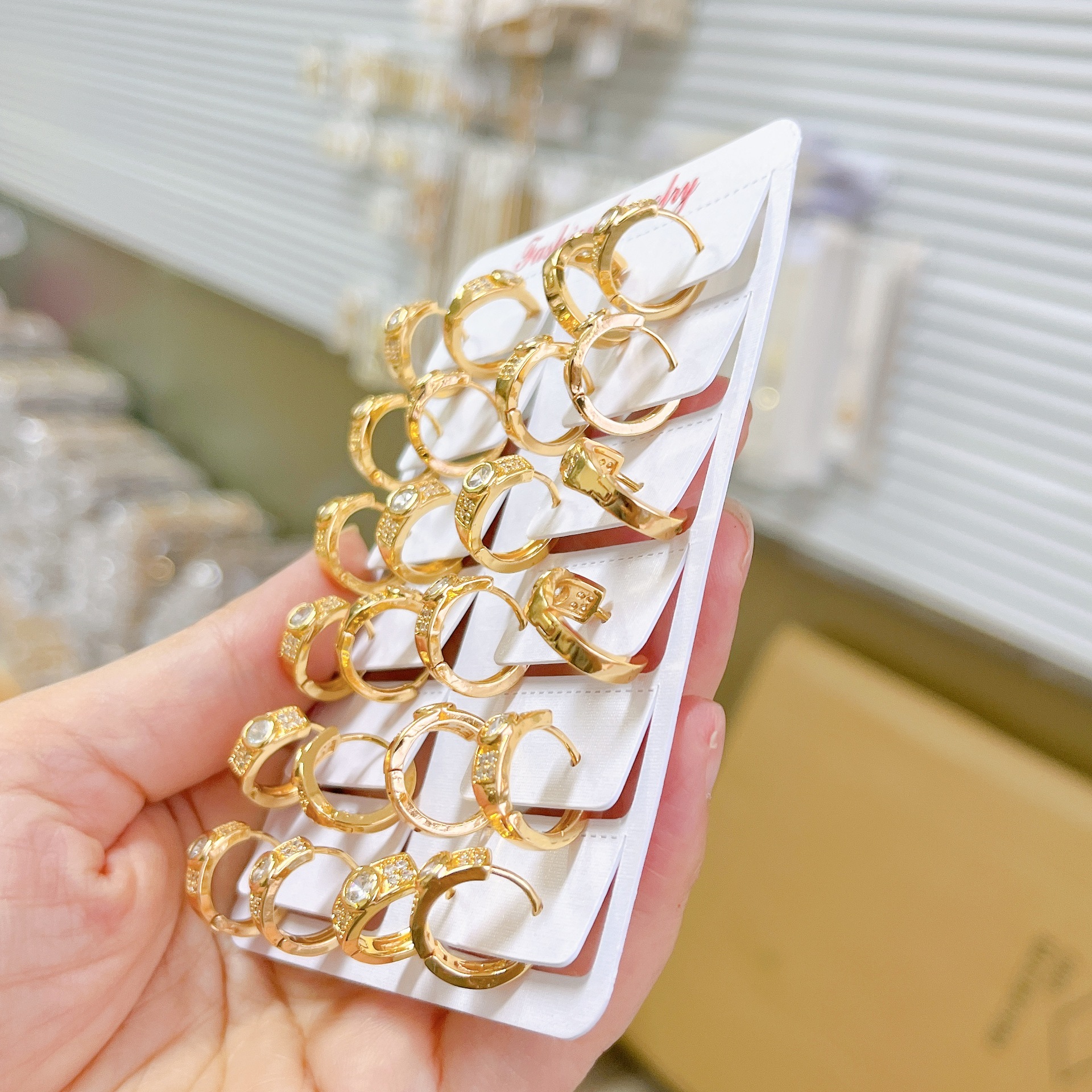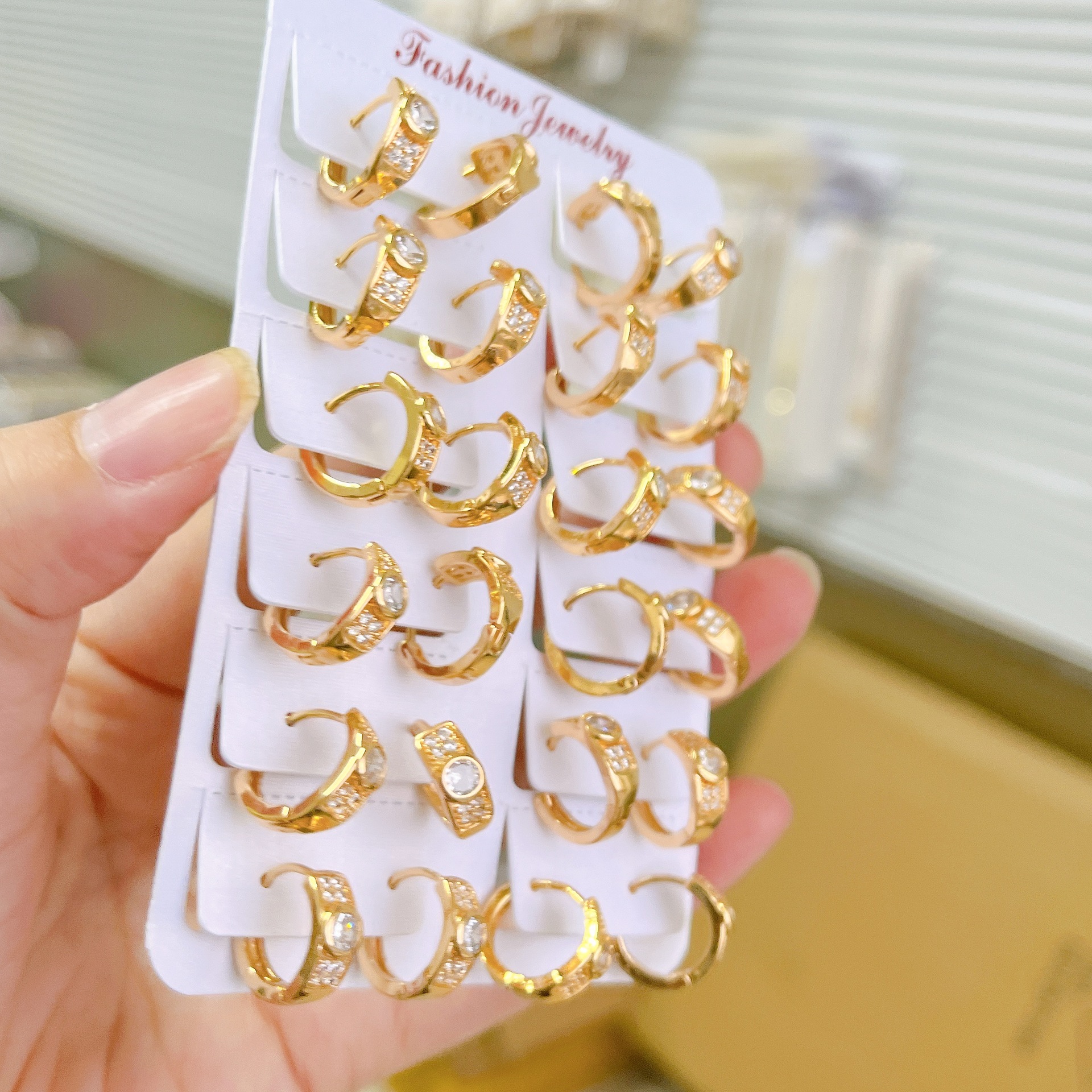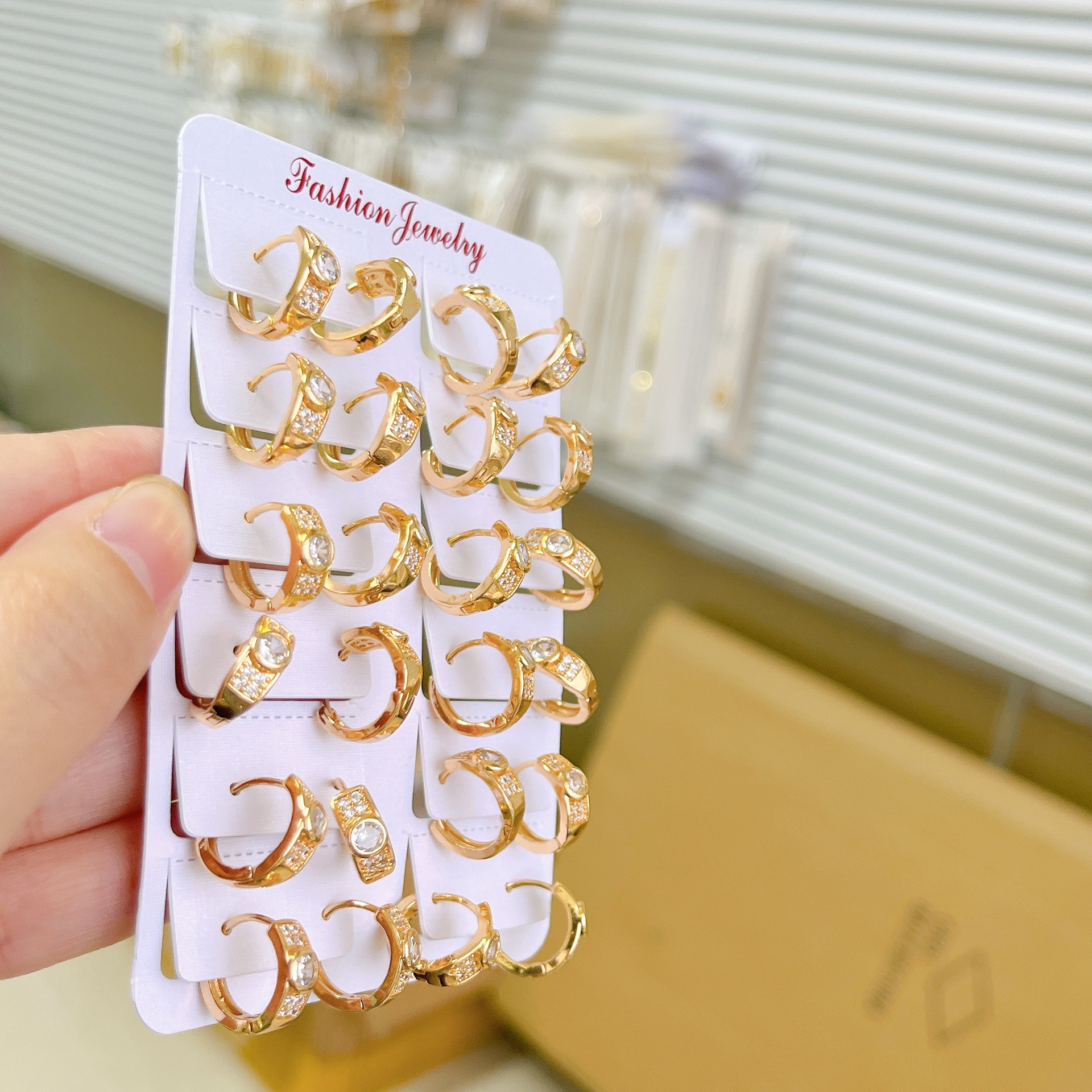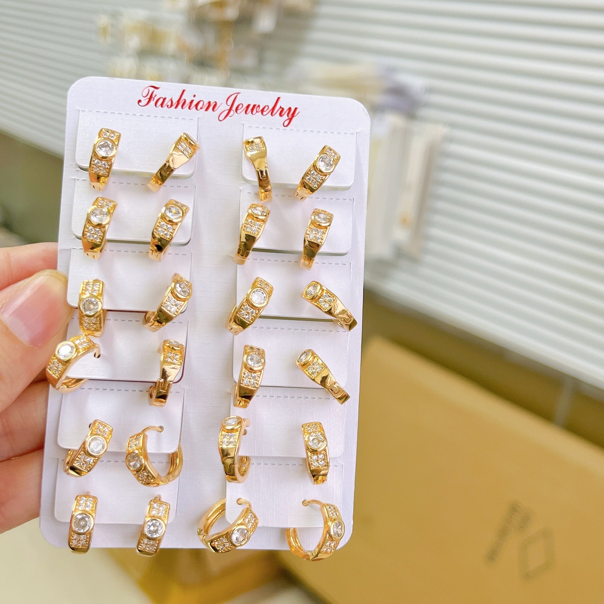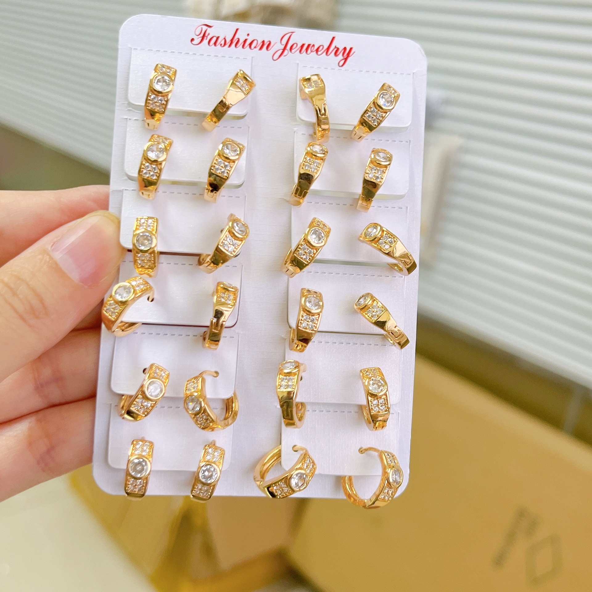 跨境耳环时尚微镶单钻耳扣高级感镀金18K玫瑰金女轻奢镶钻耳饰