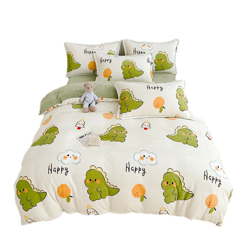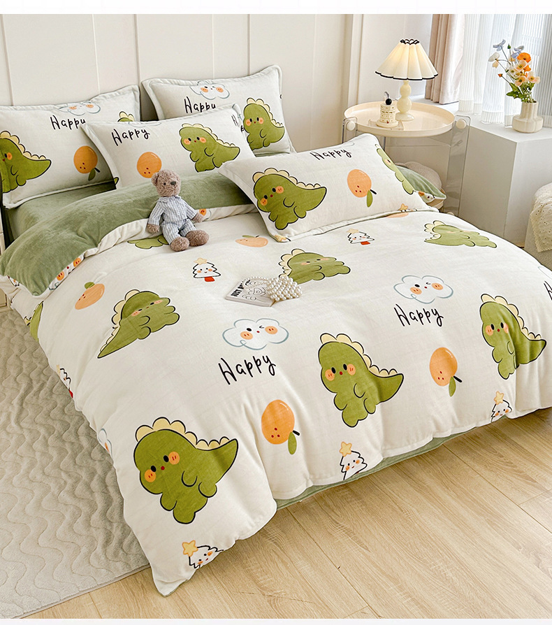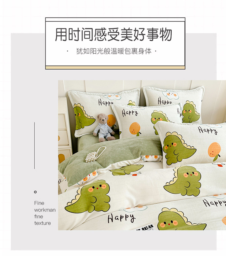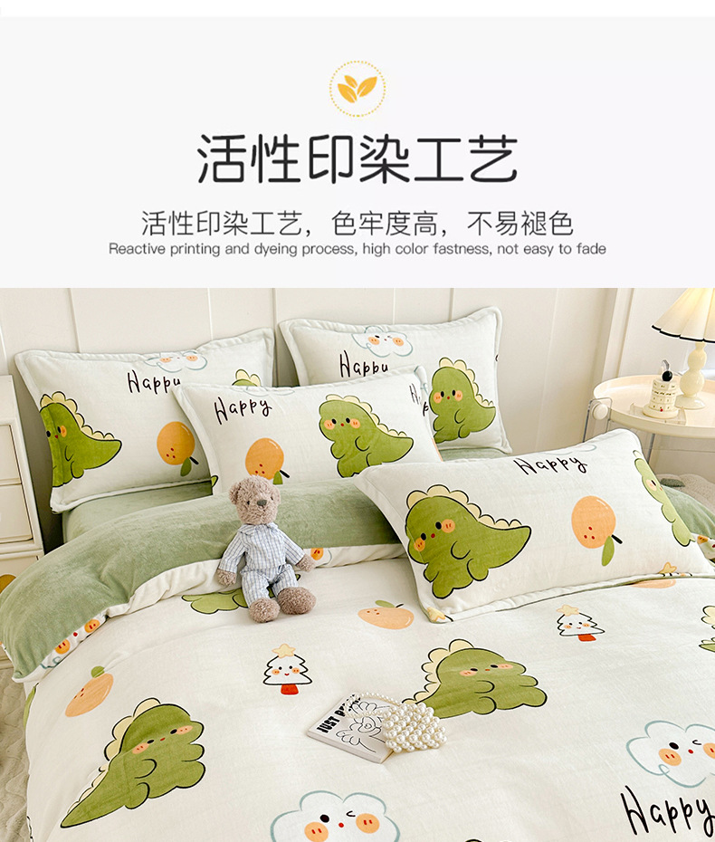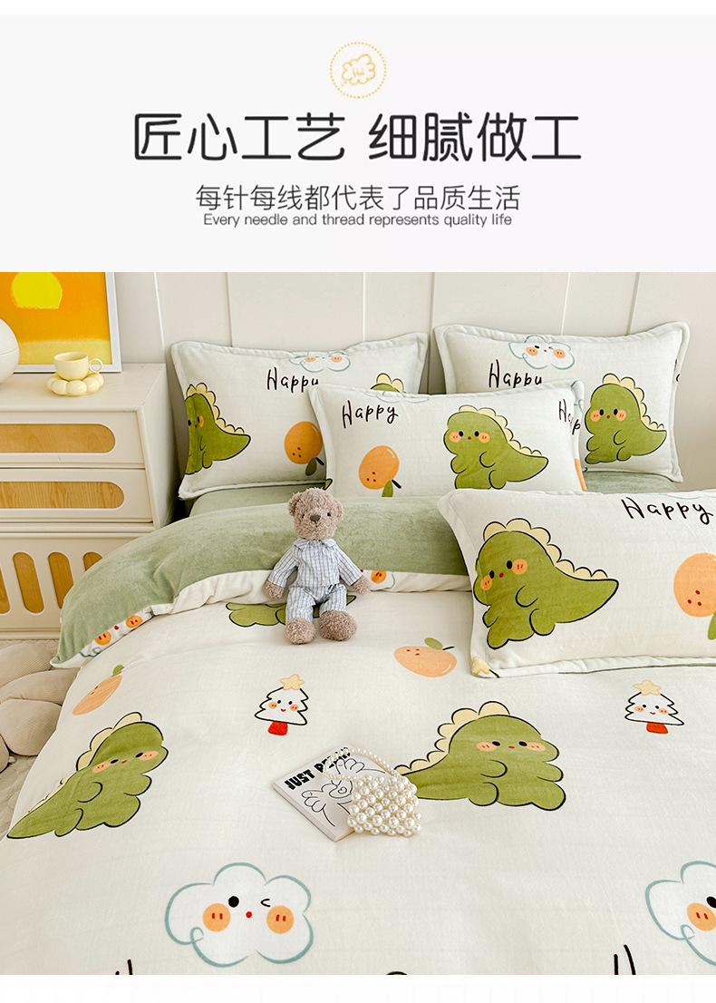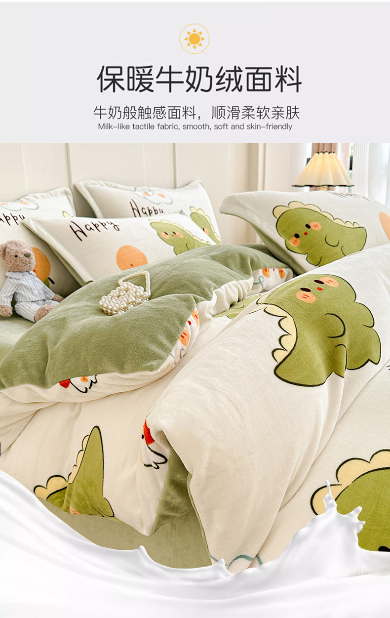 A类冬季牛奶绒四件套双面珊瑚绒床笠加厚被罩加绒被套床单三件套