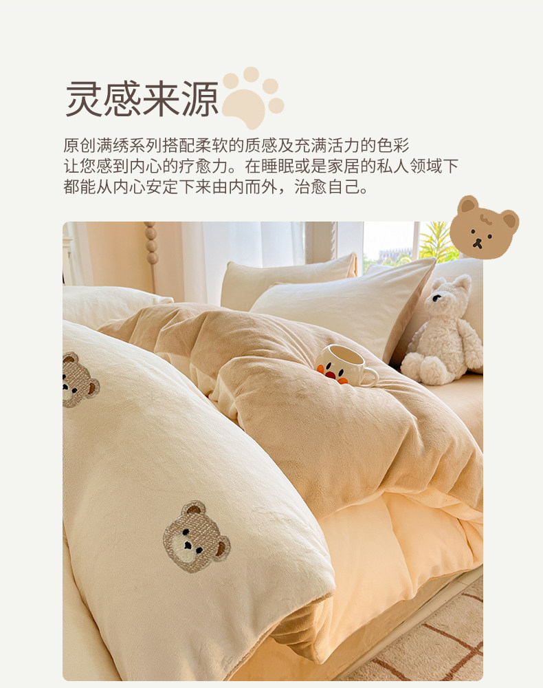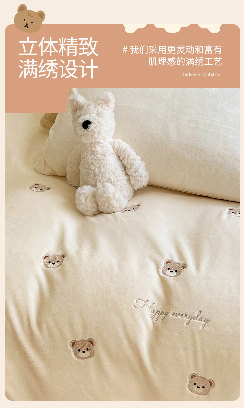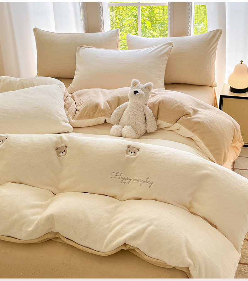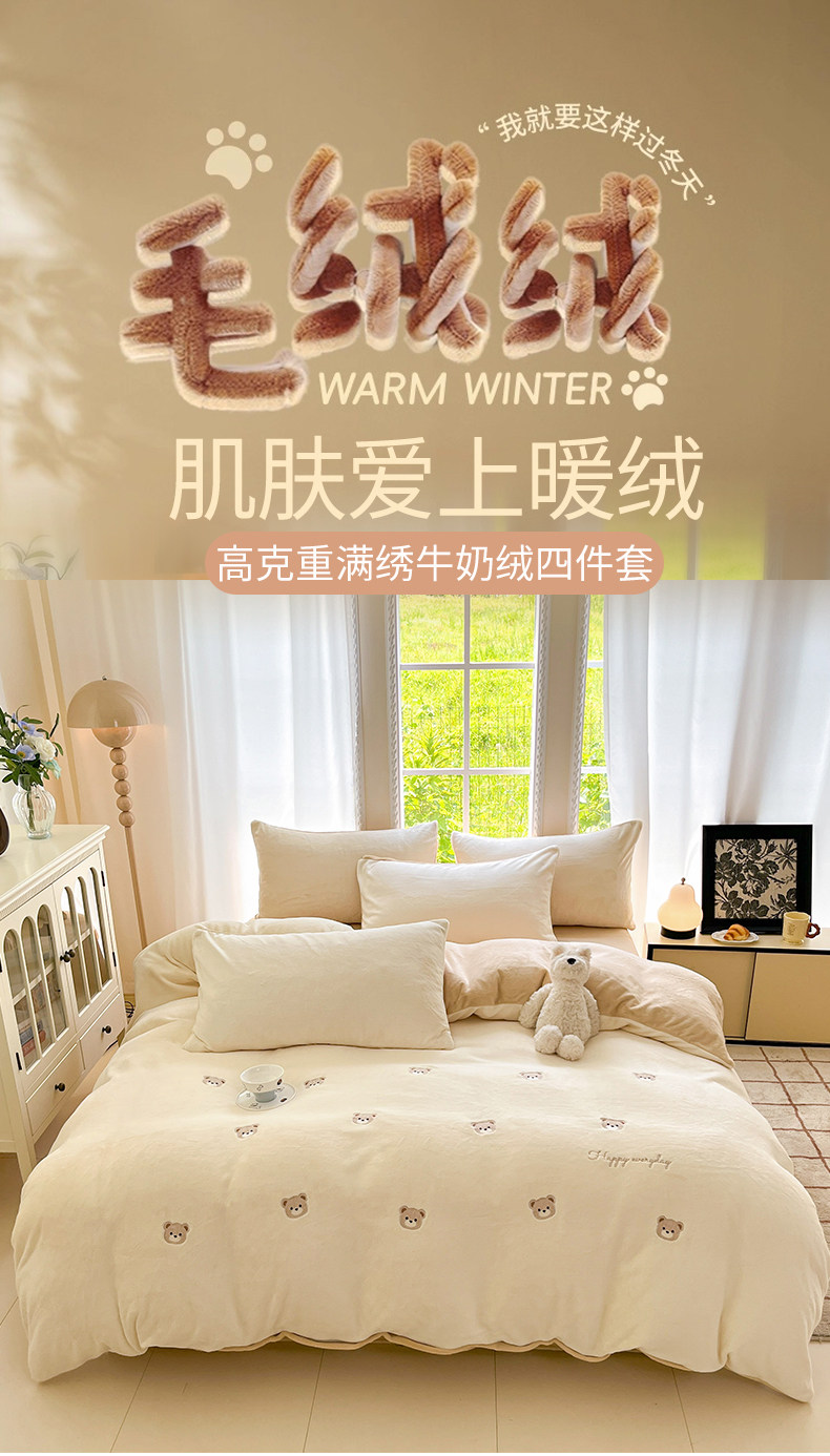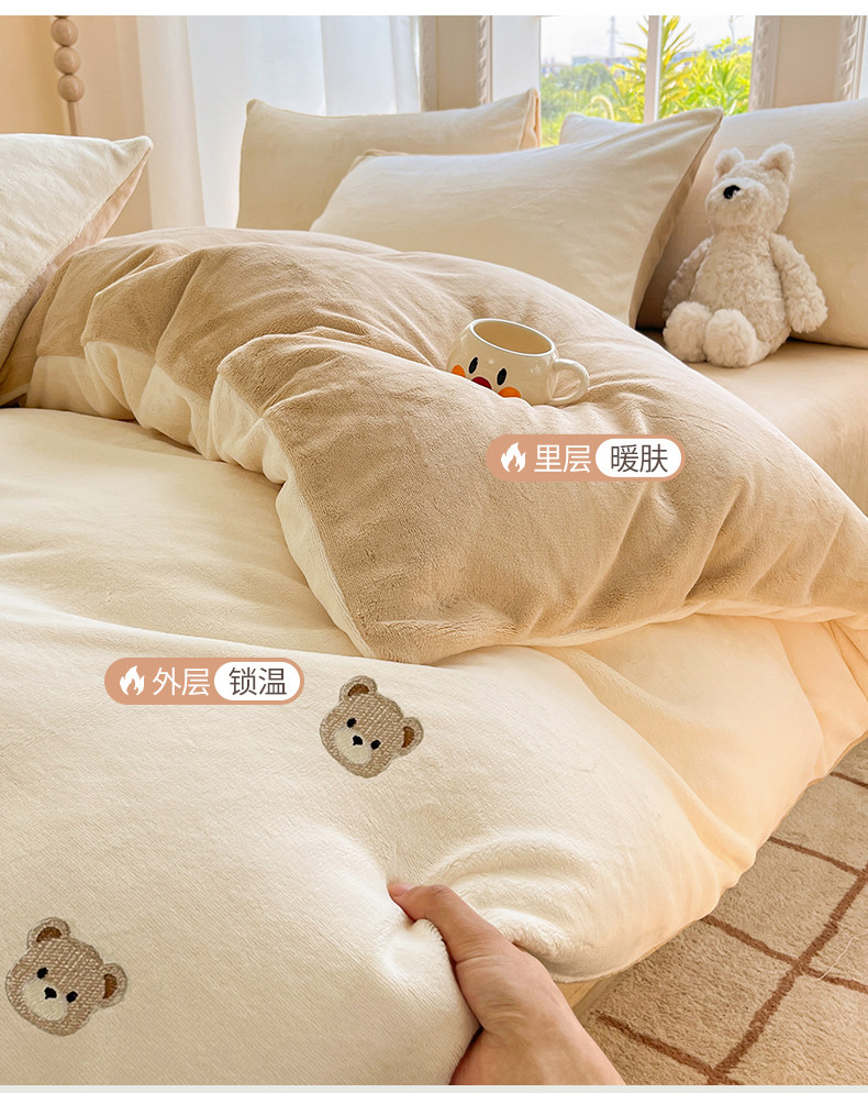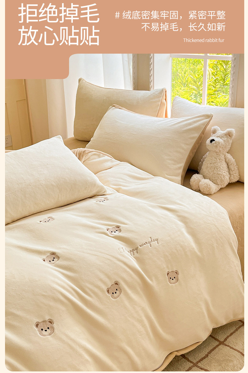 冬季加绒加厚牛奶绒四件套法兰绒床单被套毛绒冬天床上用品三件套