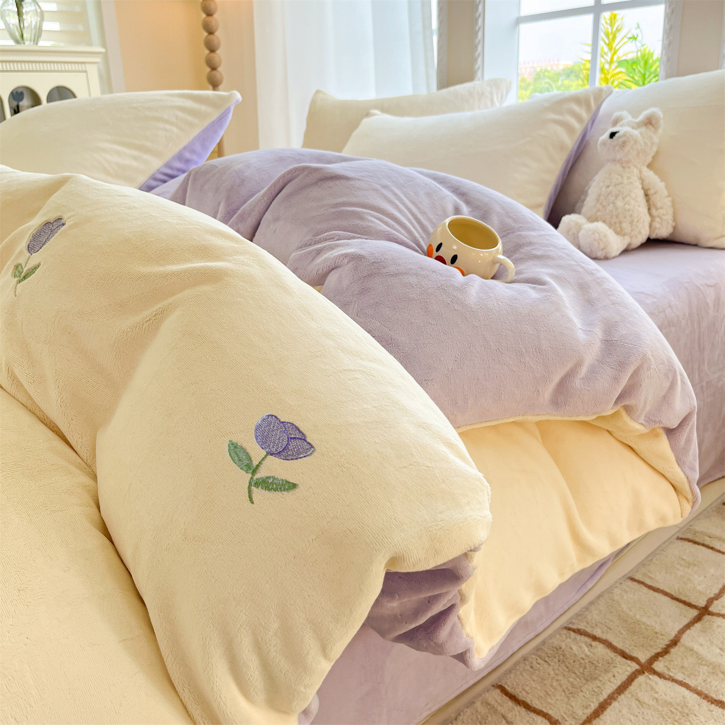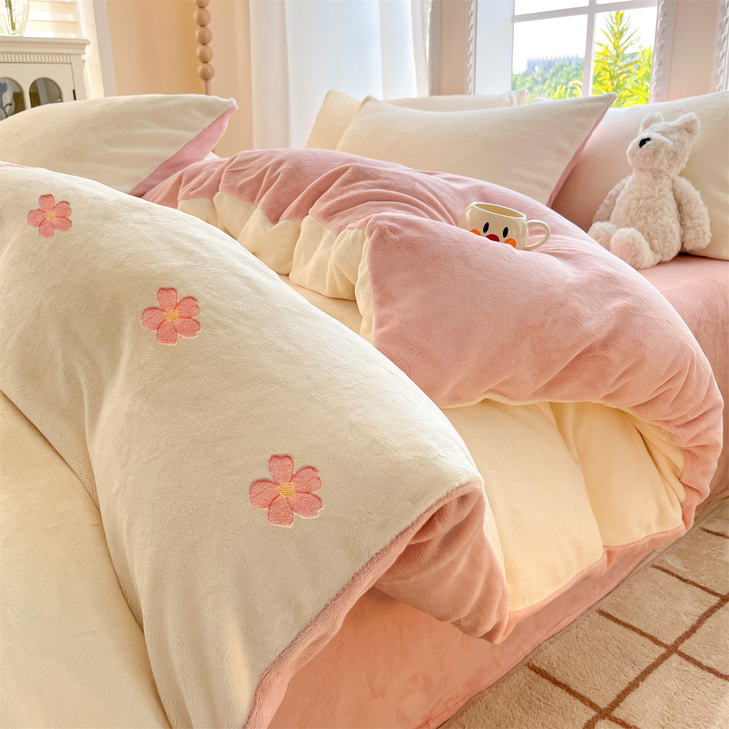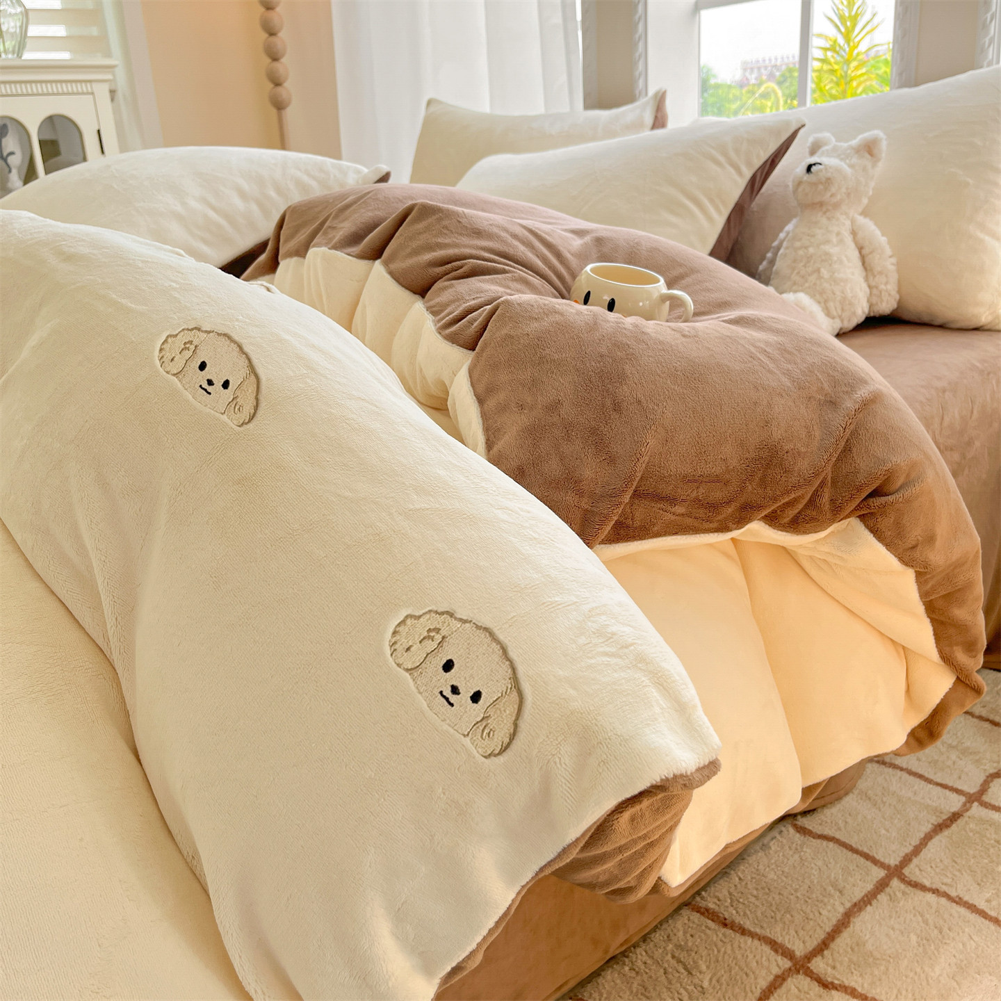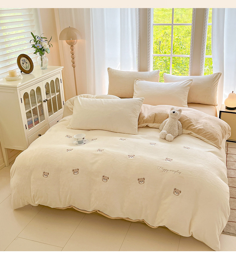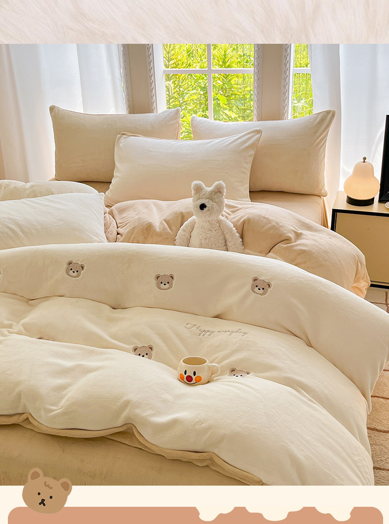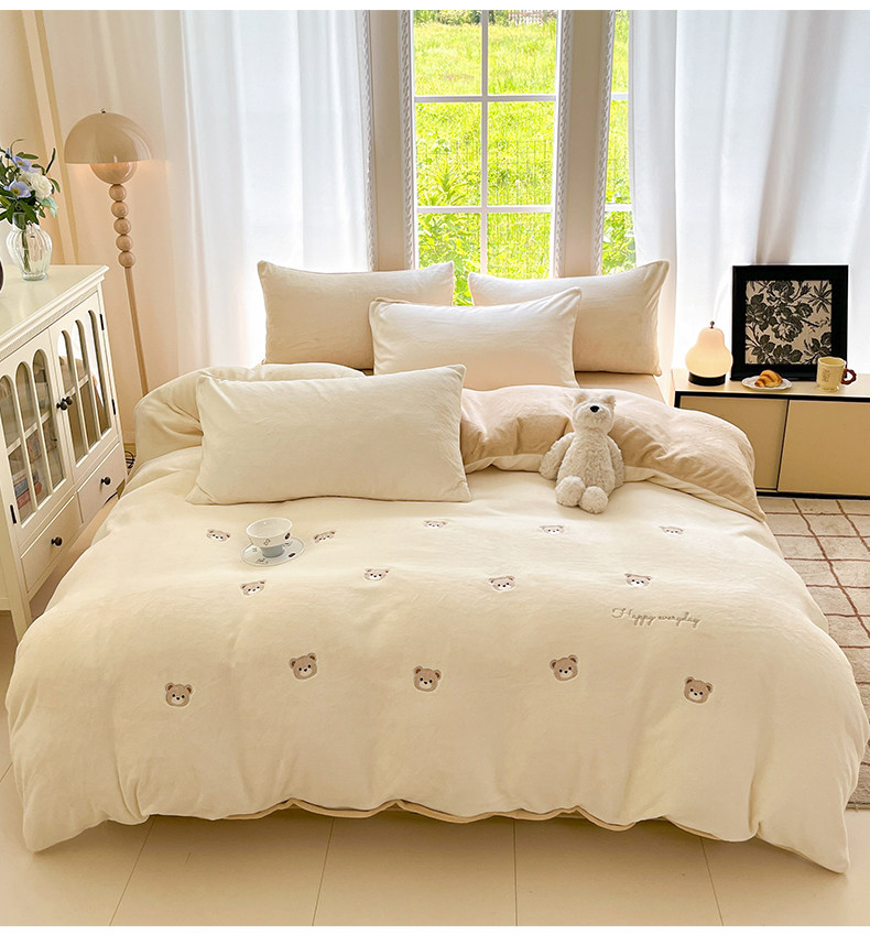 冬季加绒加厚牛奶绒四件套法兰绒床单被套毛绒冬天床上用品三件套