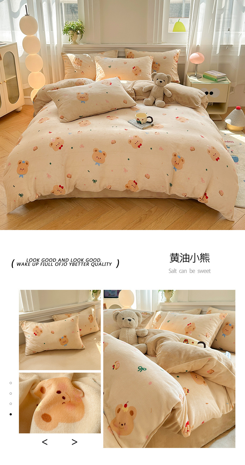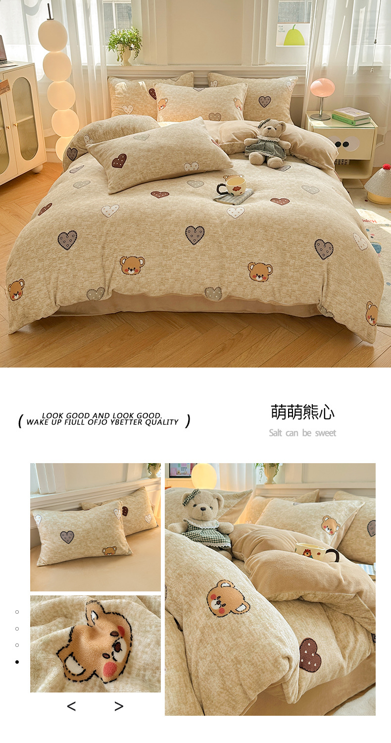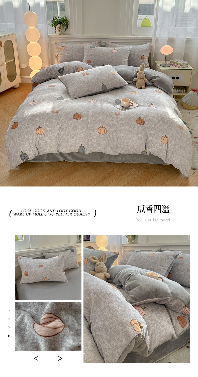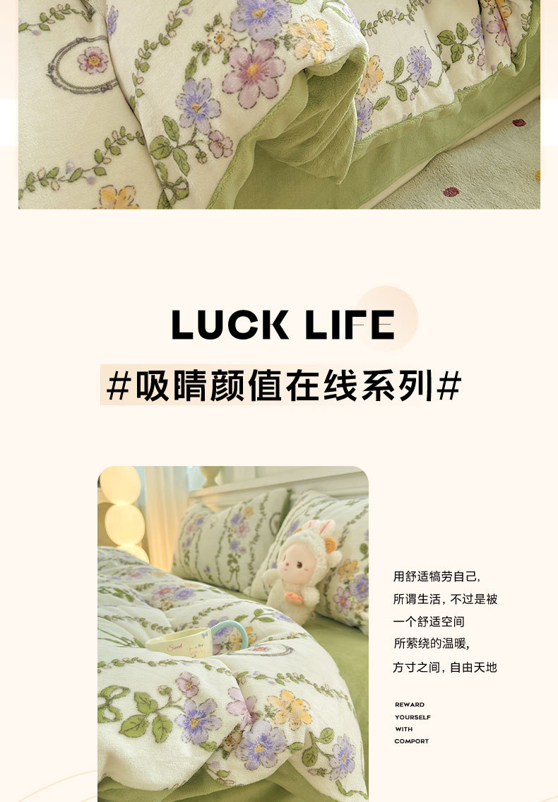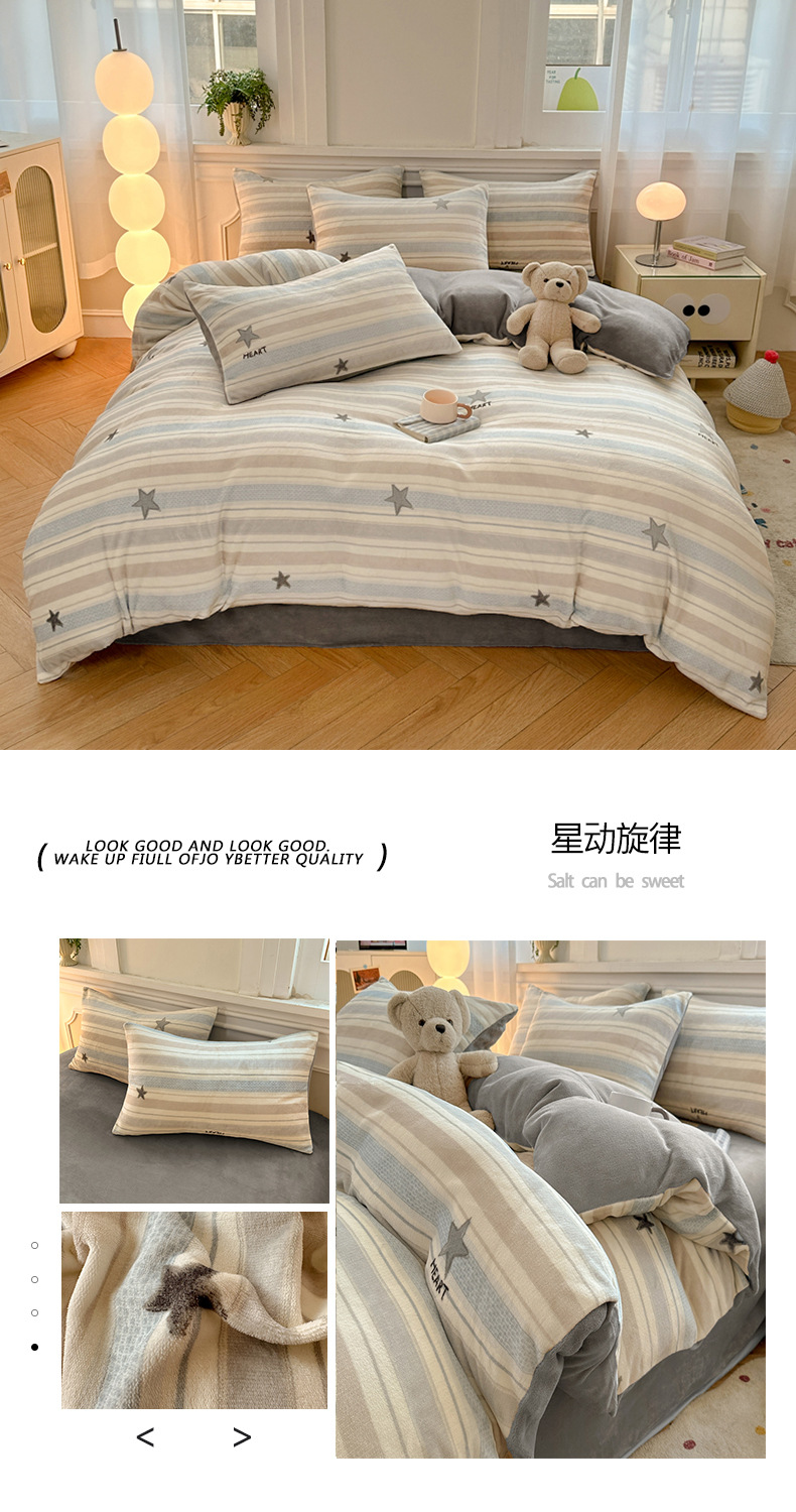 小清新加厚牛奶绒四件套冬季珊瑚法兰双面加绒被套床单床笠三件套