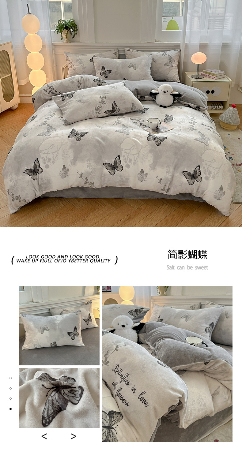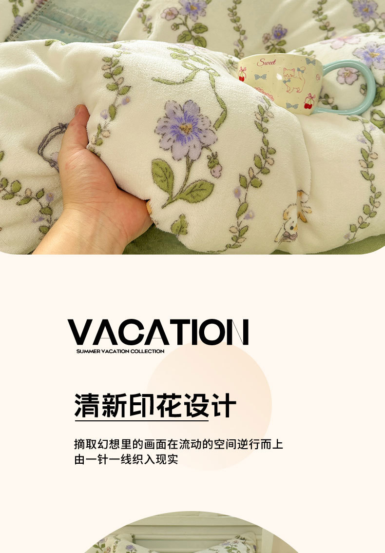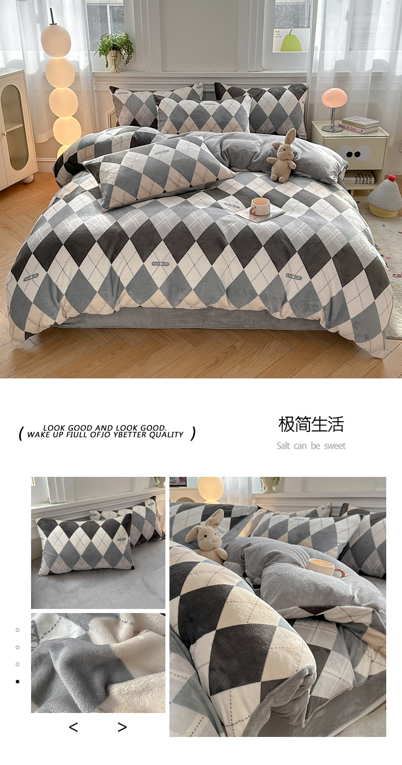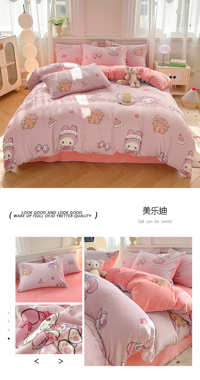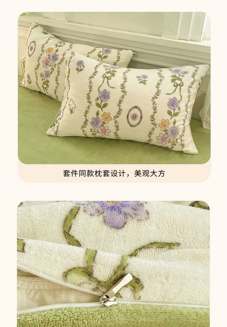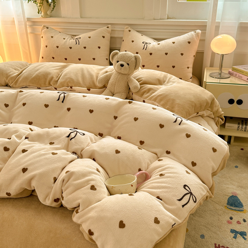 小清新加厚牛奶绒四件套冬季珊瑚法兰双面加绒被套床单床笠三件套