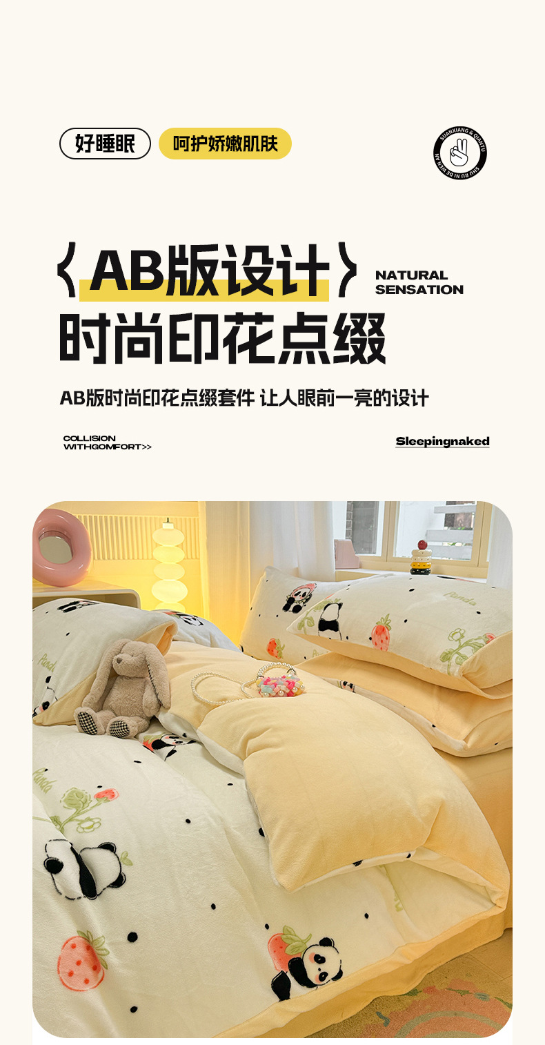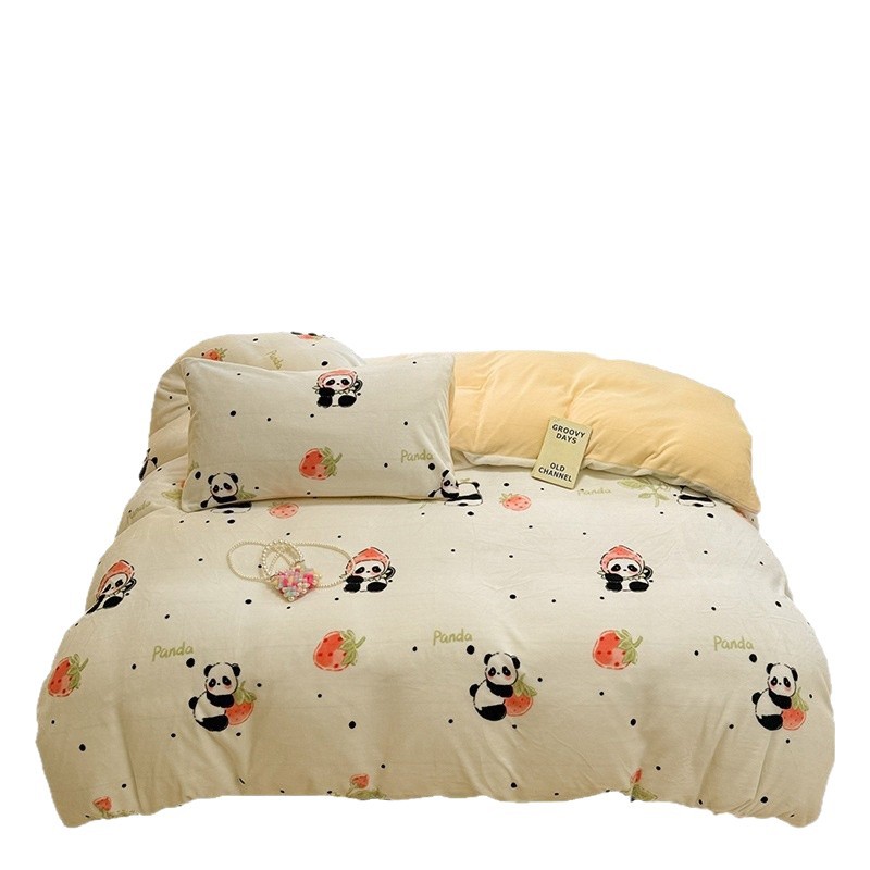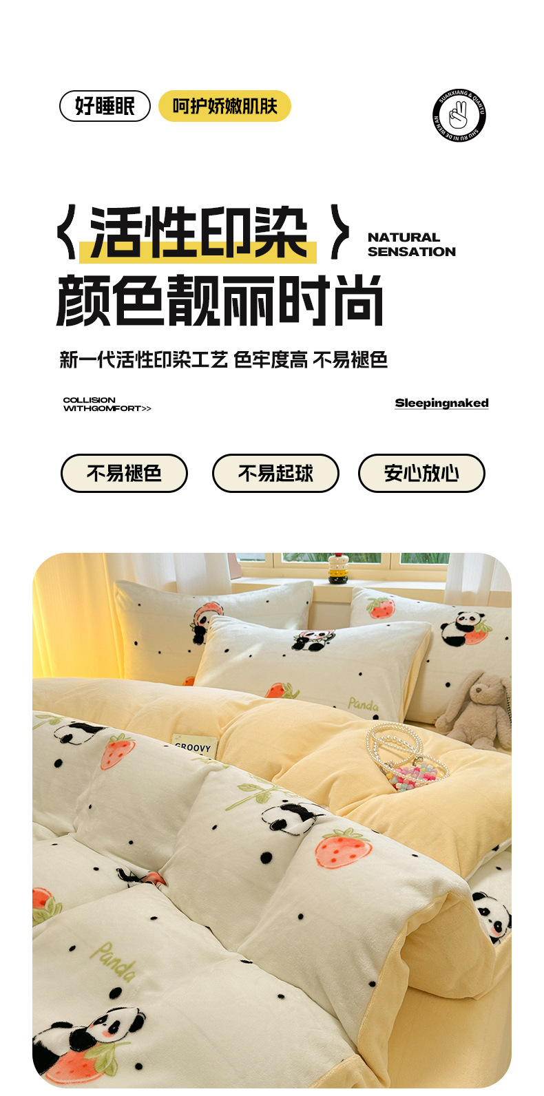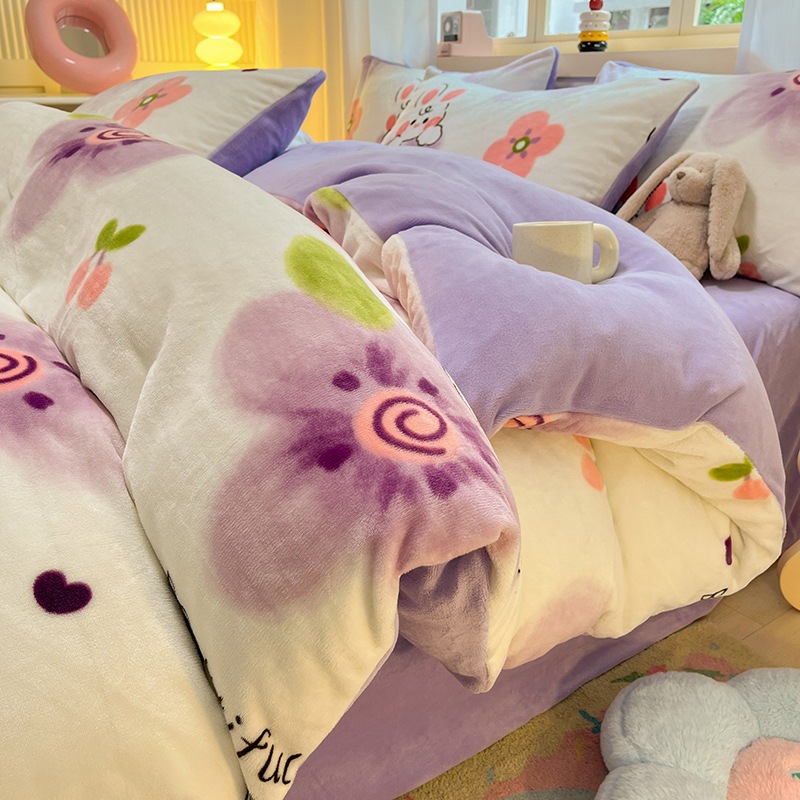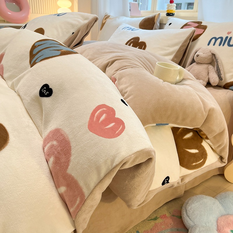 冬季A类牛奶绒四件套双面珊瑚绒床笠加厚被罩加绒被套床单三件套