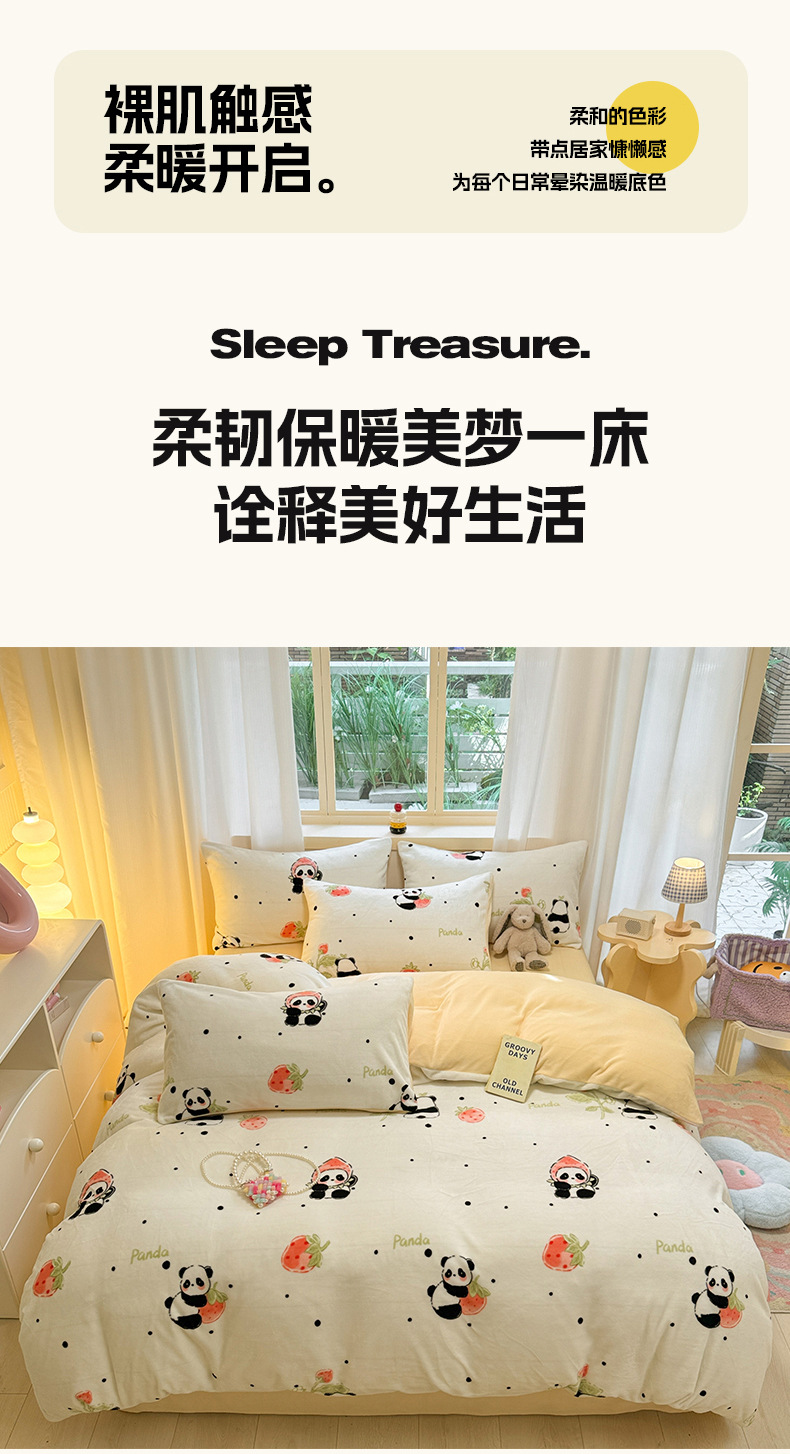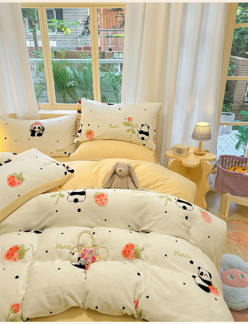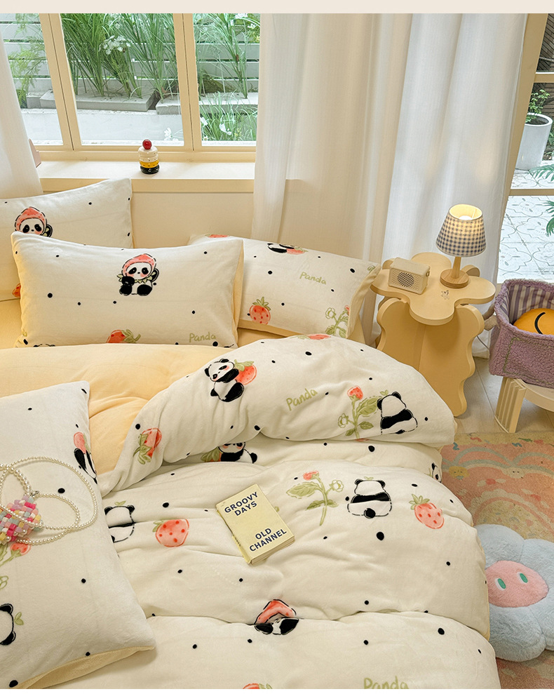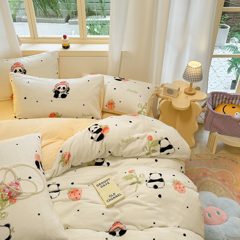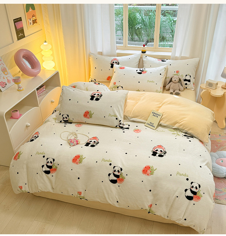 冬季A类牛奶绒四件套双面珊瑚绒床笠加厚被罩加绒被套床单三件套