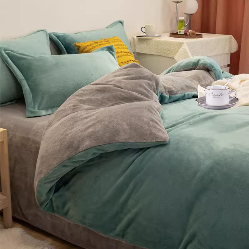四件套牛奶绒冬季法莱绒法兰绒双面加绒被套床单三件套加厚珊瑚绒