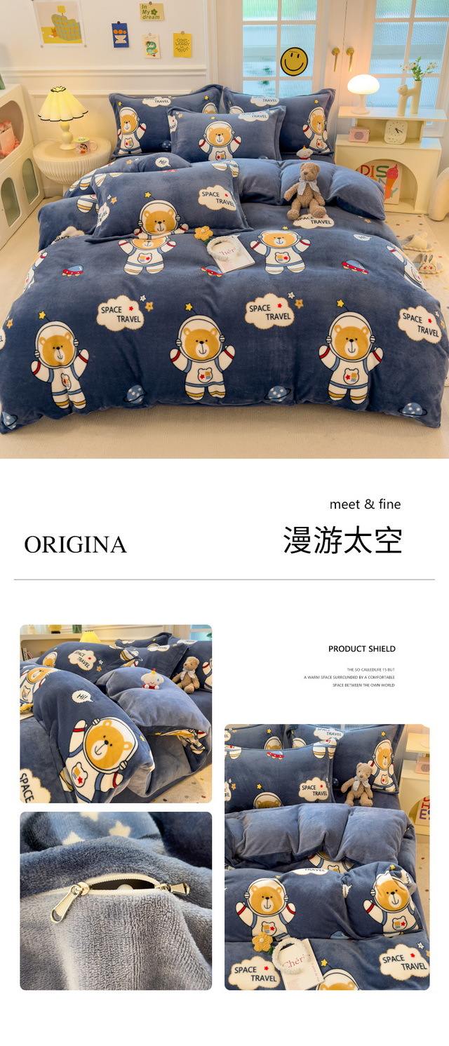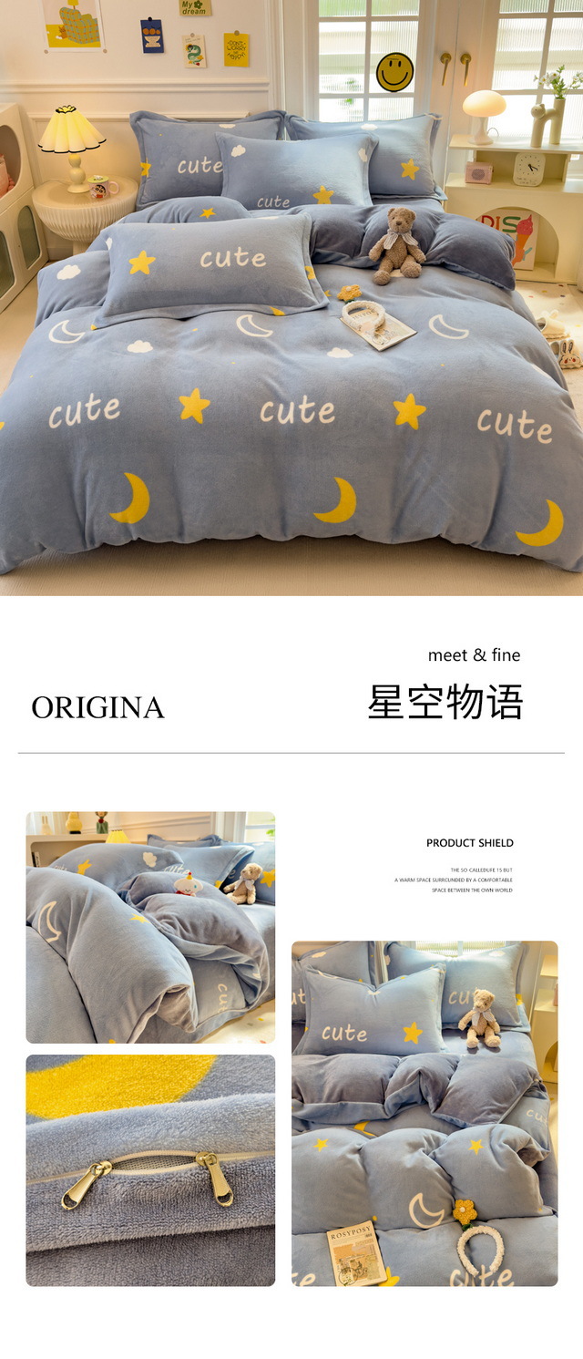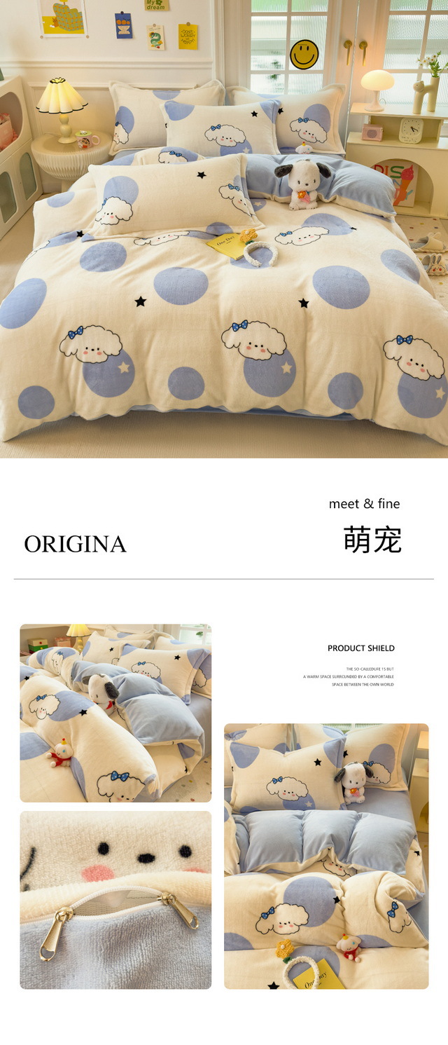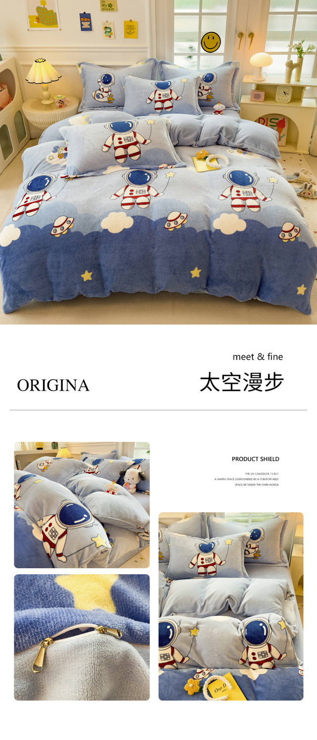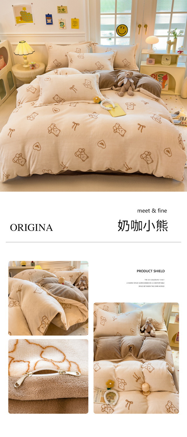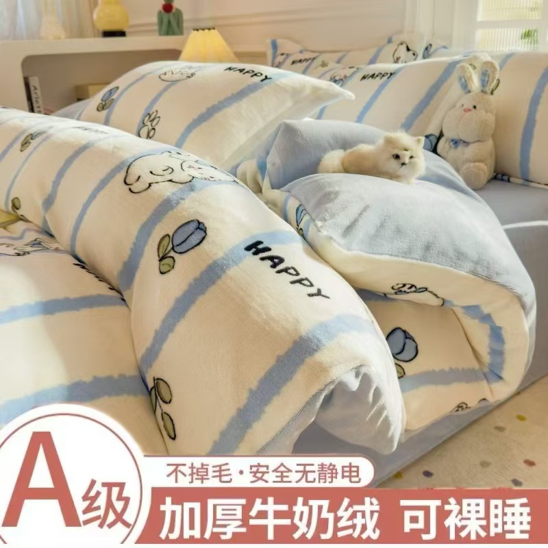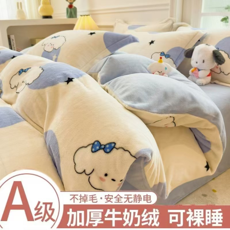 A类冬季母婴级牛奶绒四件套冬加厚珊瑚绒床笠加绒床单被套三件套