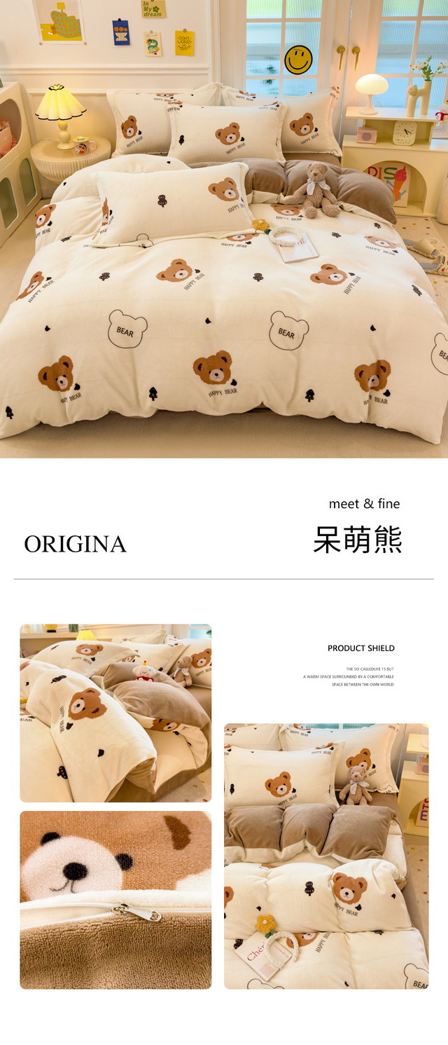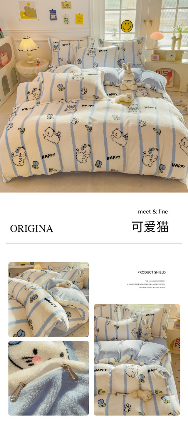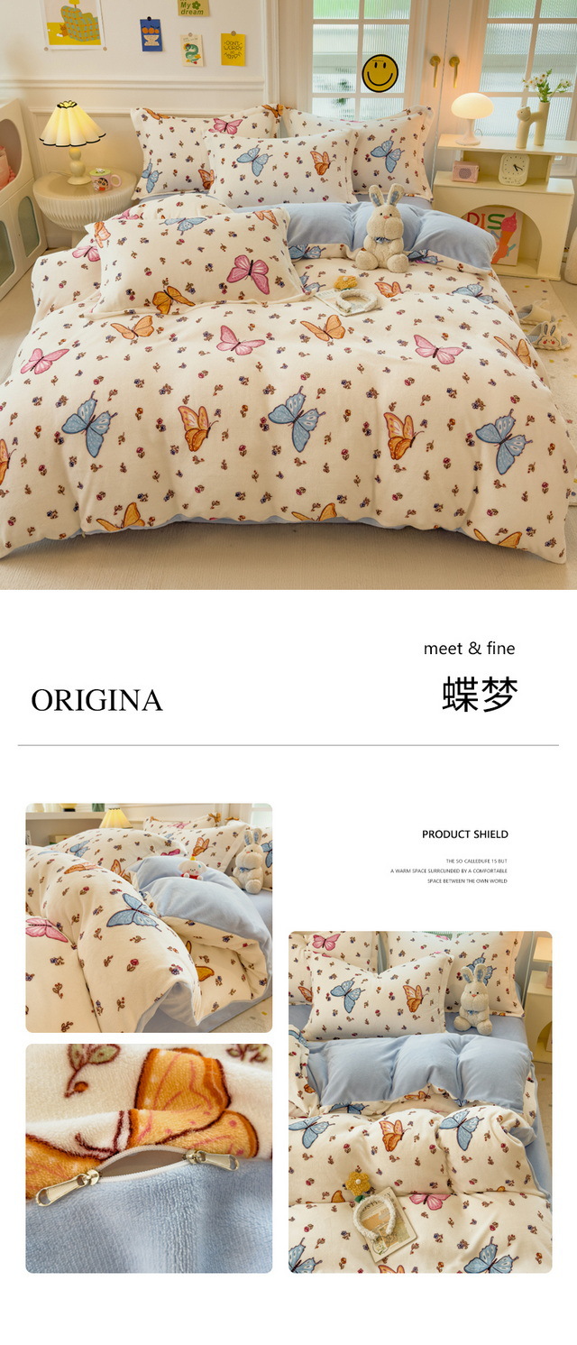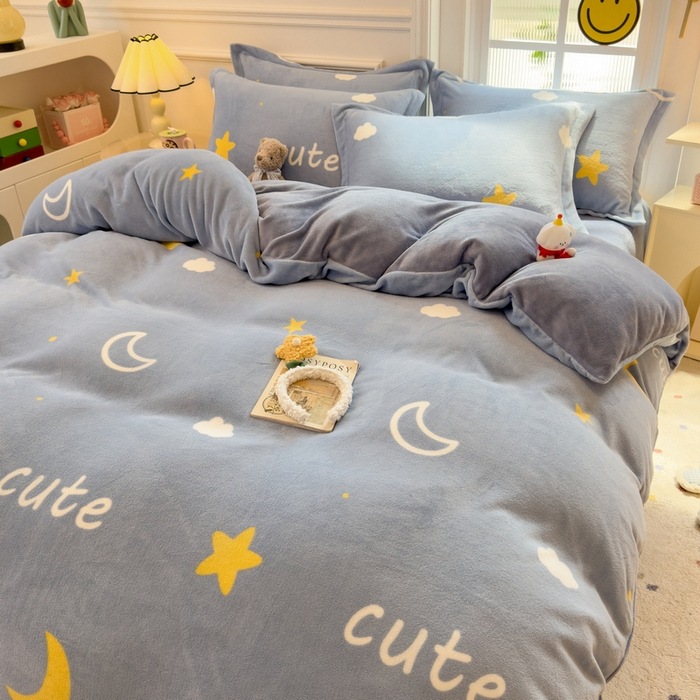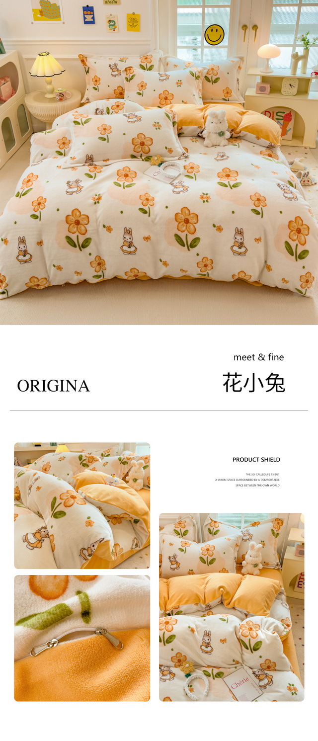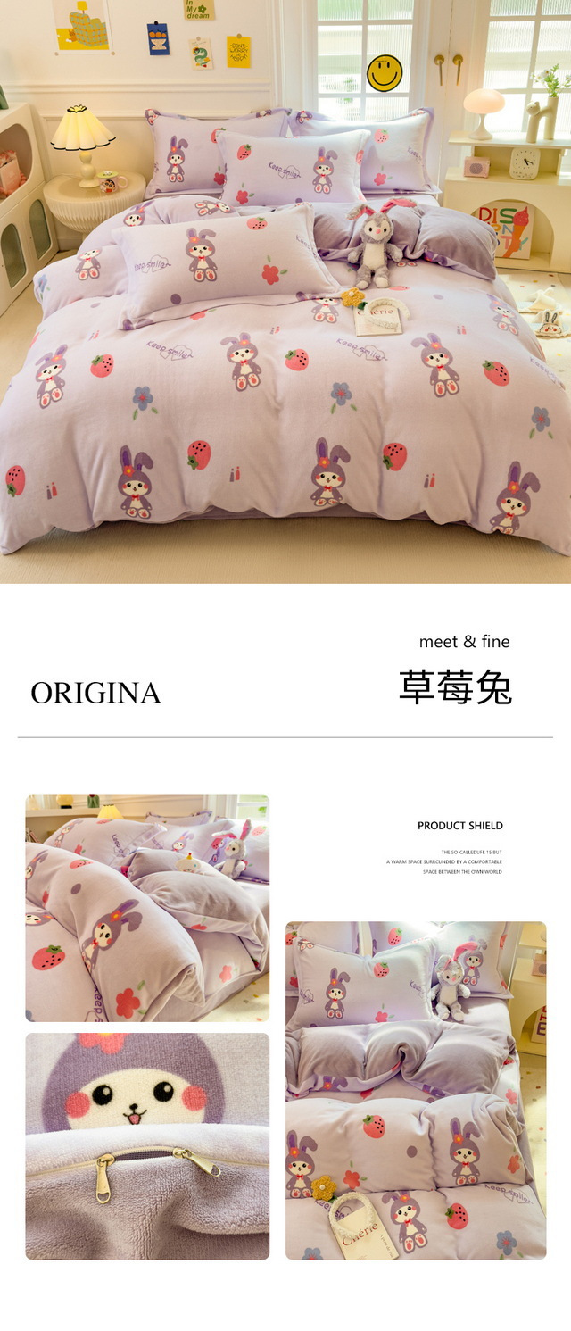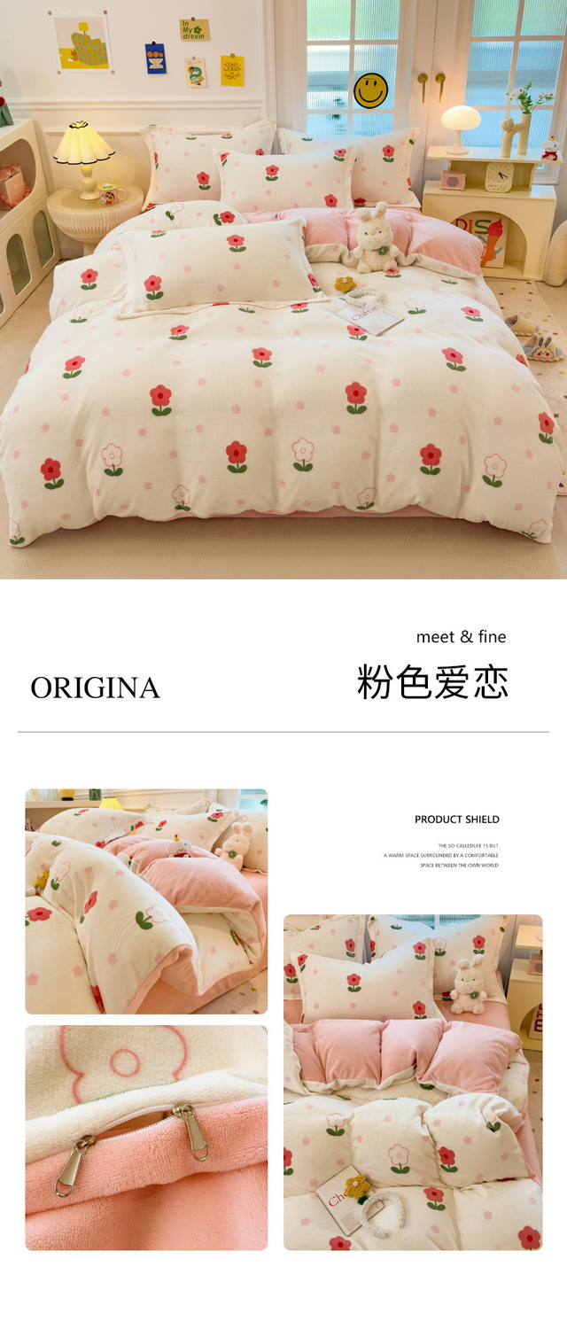 A类冬季母婴级牛奶绒四件套冬加厚珊瑚绒床笠加绒床单被套三件套