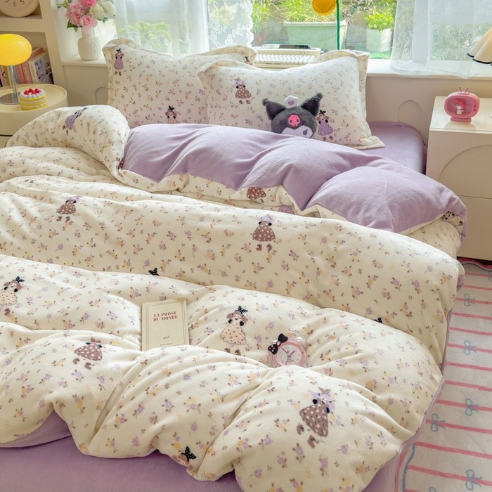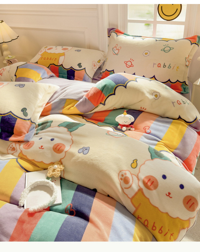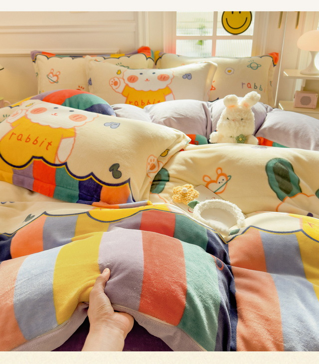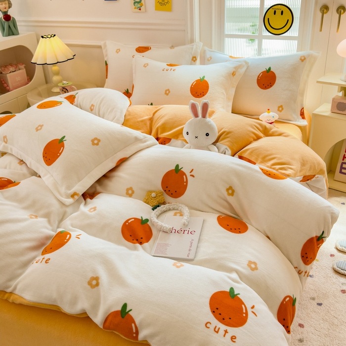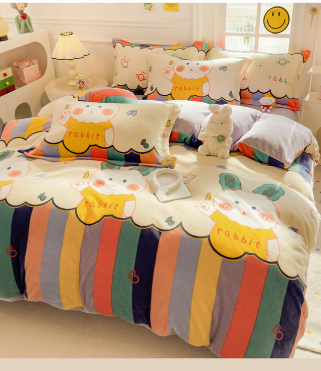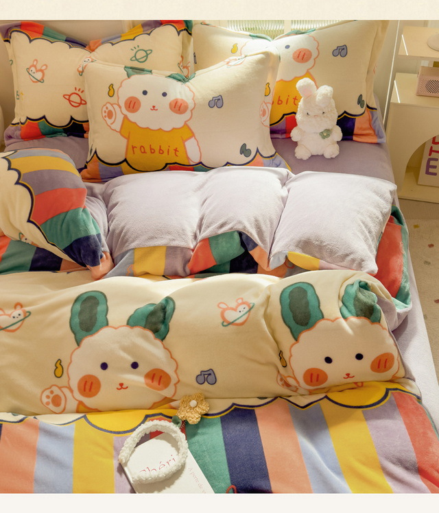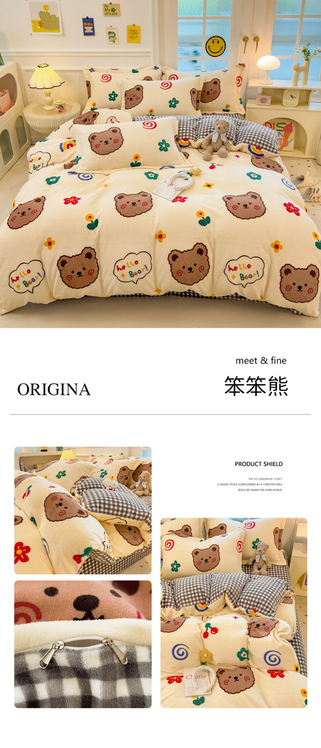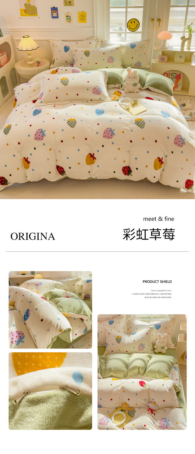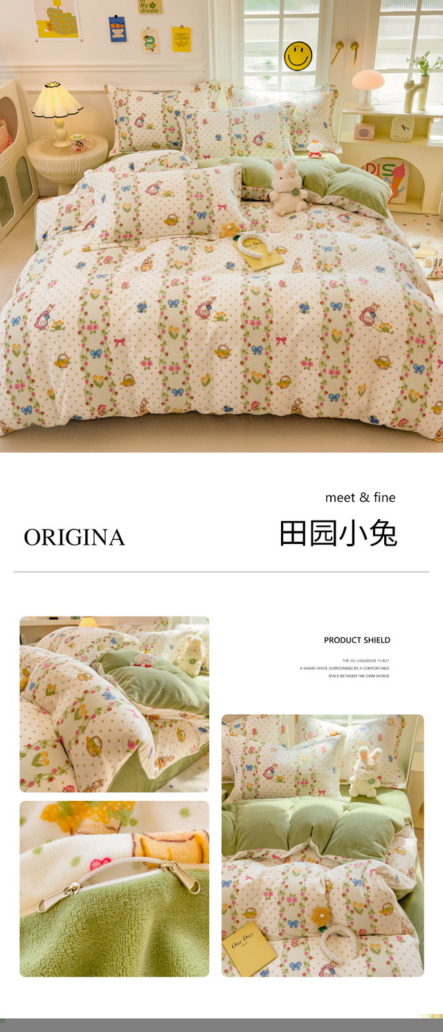 A类冬季母婴级牛奶绒四件套冬加厚珊瑚绒床笠加绒床单被套三件套