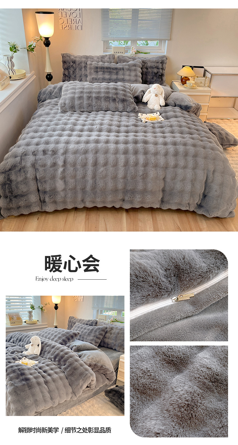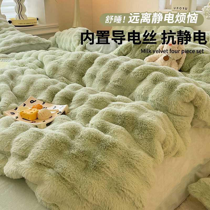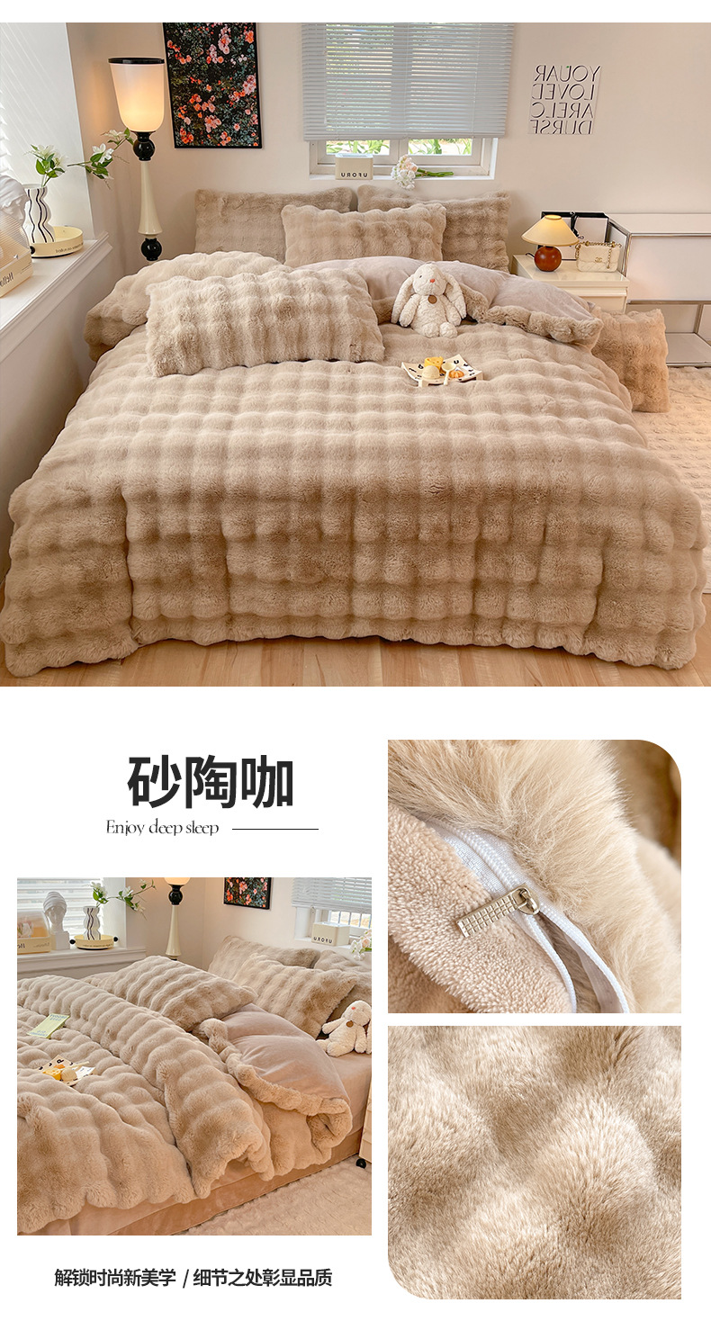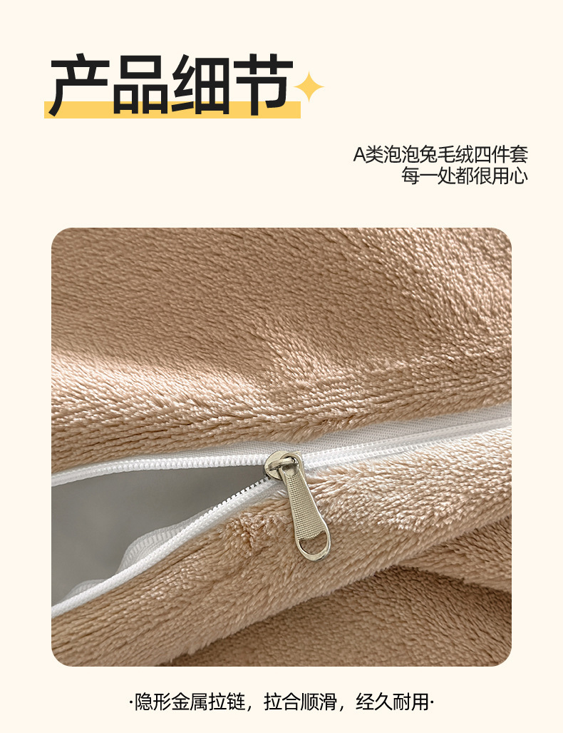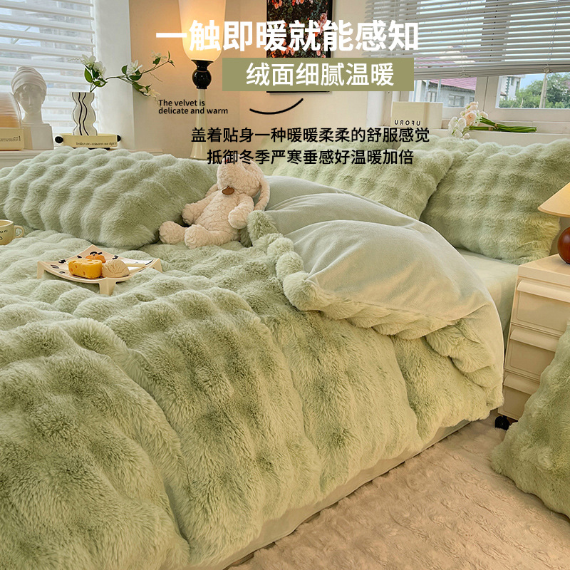 A类秋冬加厚兔毛绒四件套牛奶绒加厚保暖双面绒床单被套珊瑚绒4