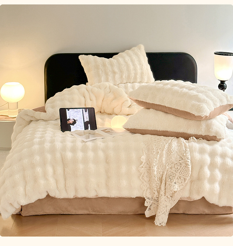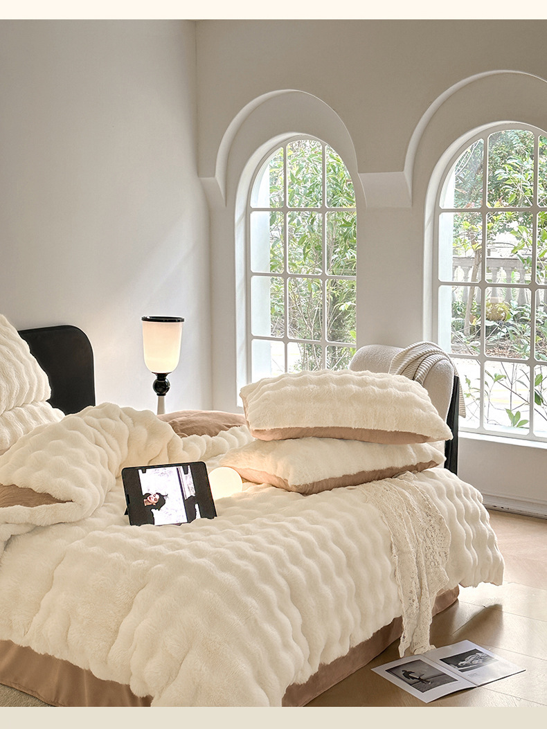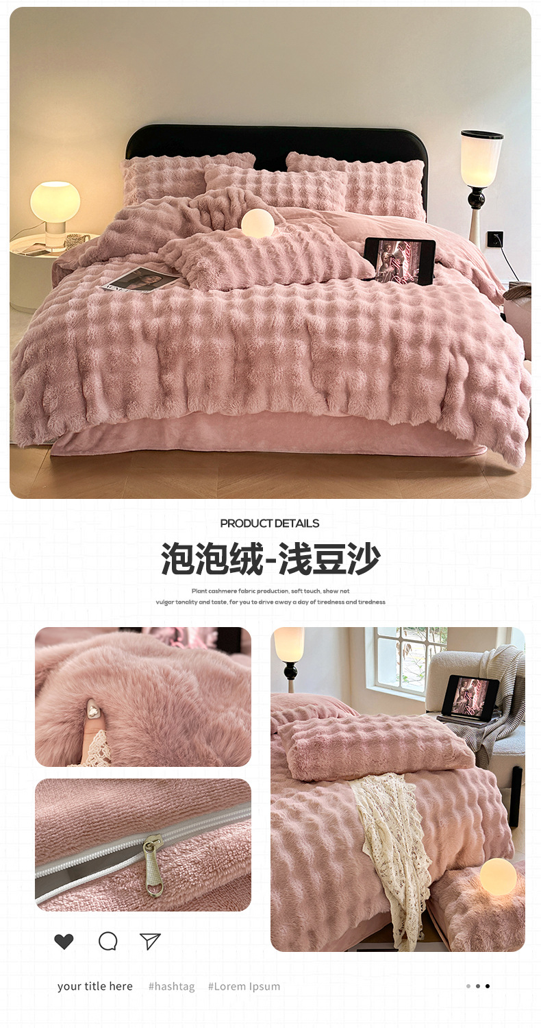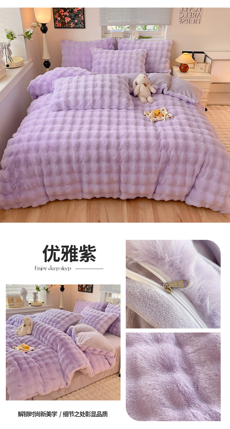 A类秋冬加厚兔毛绒四件套牛奶绒加厚保暖双面绒床单被套珊瑚绒4