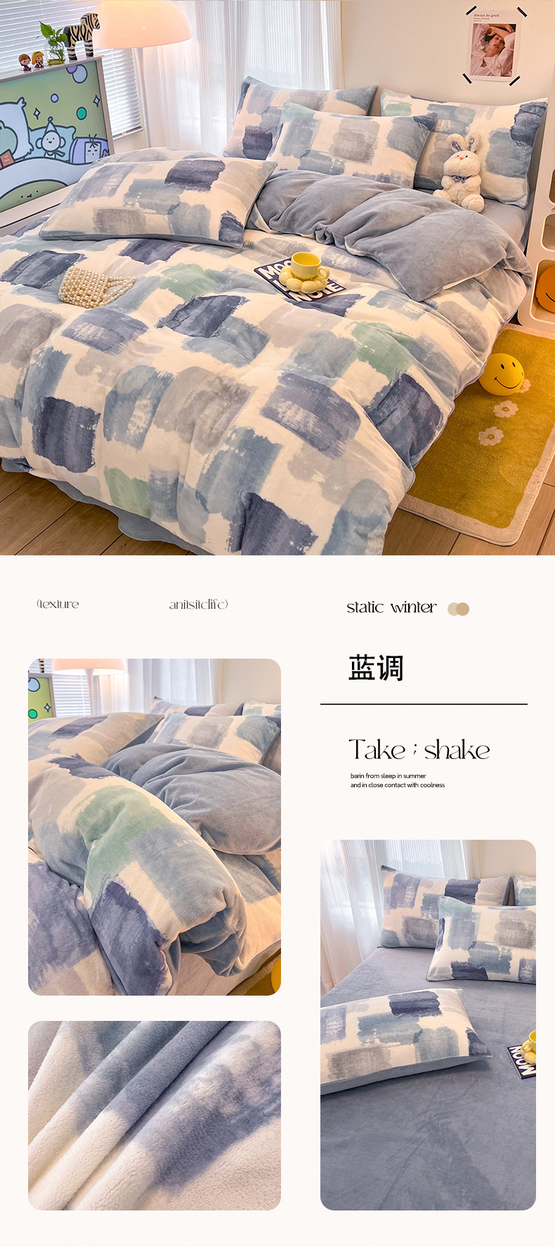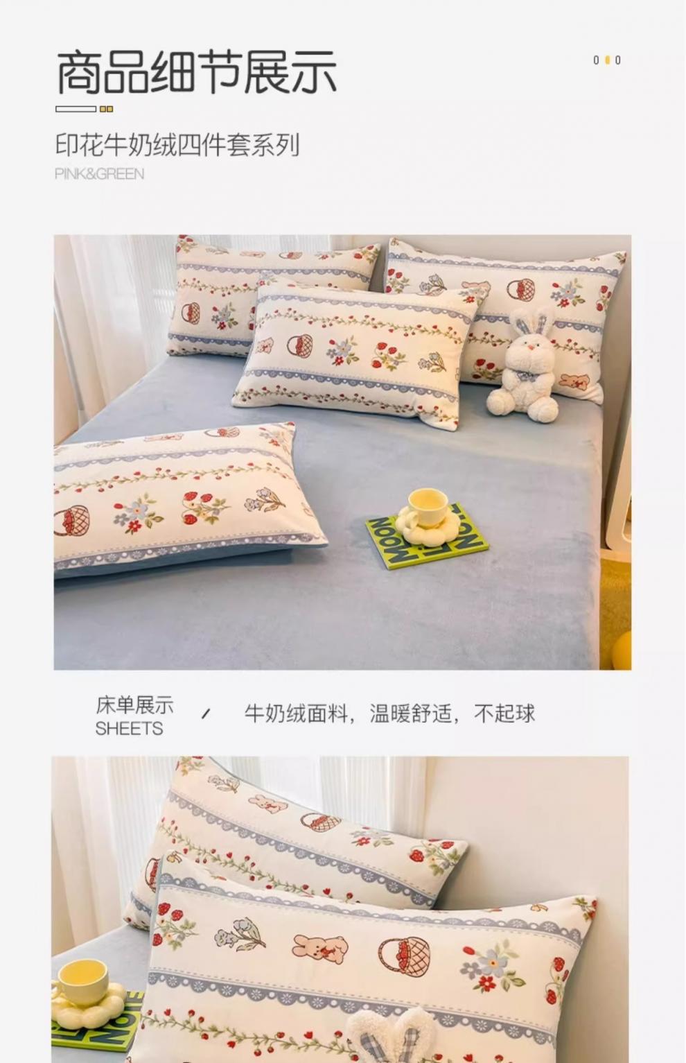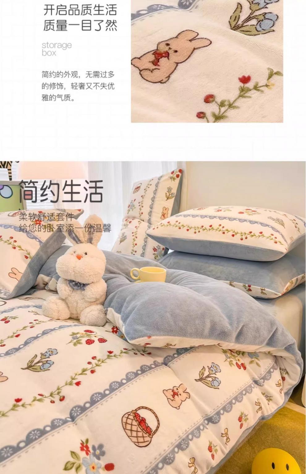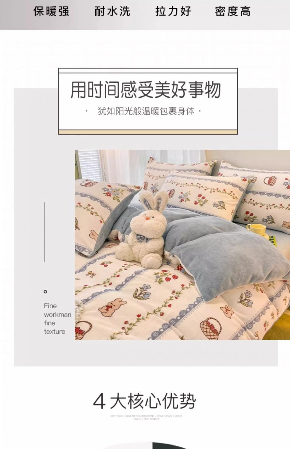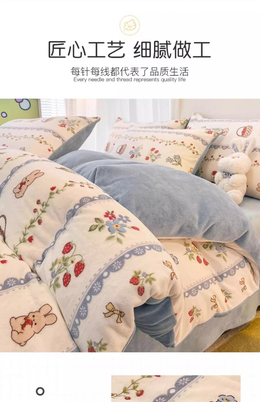 珊瑚绒双面法兰加绒被套床单床笠冬季牛奶绒四件套床上三件套批发