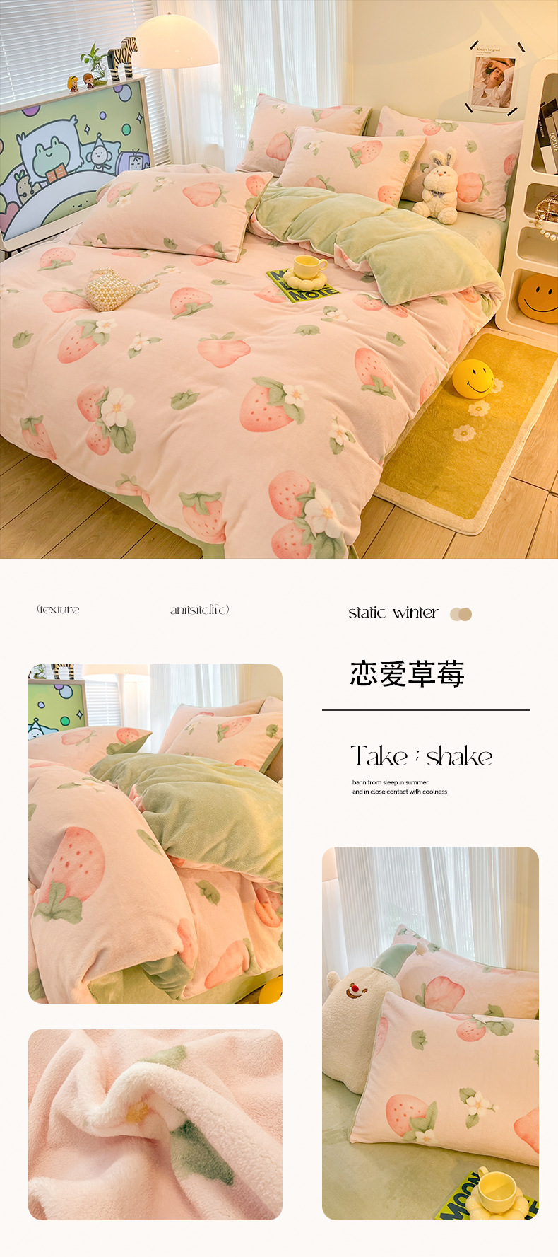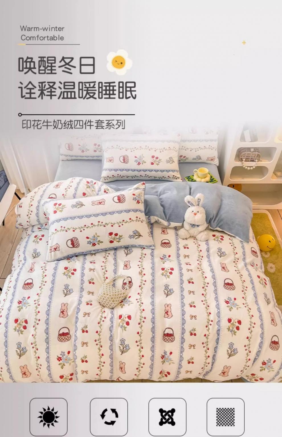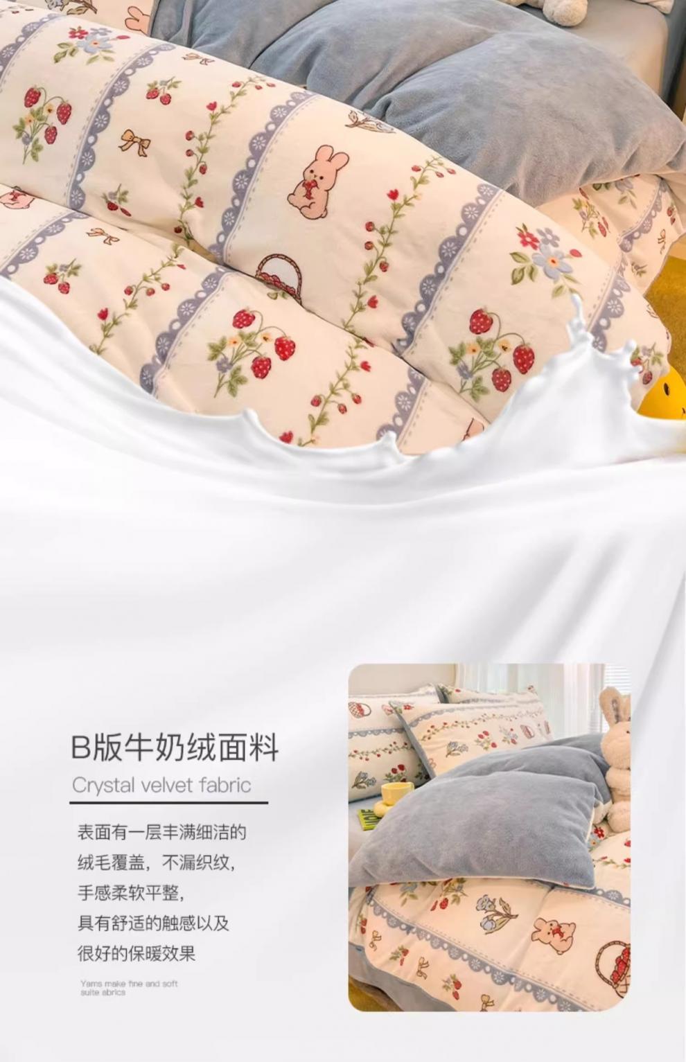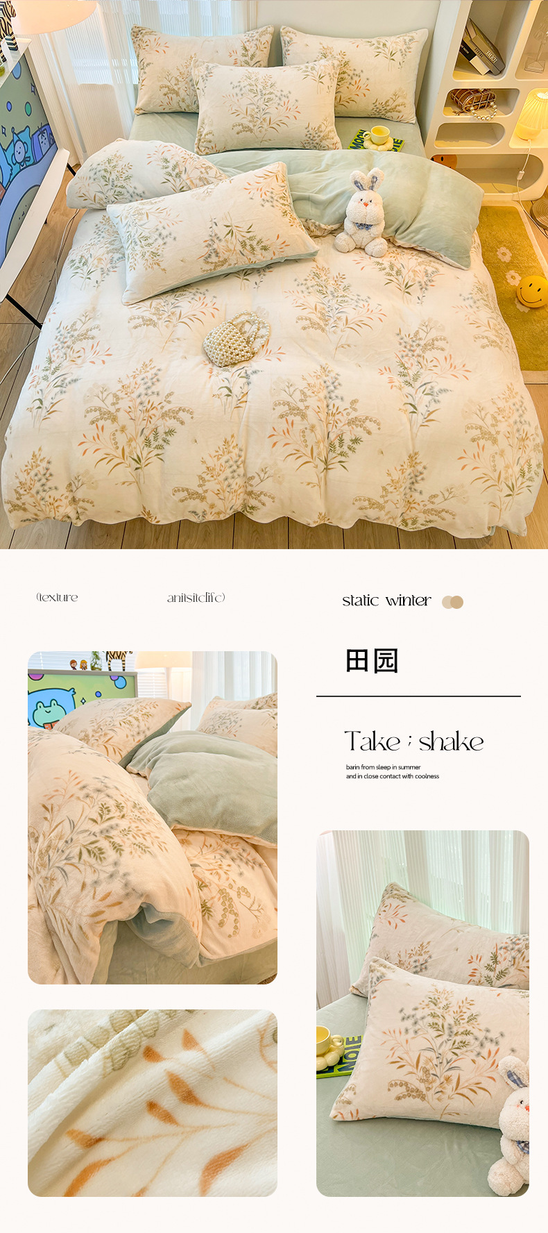 珊瑚绒双面法兰加绒被套床单床笠冬季牛奶绒四件套床上三件套批发