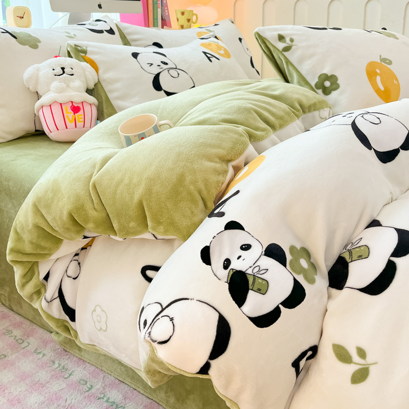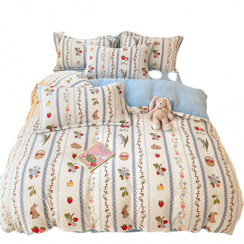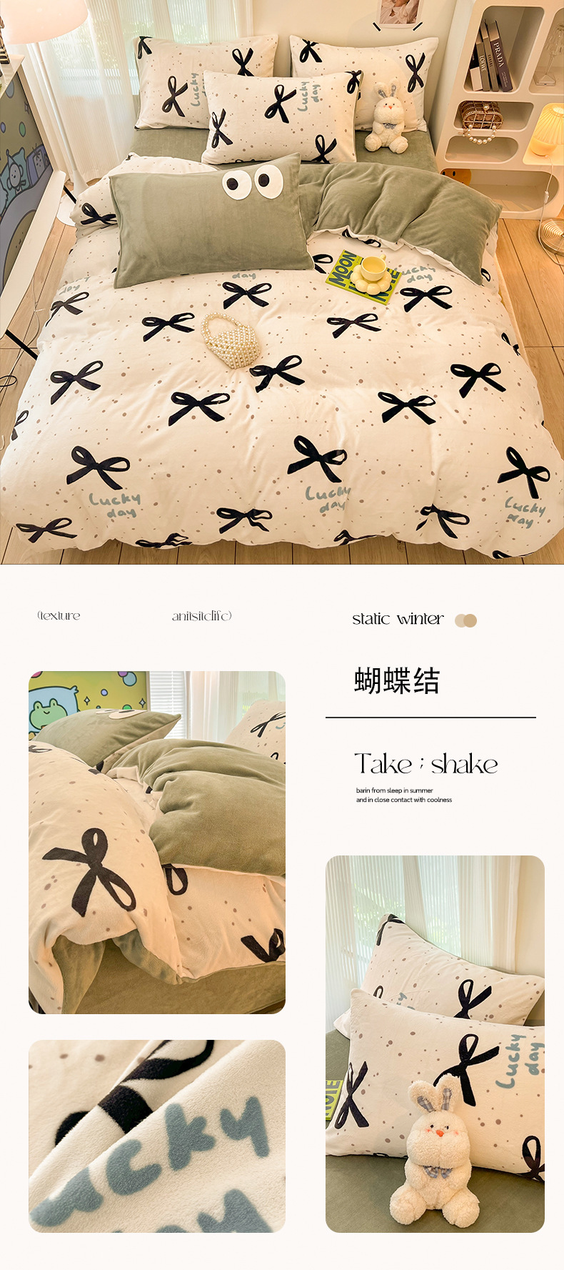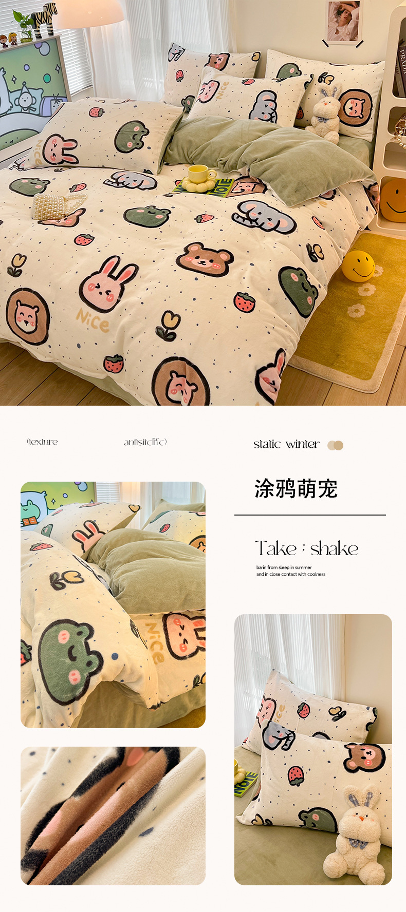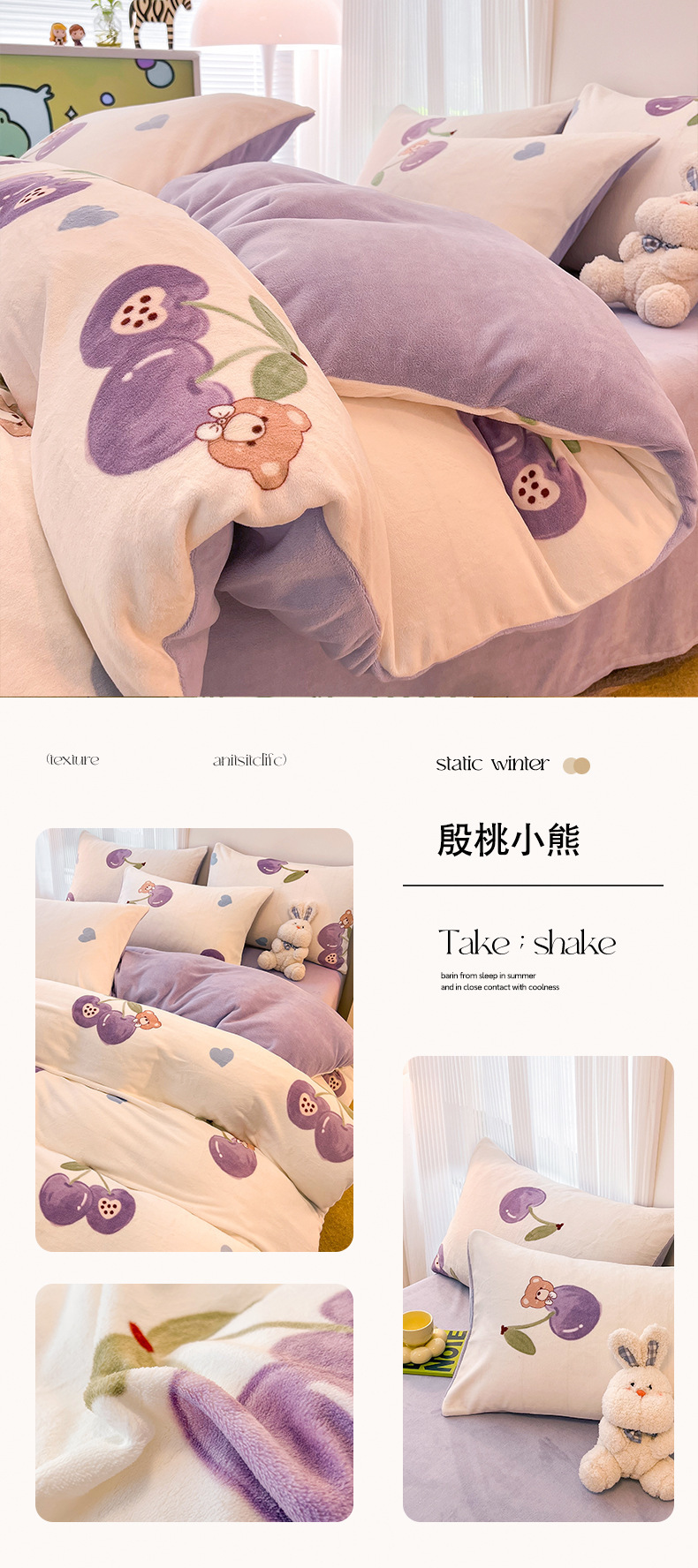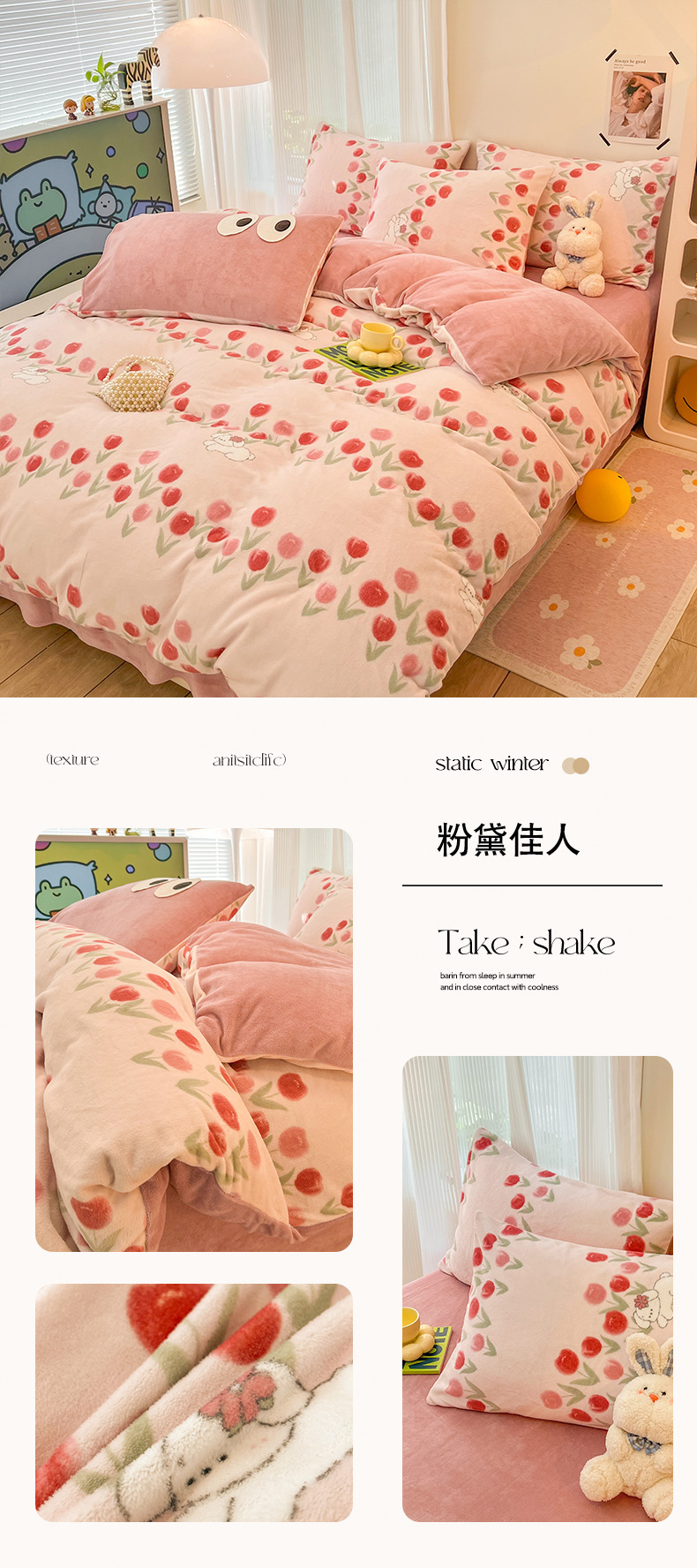 珊瑚绒双面法兰加绒被套床单床笠冬季牛奶绒四件套床上三件套批发