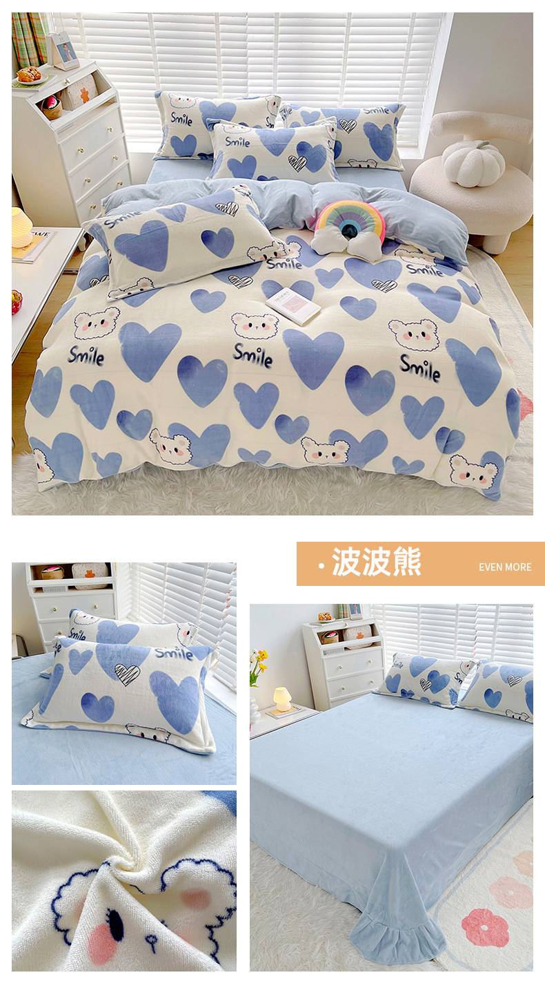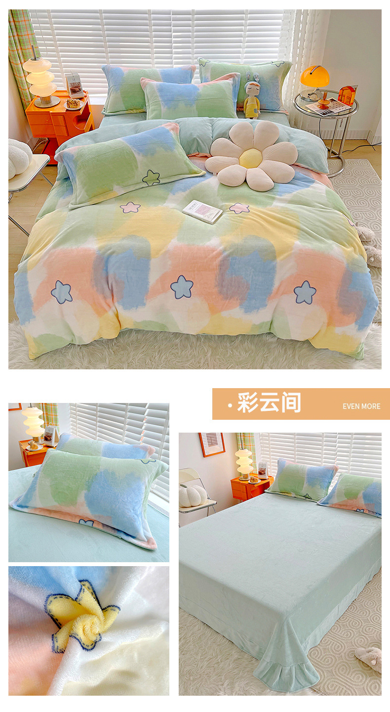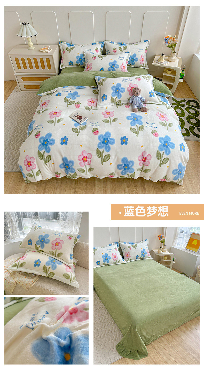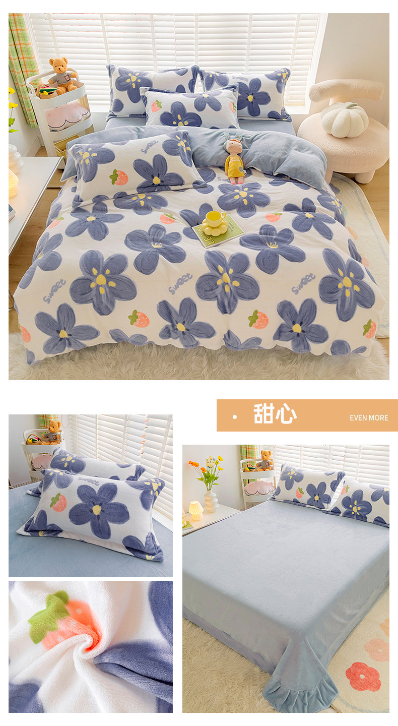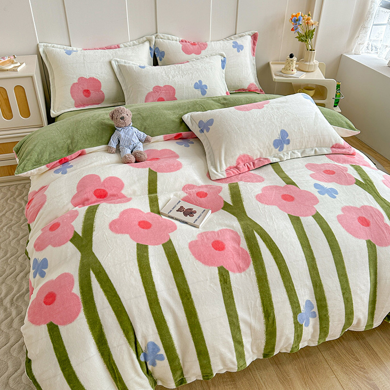 小清新双面牛奶绒四件套单被套冬季加厚保暖儿童床上用品加绒床单