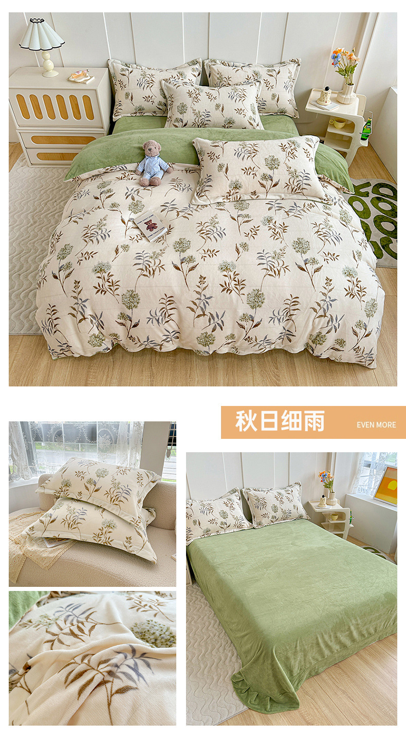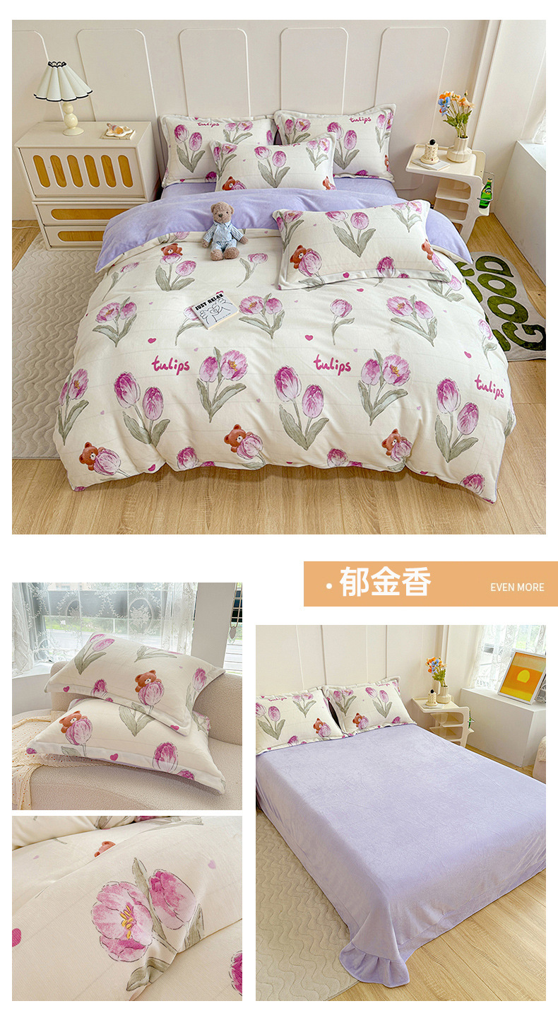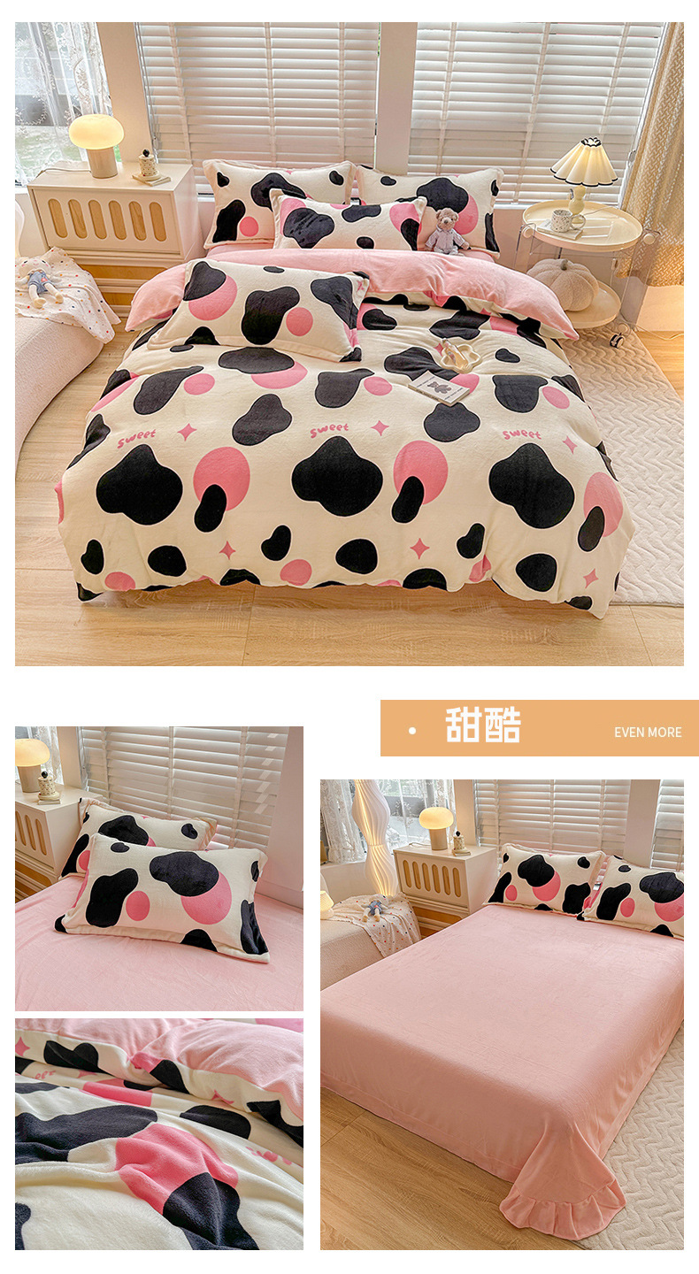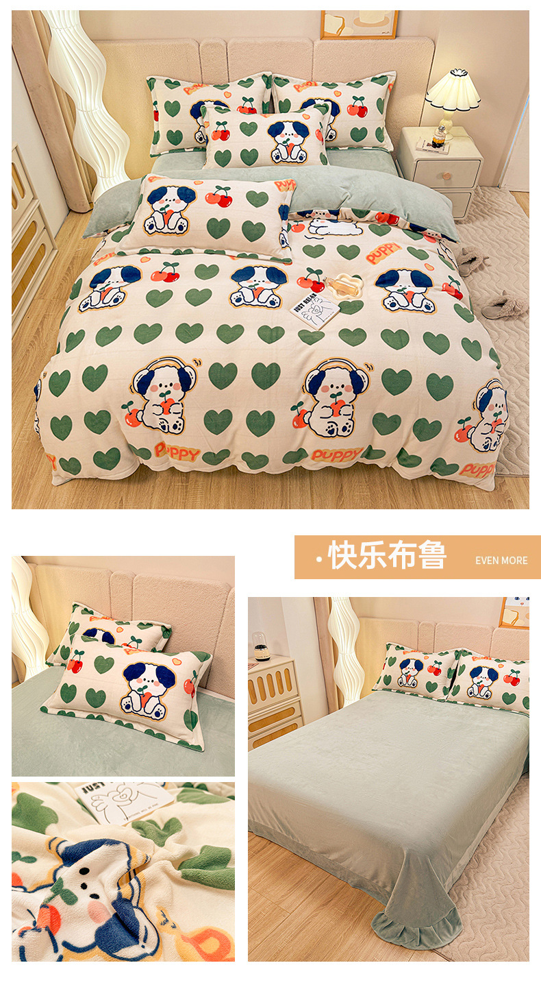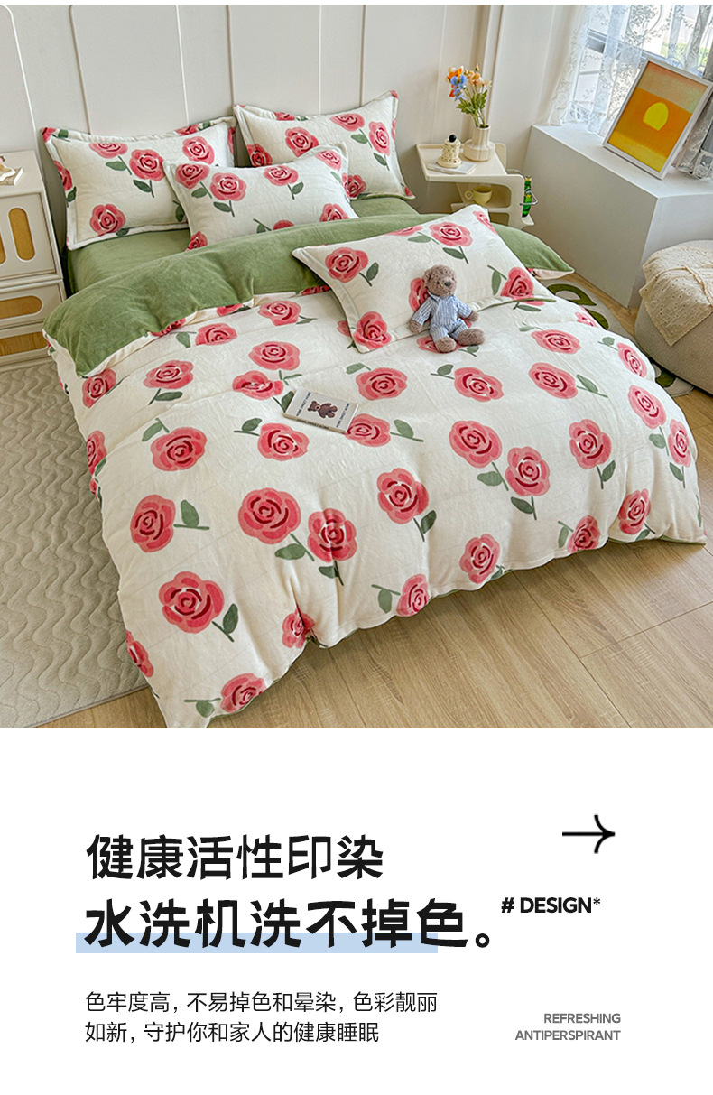 小清新双面牛奶绒四件套单被套冬季加厚保暖儿童床上用品加绒床单