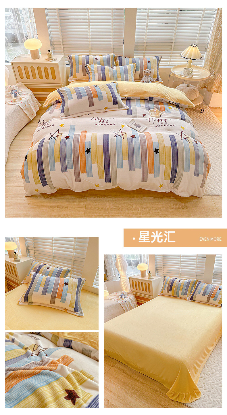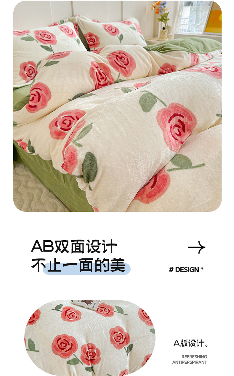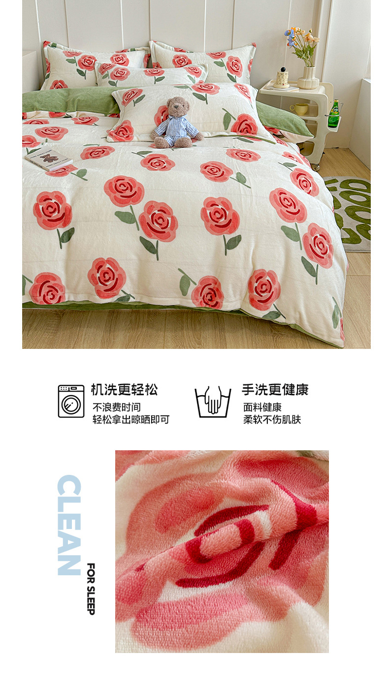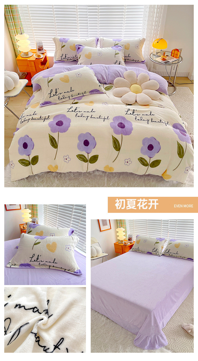 小清新双面牛奶绒四件套单被套冬季加厚保暖儿童床上用品加绒床单
