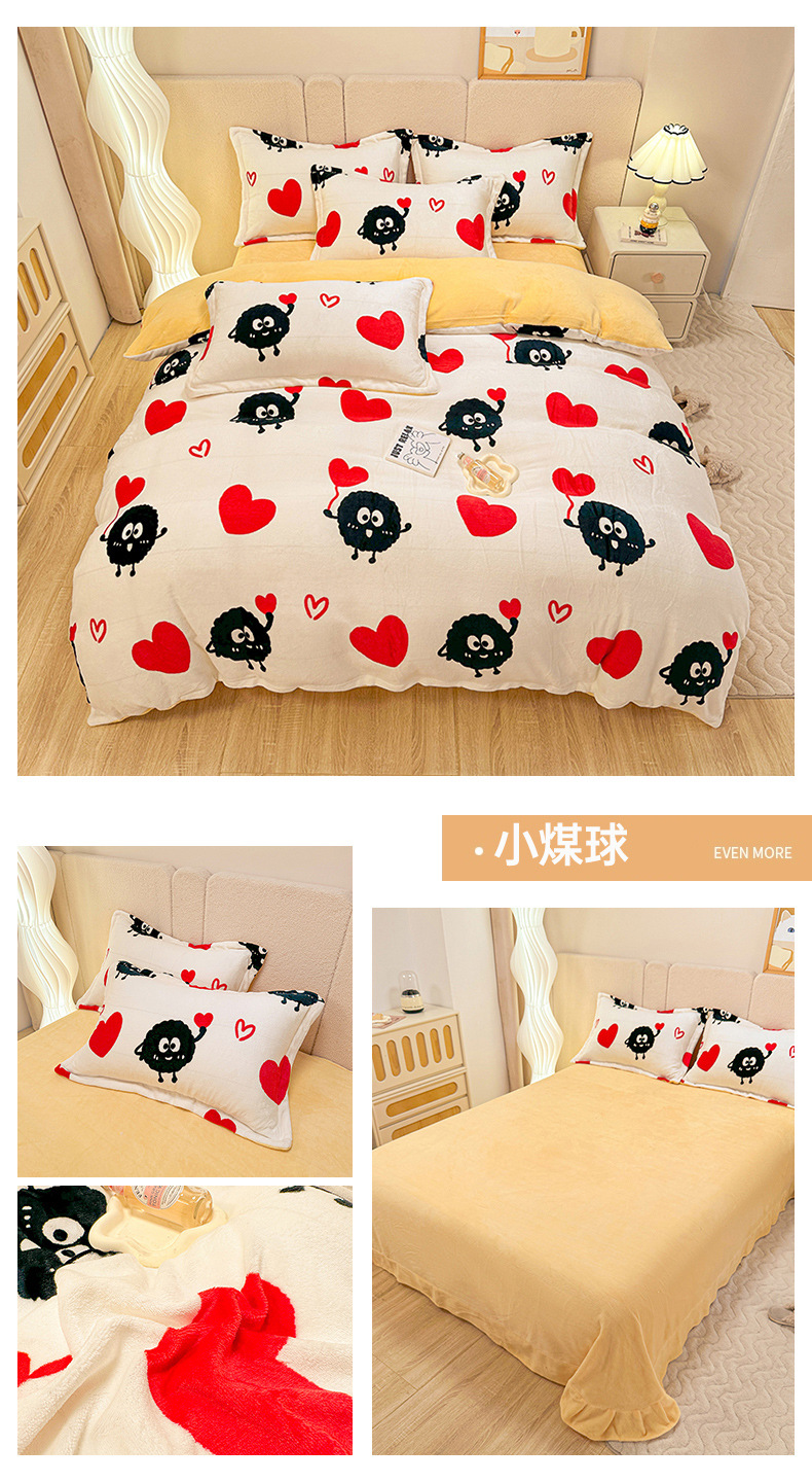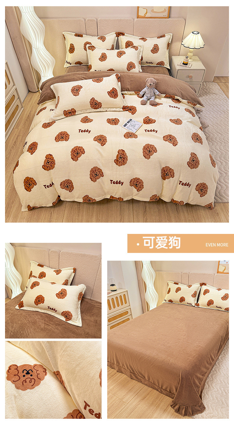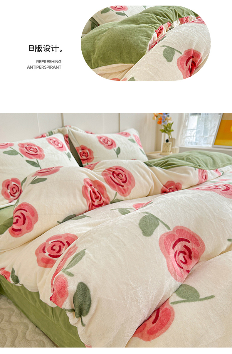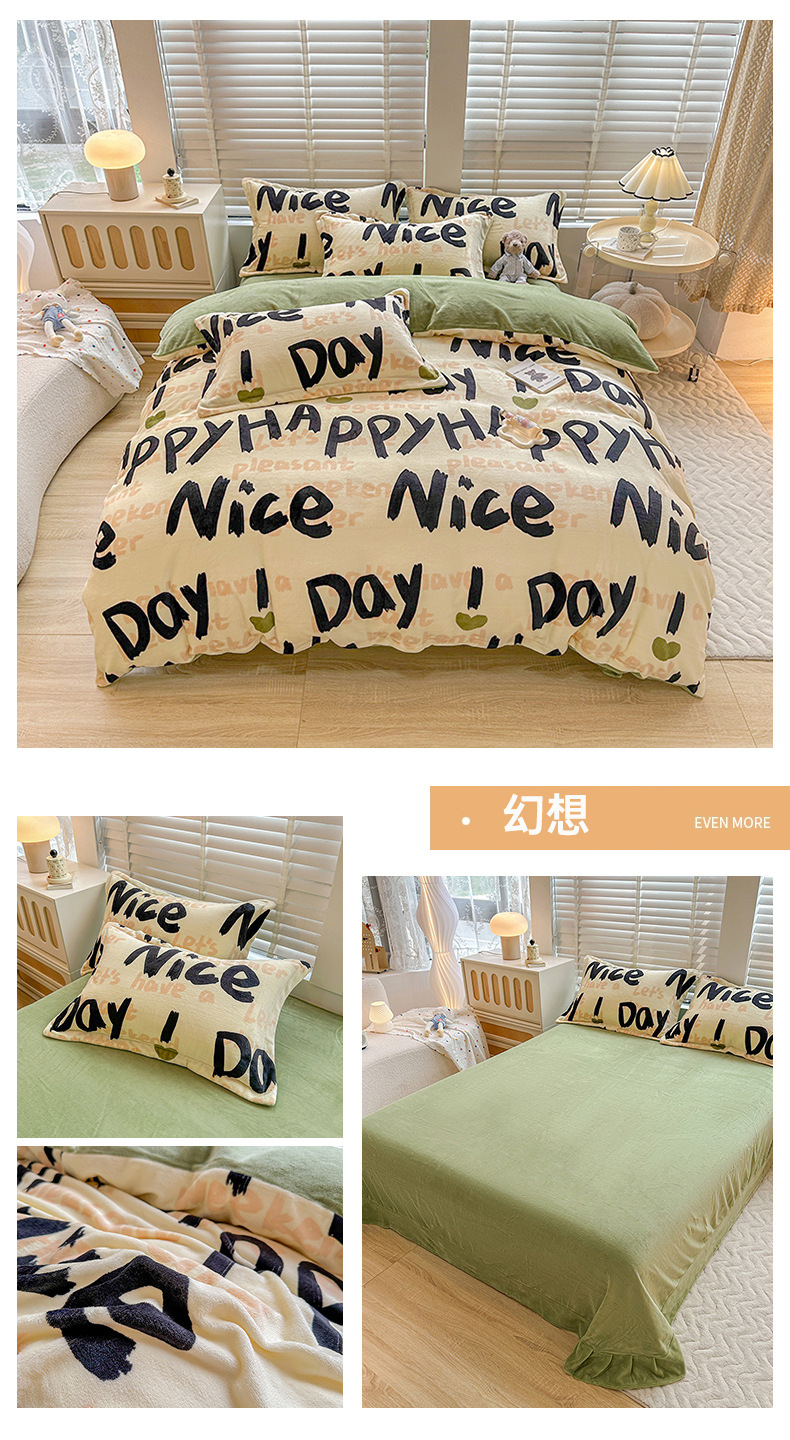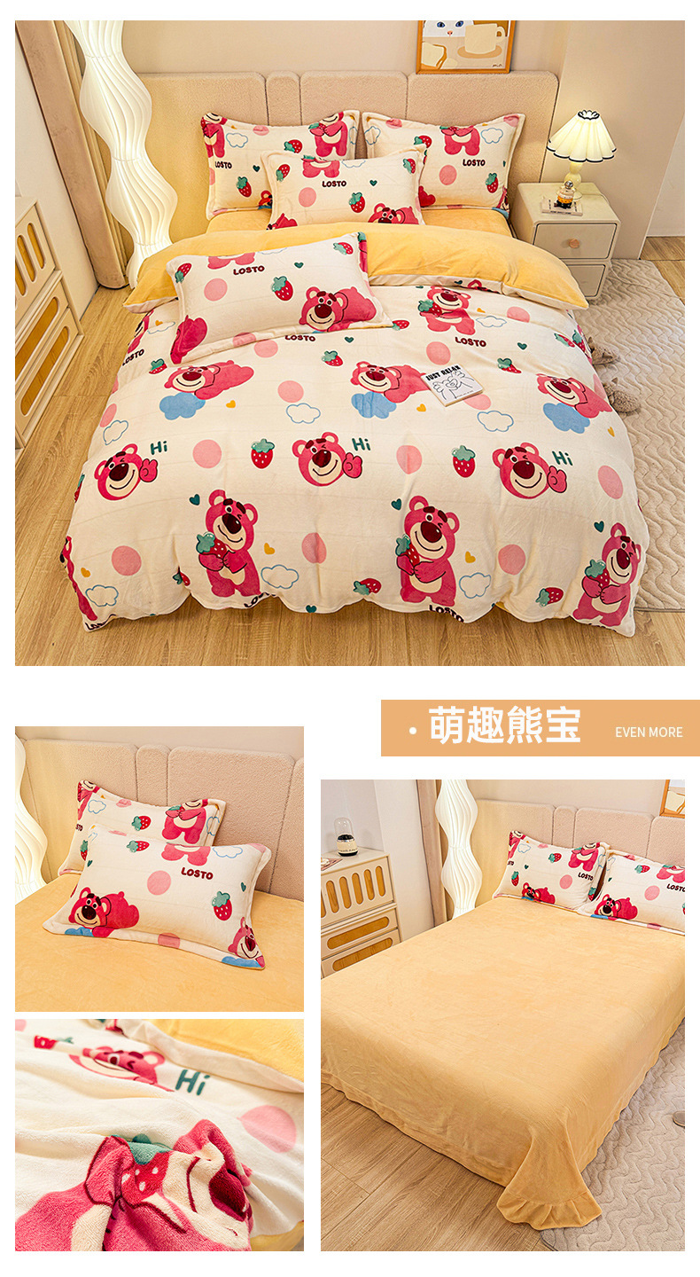 小清新双面牛奶绒四件套单被套冬季加厚保暖儿童床上用品加绒床单