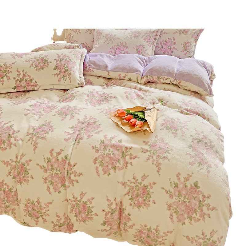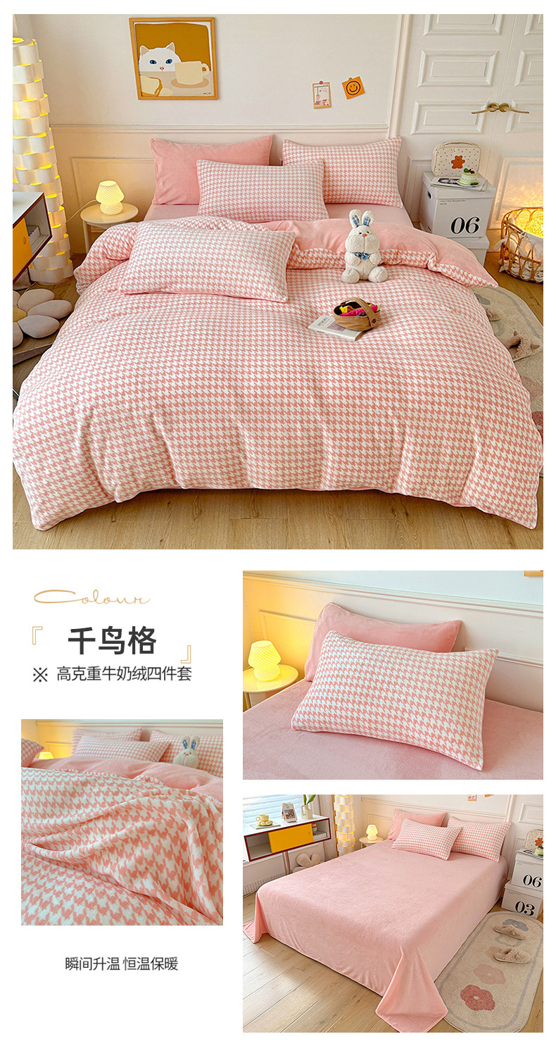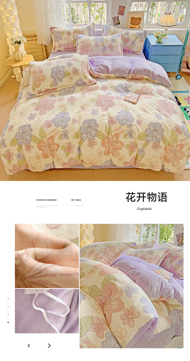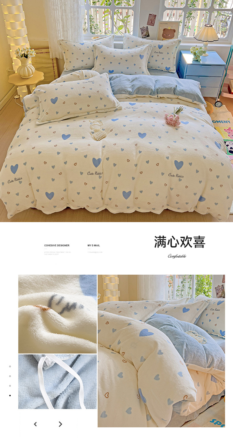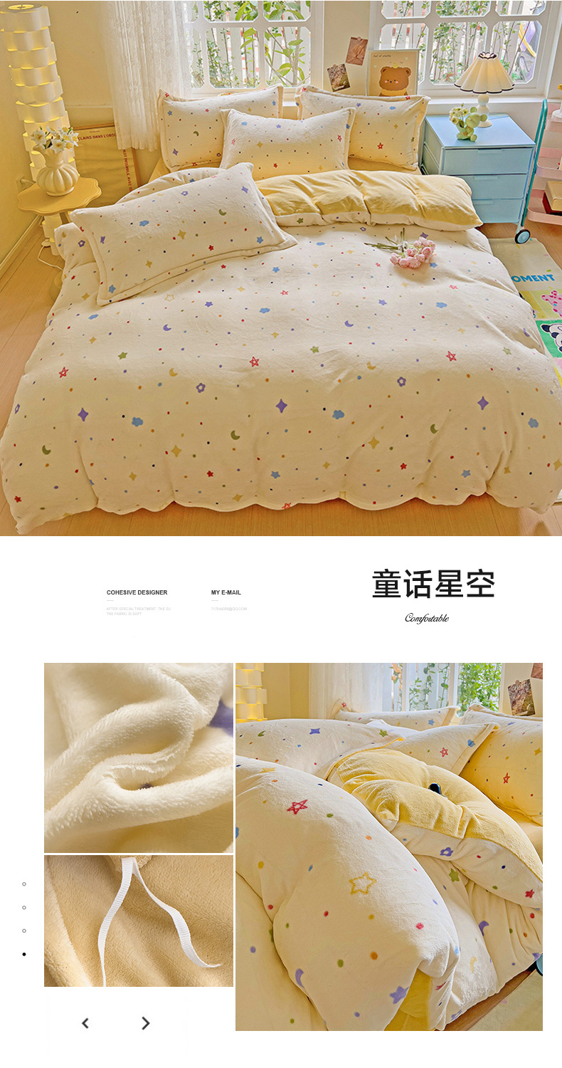 小清新双面牛奶绒四件套单被套冬季加厚保暖儿童床上用品加绒床单