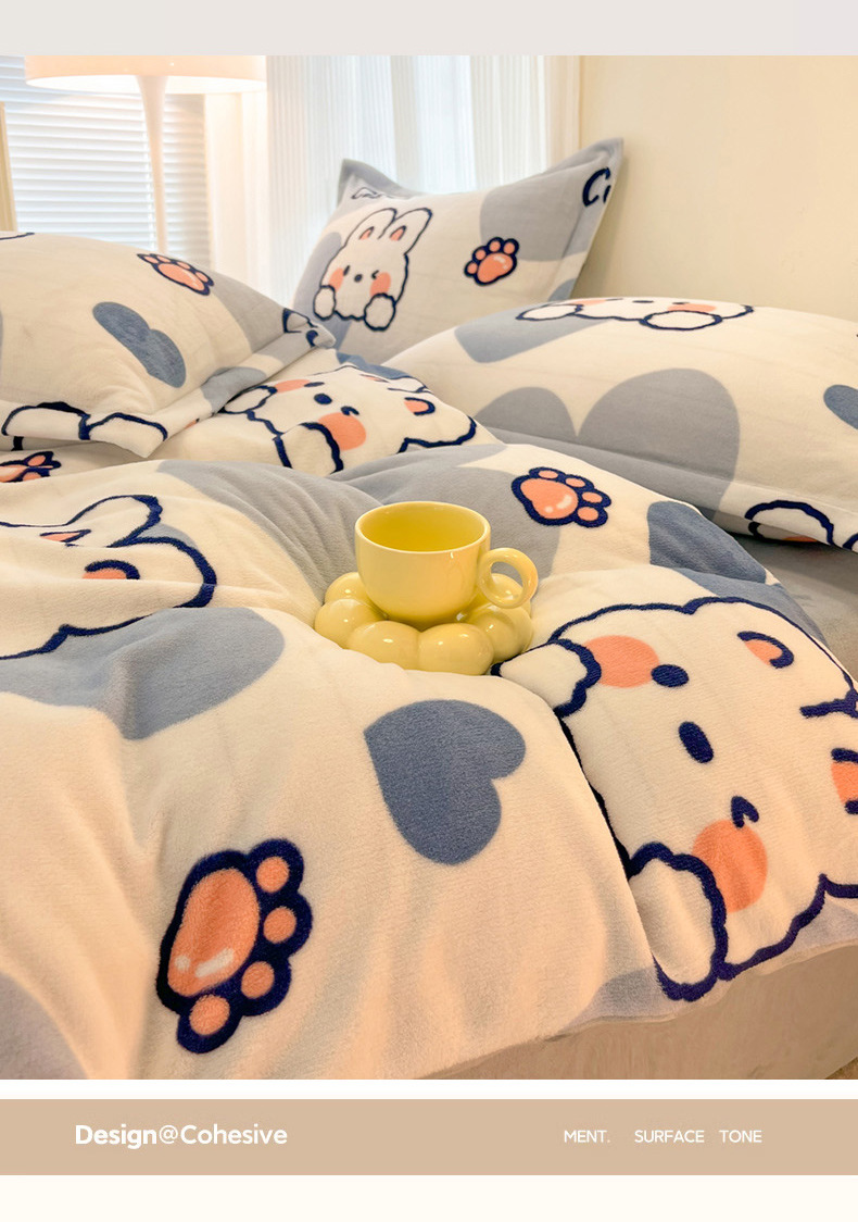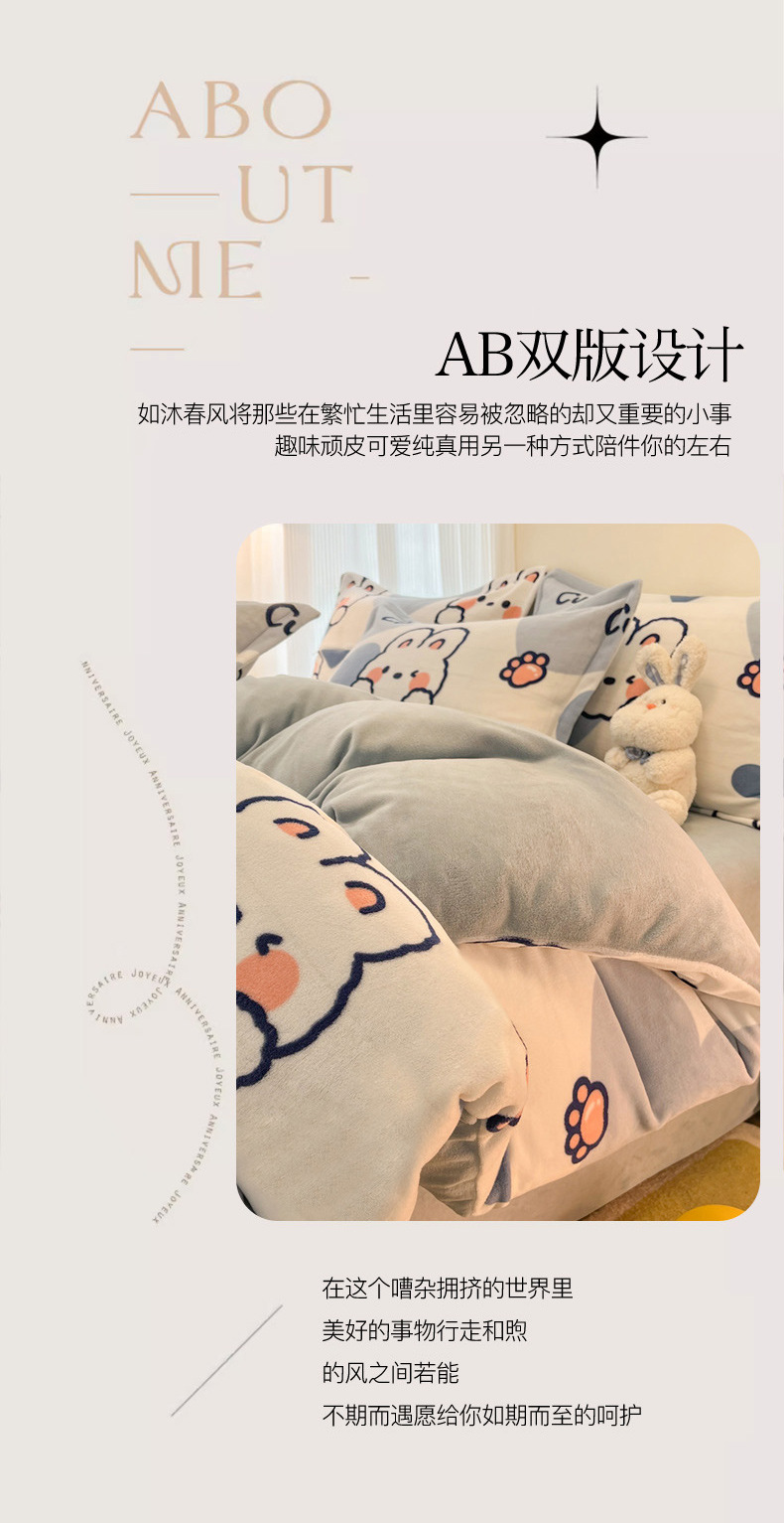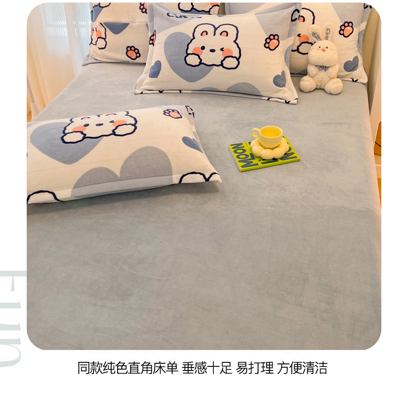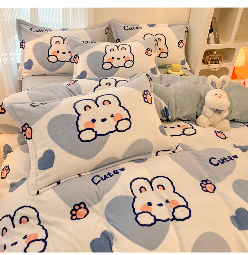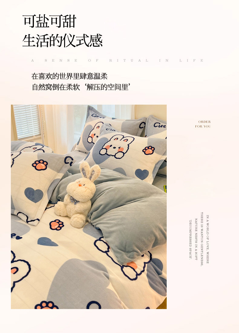 秋冬季加厚牛奶绒床上四件套珊瑚绒被套法兰绒加绒床单三件套批发