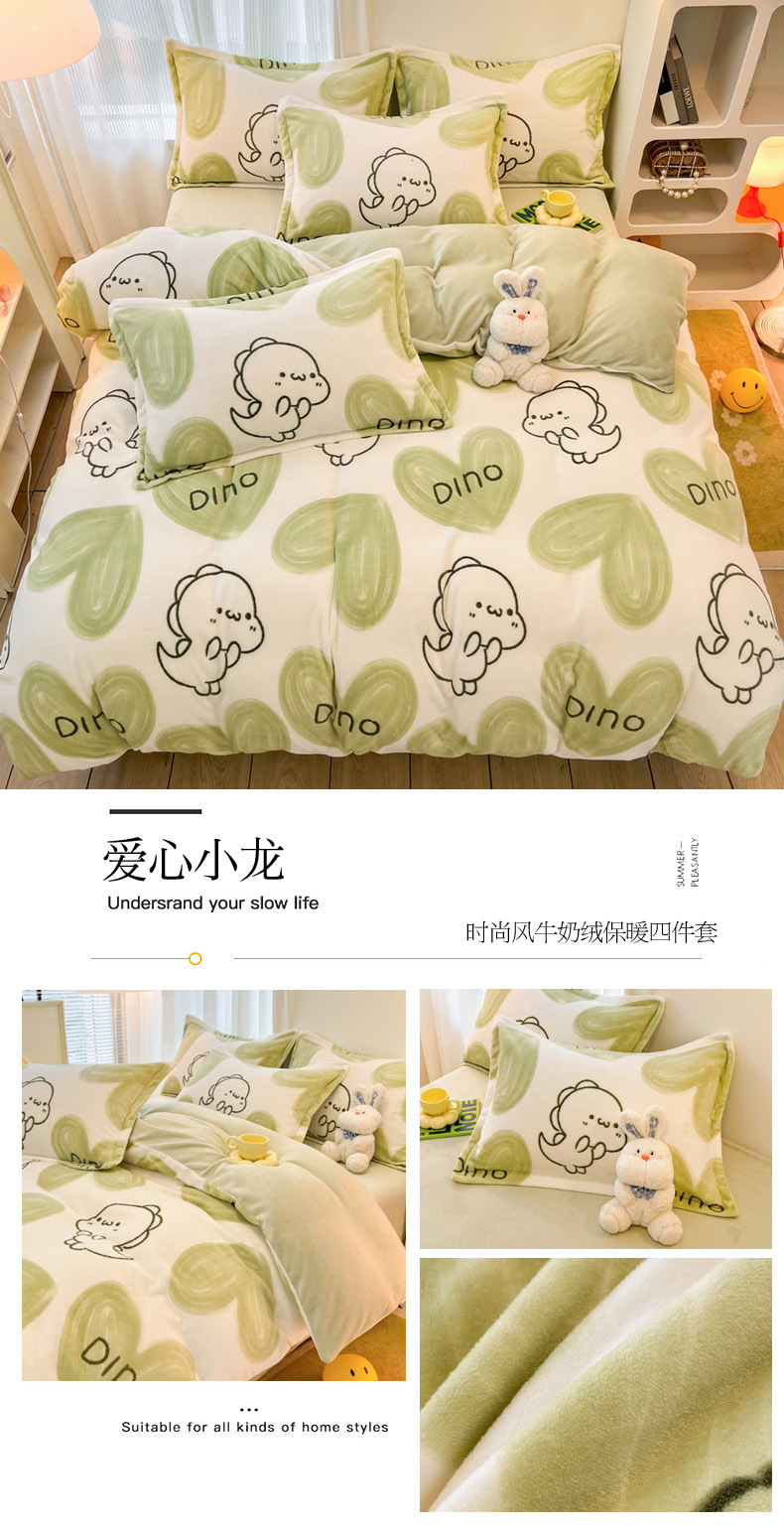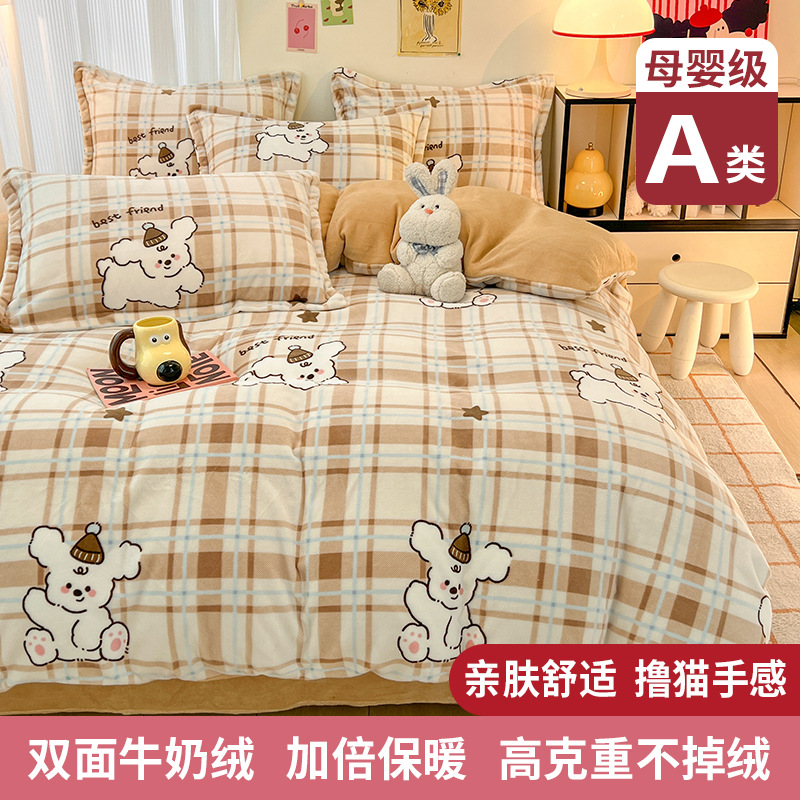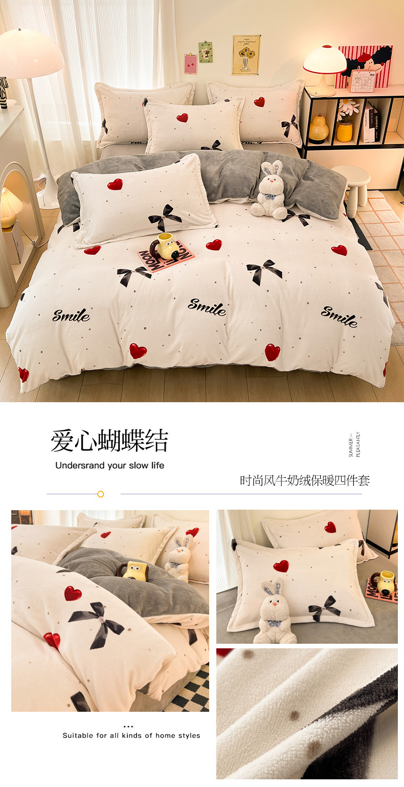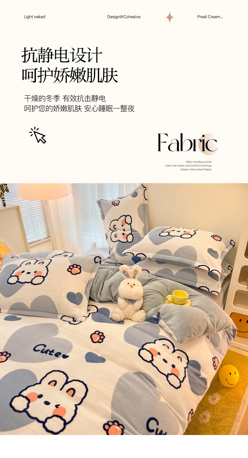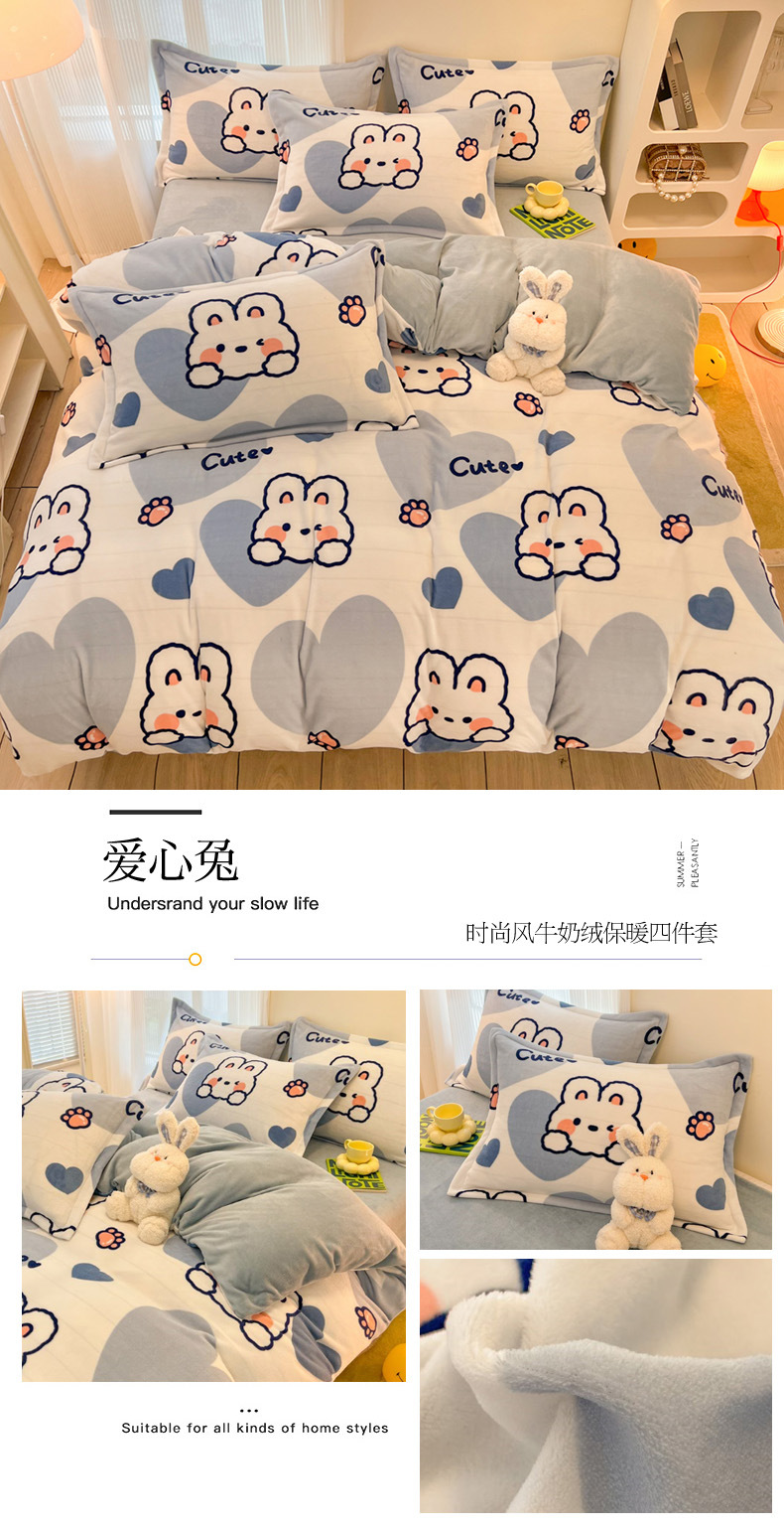 秋冬季加厚牛奶绒床上四件套珊瑚绒被套法兰绒加绒床单三件套批发