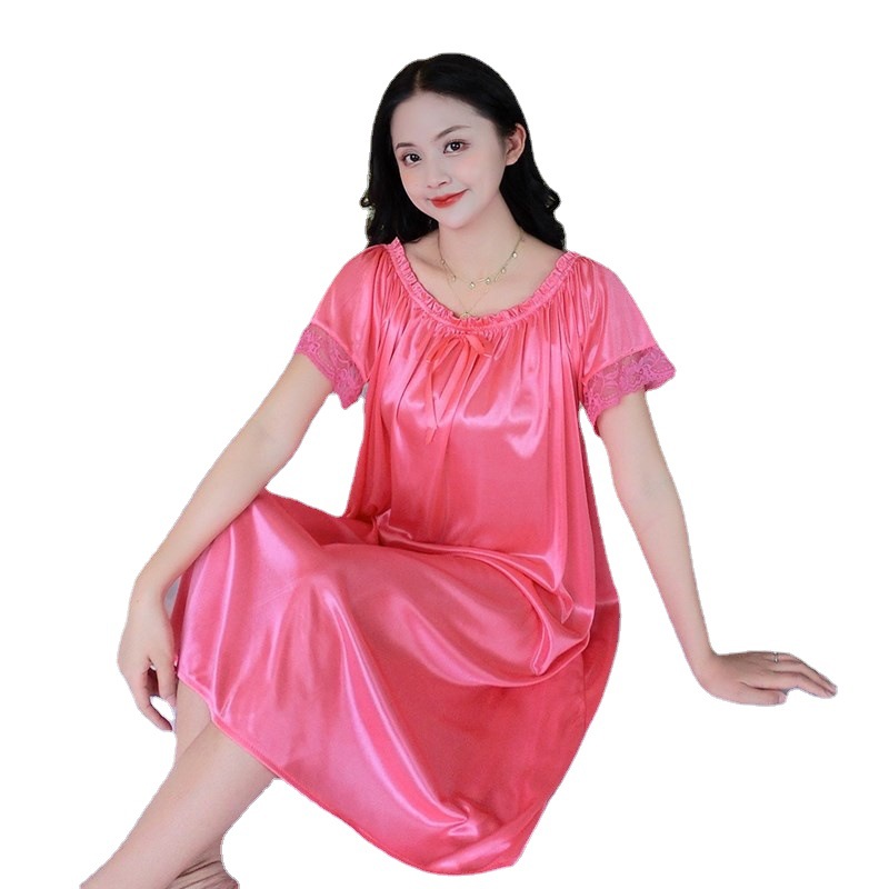 加肥性感女士夏季宽松冰丝中长款睡裙批发 短袖中年女士家居睡裙