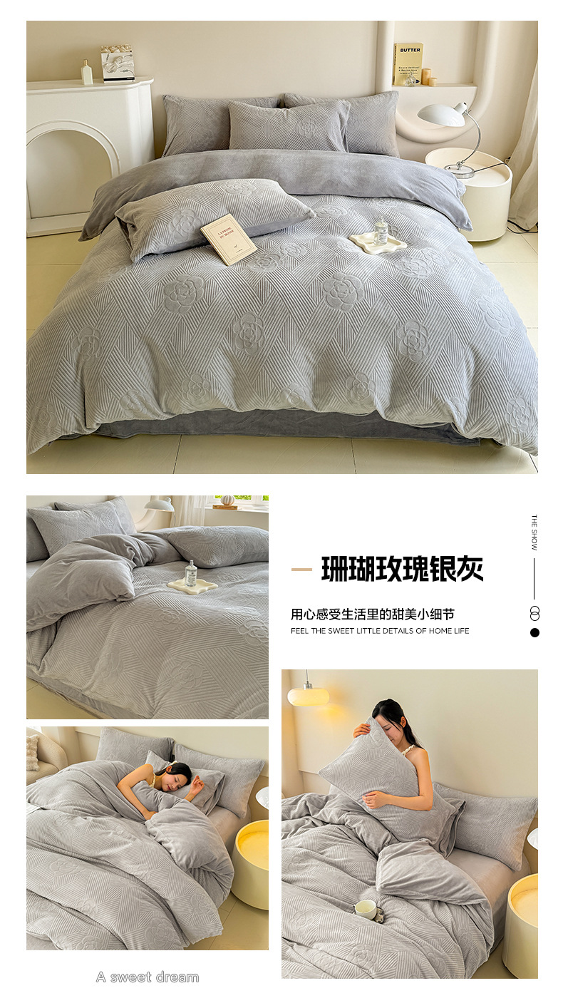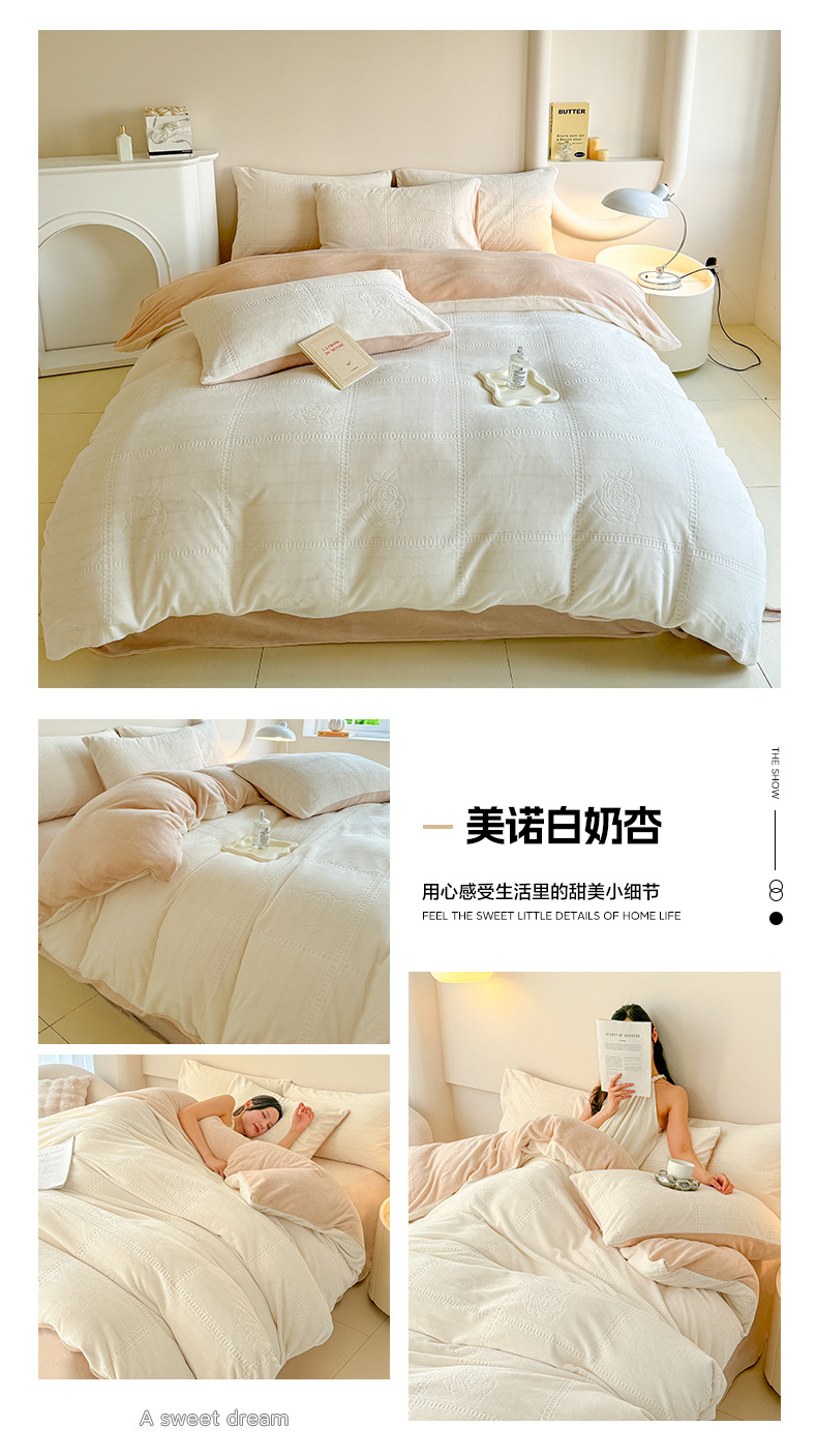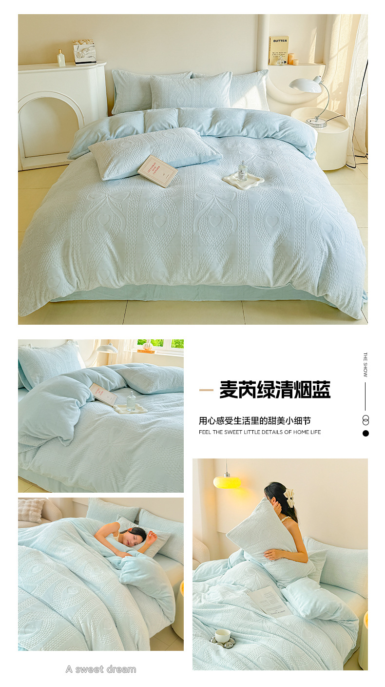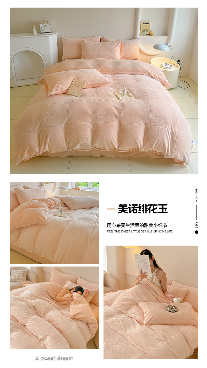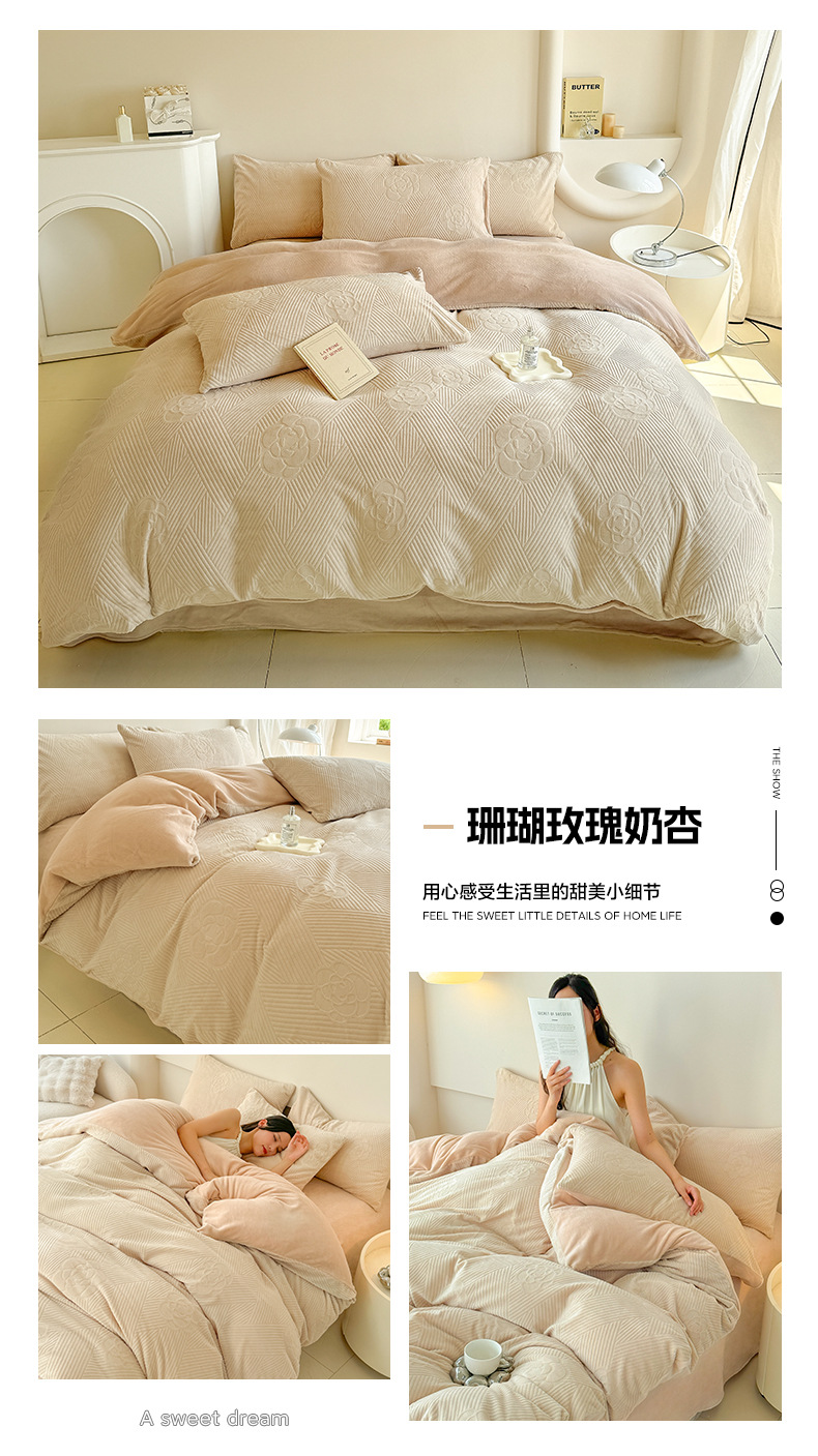 A类母婴级加厚保暖牛奶绒四件套珊瑚绒雕花绒被套加绒床单床笠款3