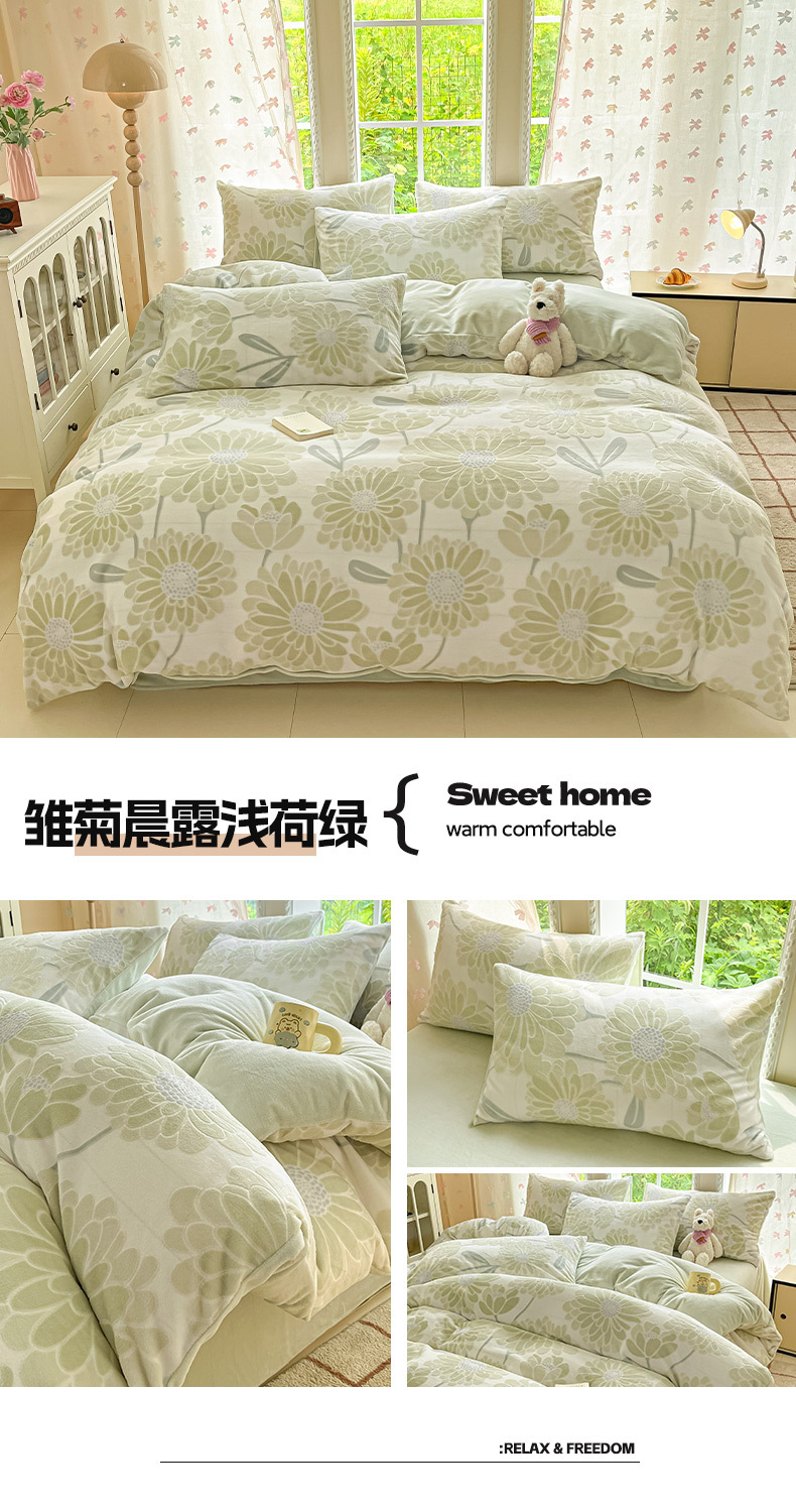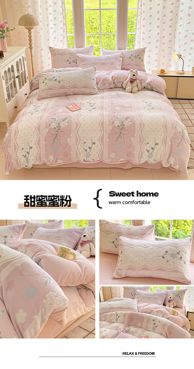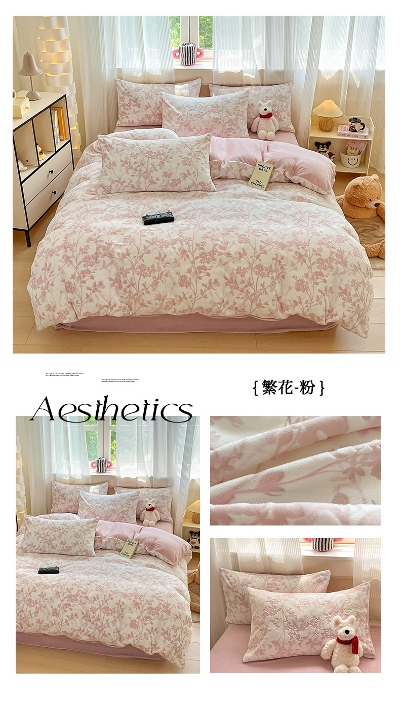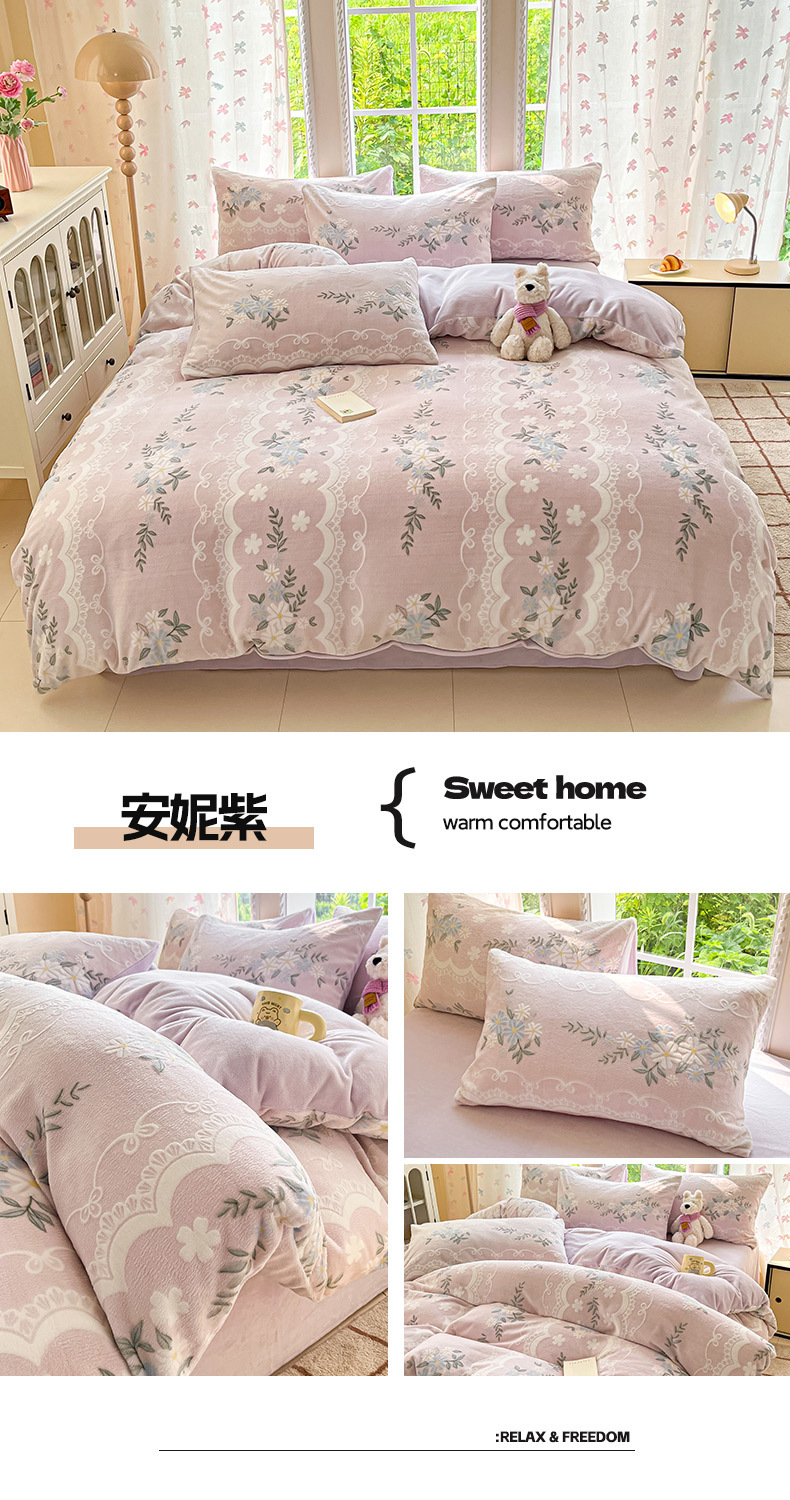 A类母婴级加厚保暖牛奶绒四件套珊瑚绒雕花绒被套加绒床单床笠款3