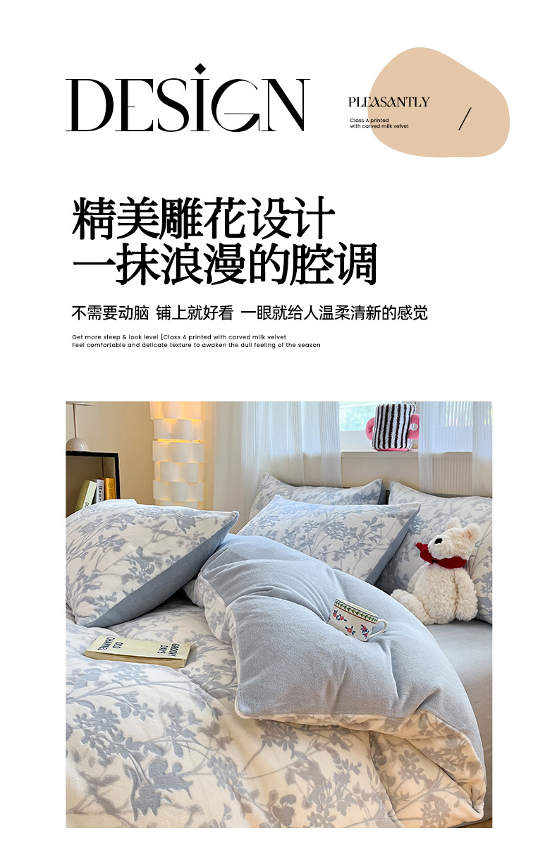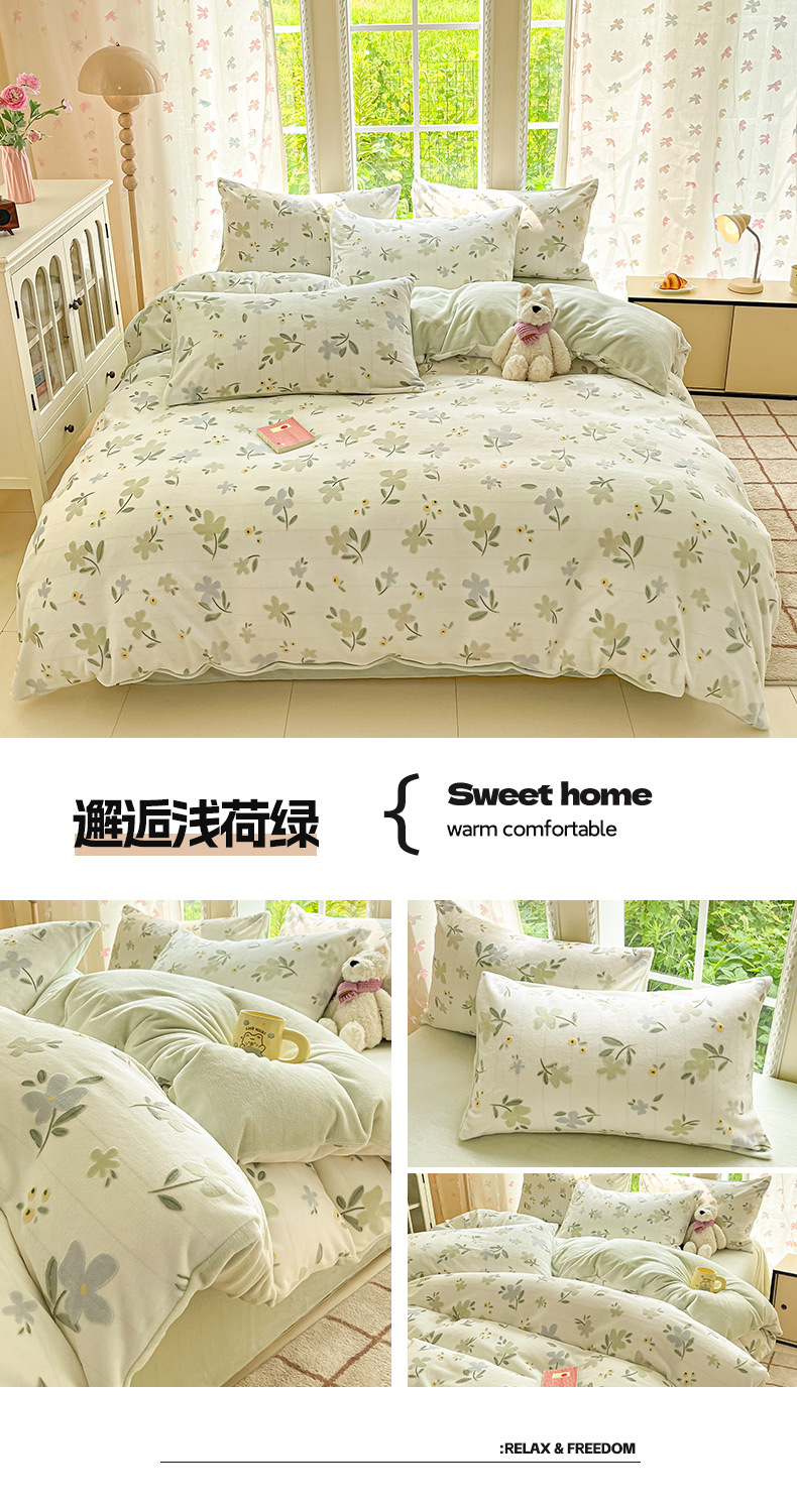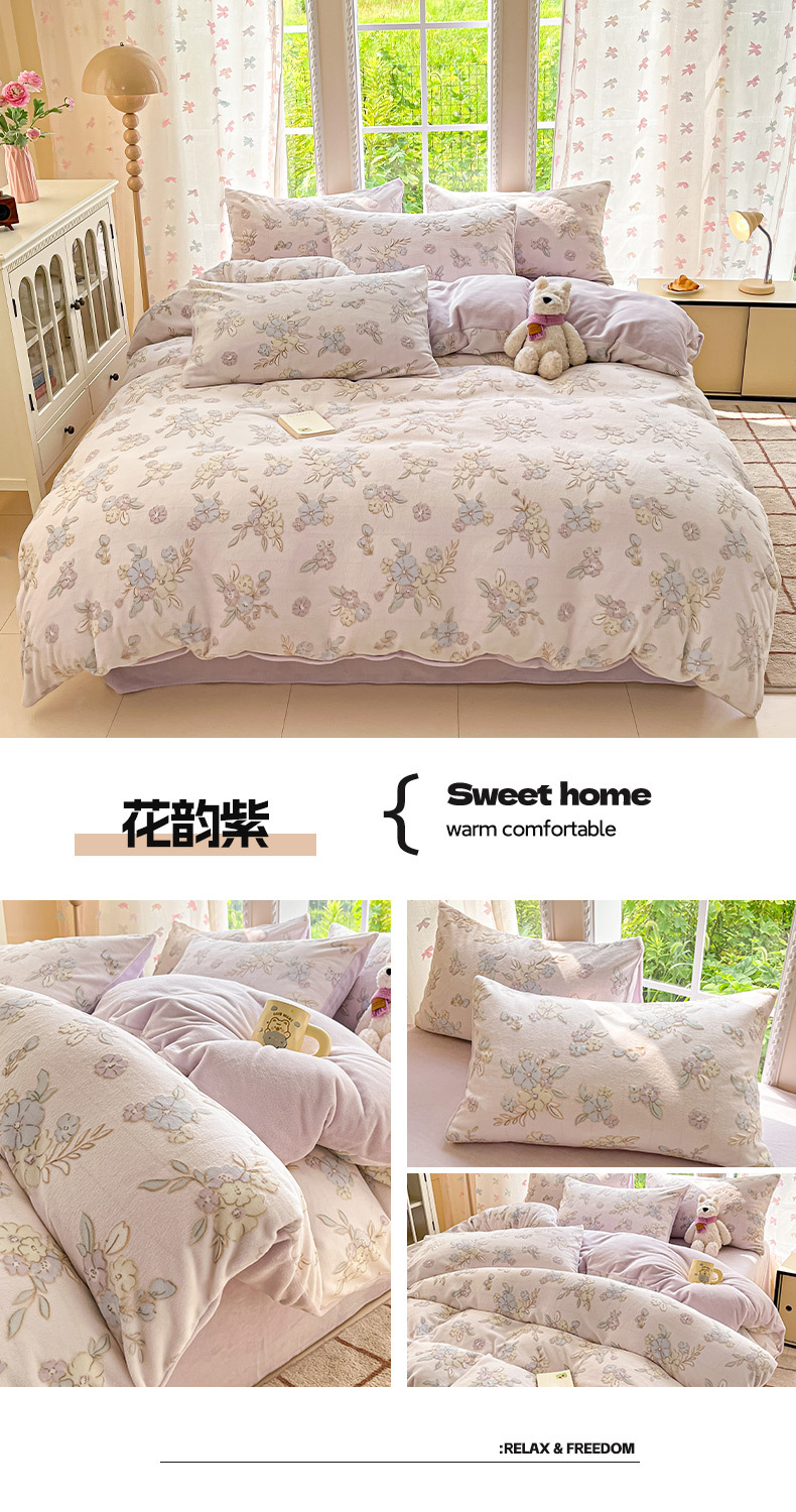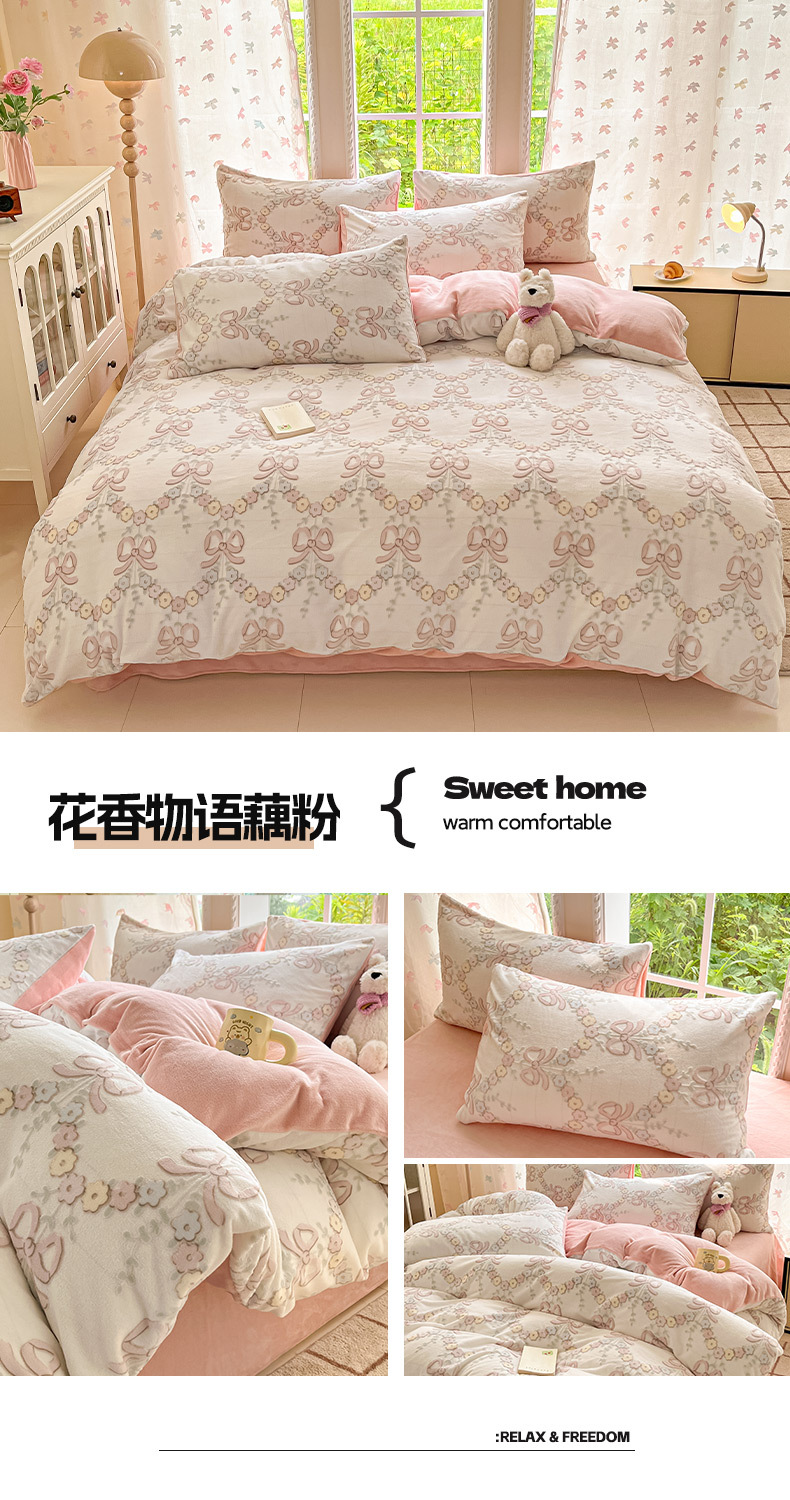 A类母婴级加厚保暖牛奶绒四件套珊瑚绒雕花绒被套加绒床单床笠款3