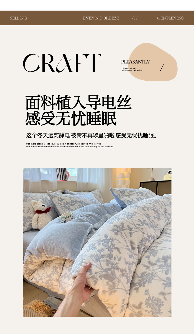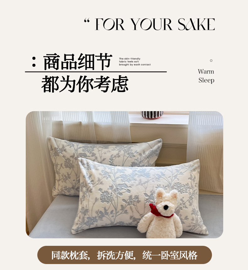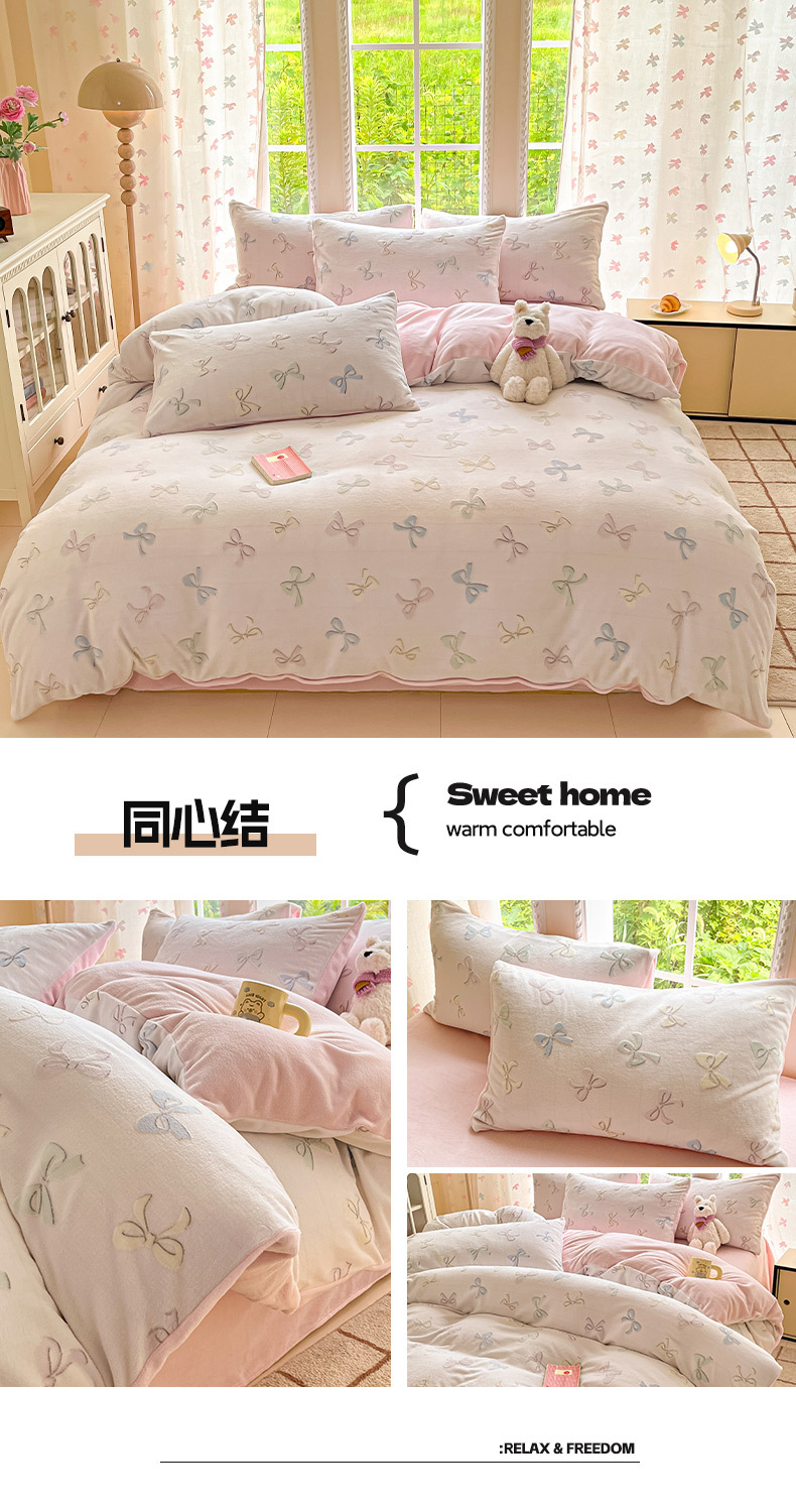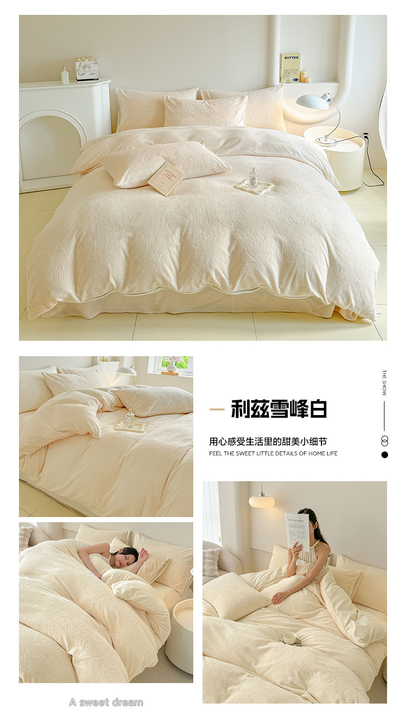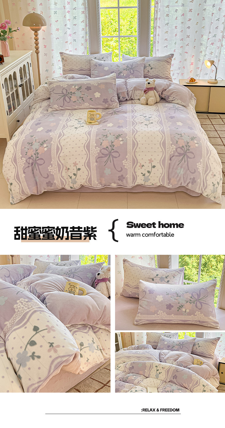 A类母婴级加厚保暖牛奶绒四件套珊瑚绒雕花绒被套加绒床单床笠款3