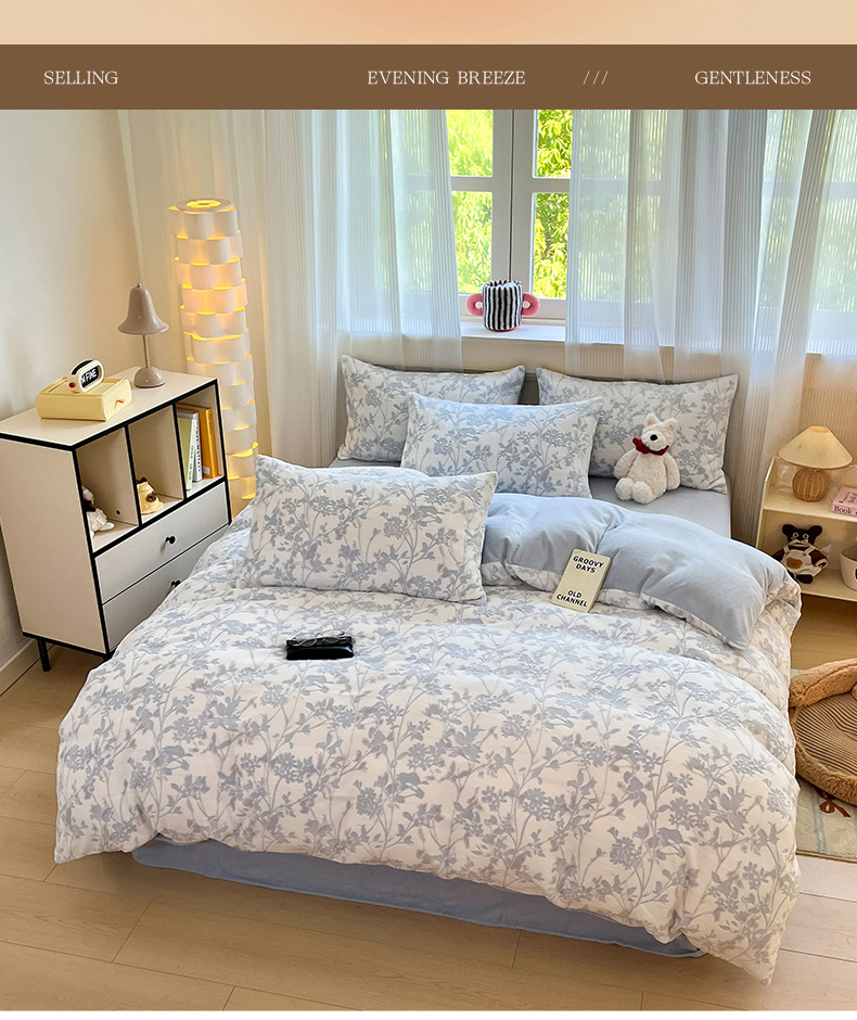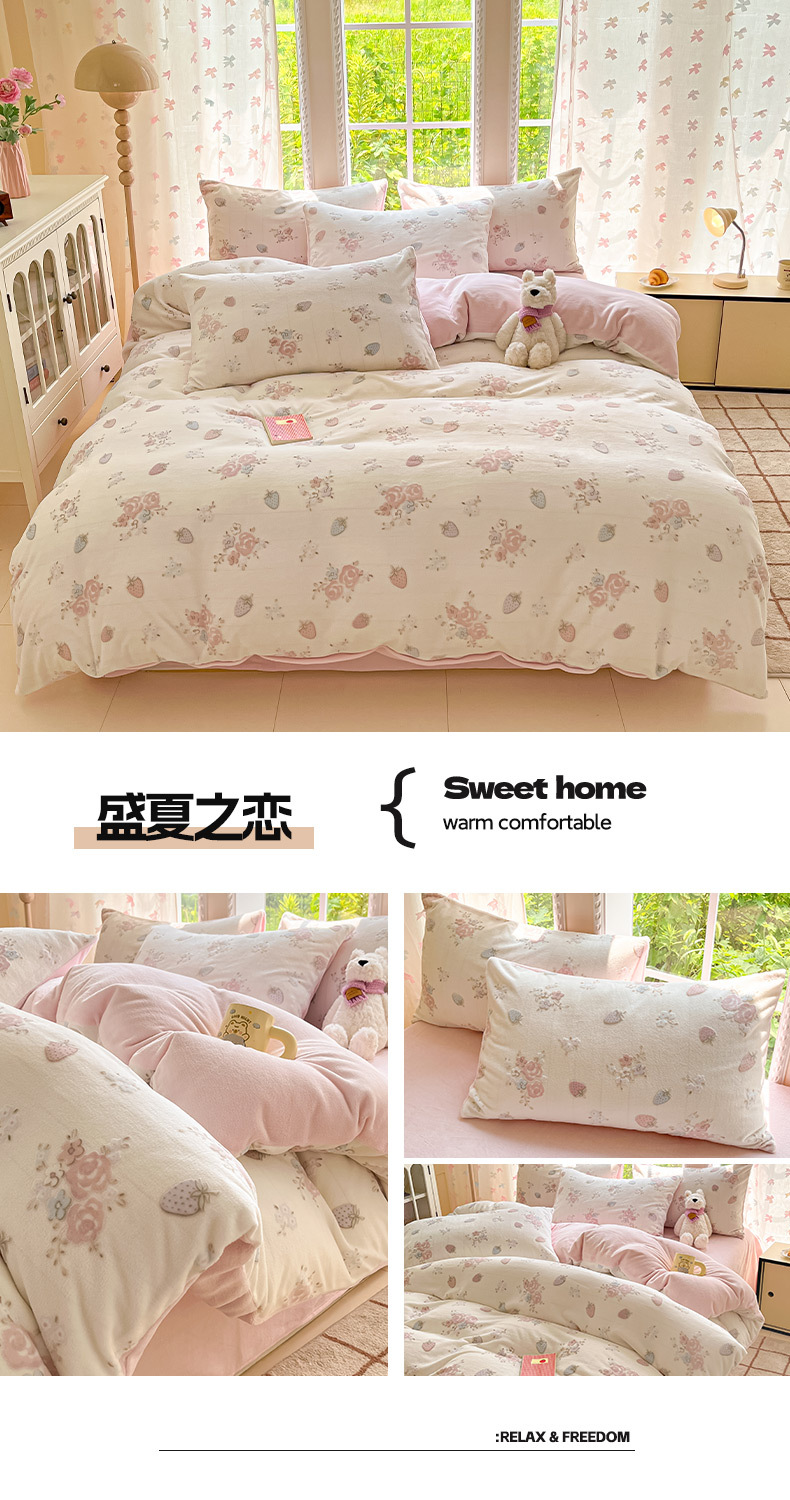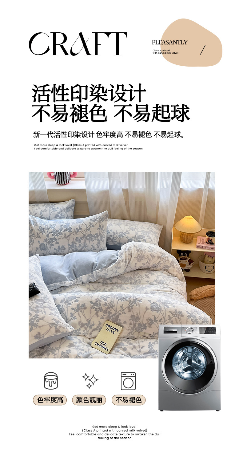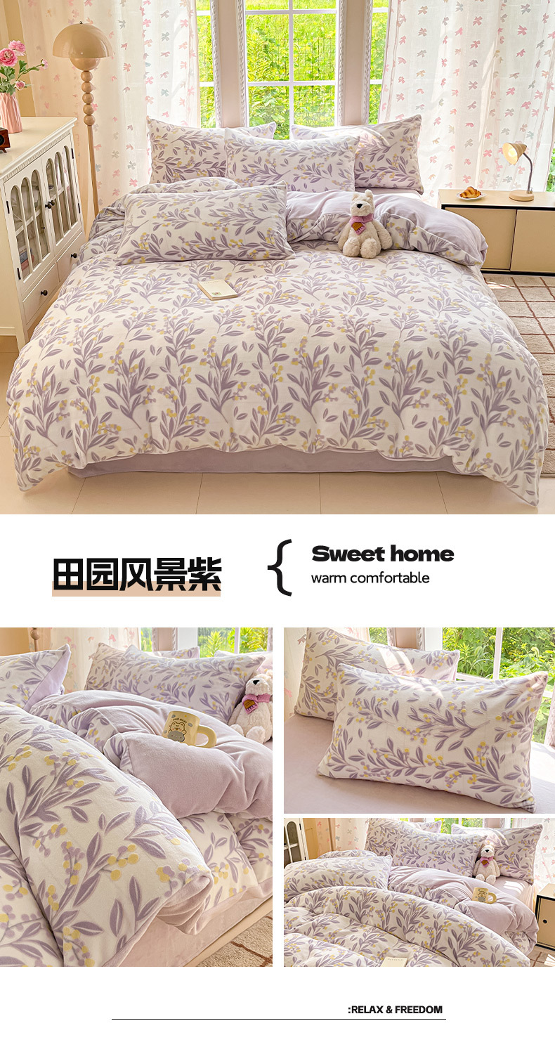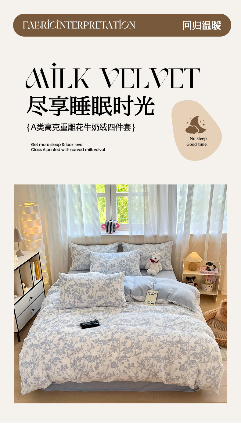 A类母婴级加厚保暖牛奶绒四件套珊瑚绒雕花绒被套加绒床单床笠款3