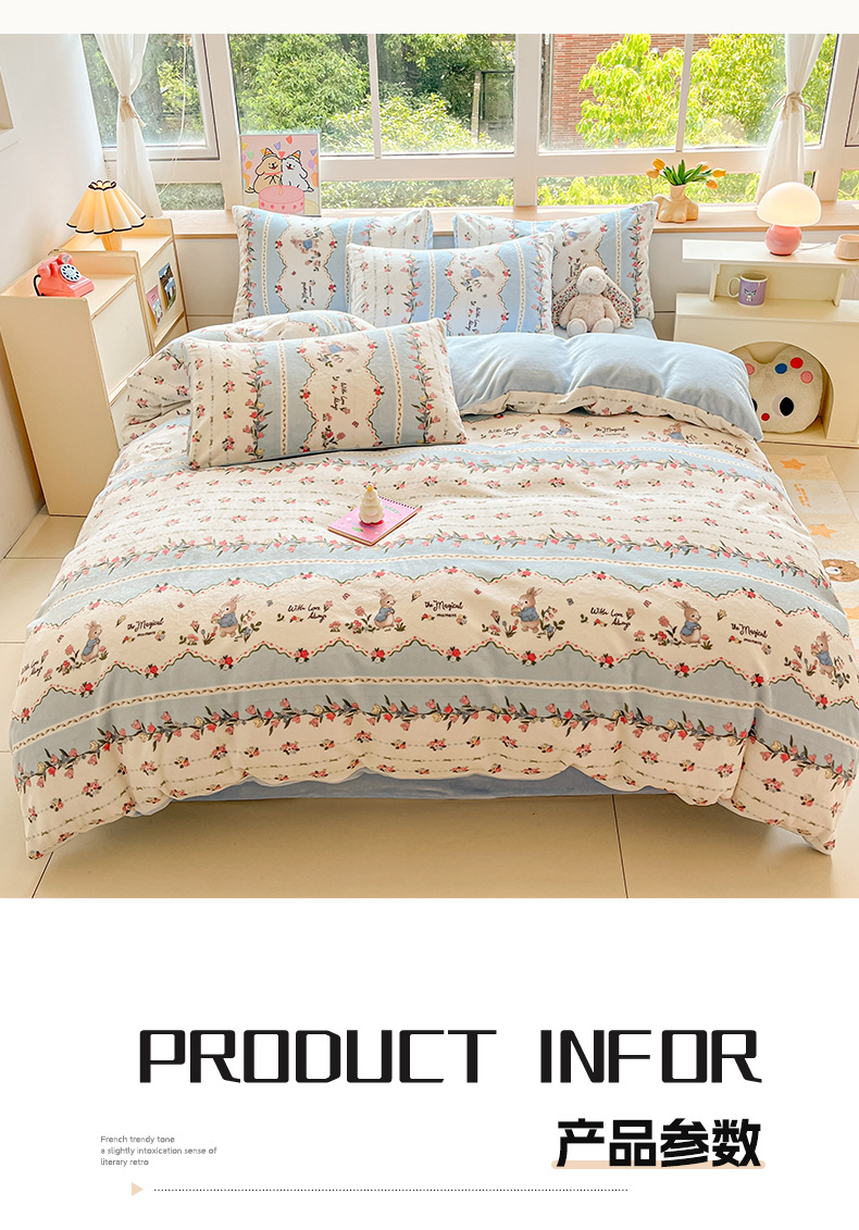 | 1.2m bed sheet three-piece quilt cover 1.5*2.0m bed sheet 1.6*2.3m pillowcase * 1(1.2m床单三件套 被套1.5*2.0m床单1.6*2.3m枕套*1) | USD $12.12 | 476 set available |