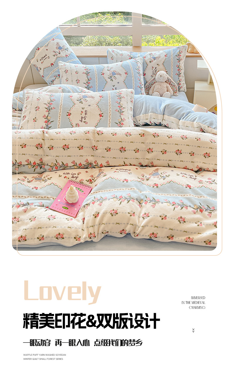 牛奶绒四件套加厚珊瑚绒床单被罩南通床上用品三件套冬季加绒被套