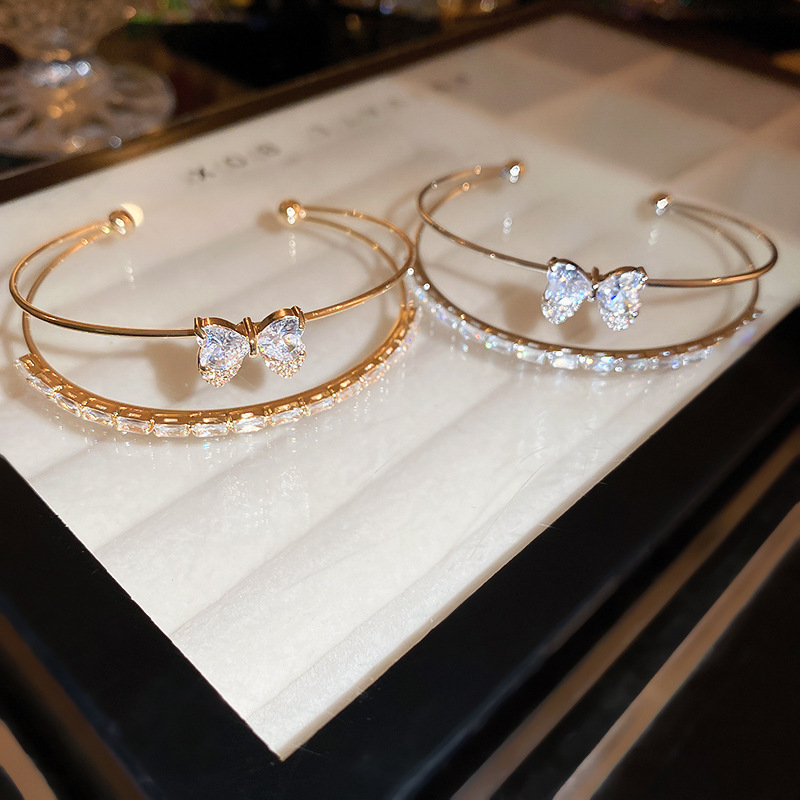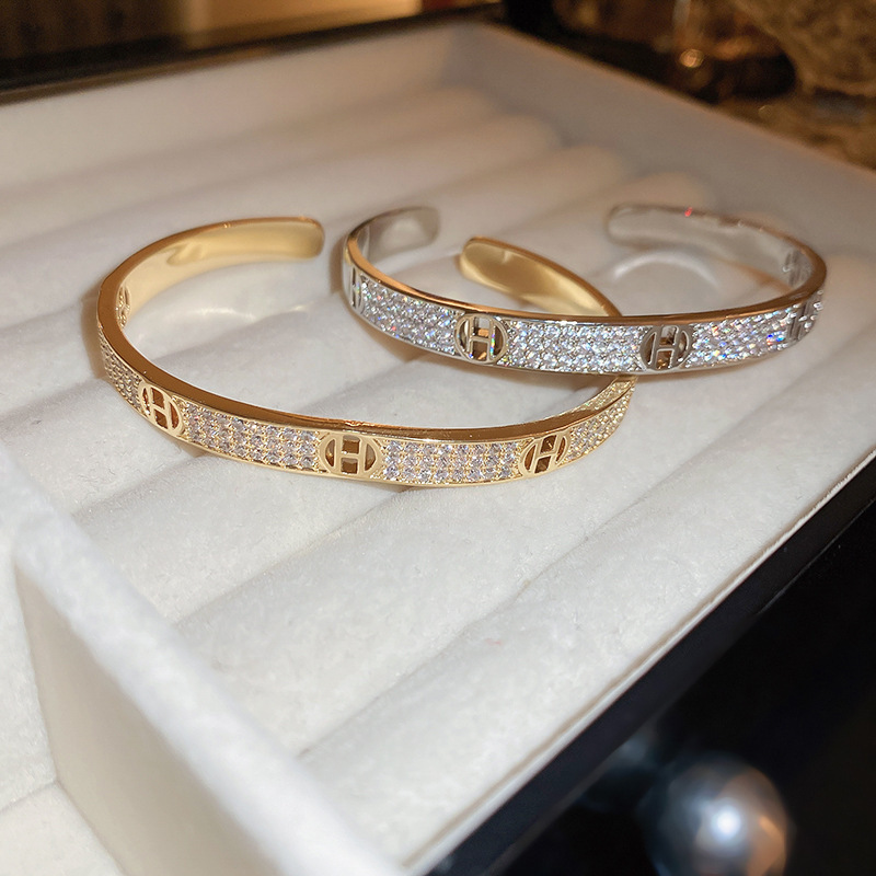 轻奢锆石字母花朵手镯时尚高级感气质手环通勤小众精致百搭手饰女