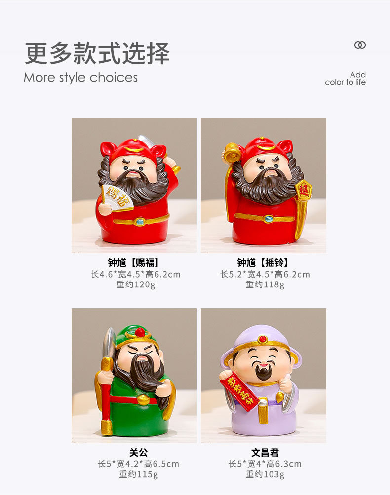新中式五路财神家居摆件钟馗小神仙摆件关羽送祝福职场礼品伴手礼