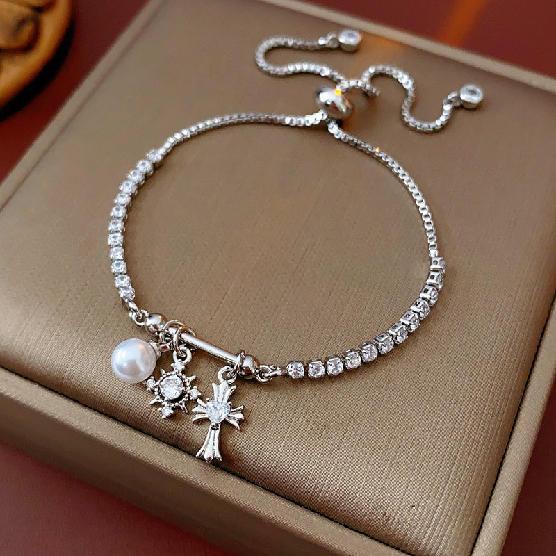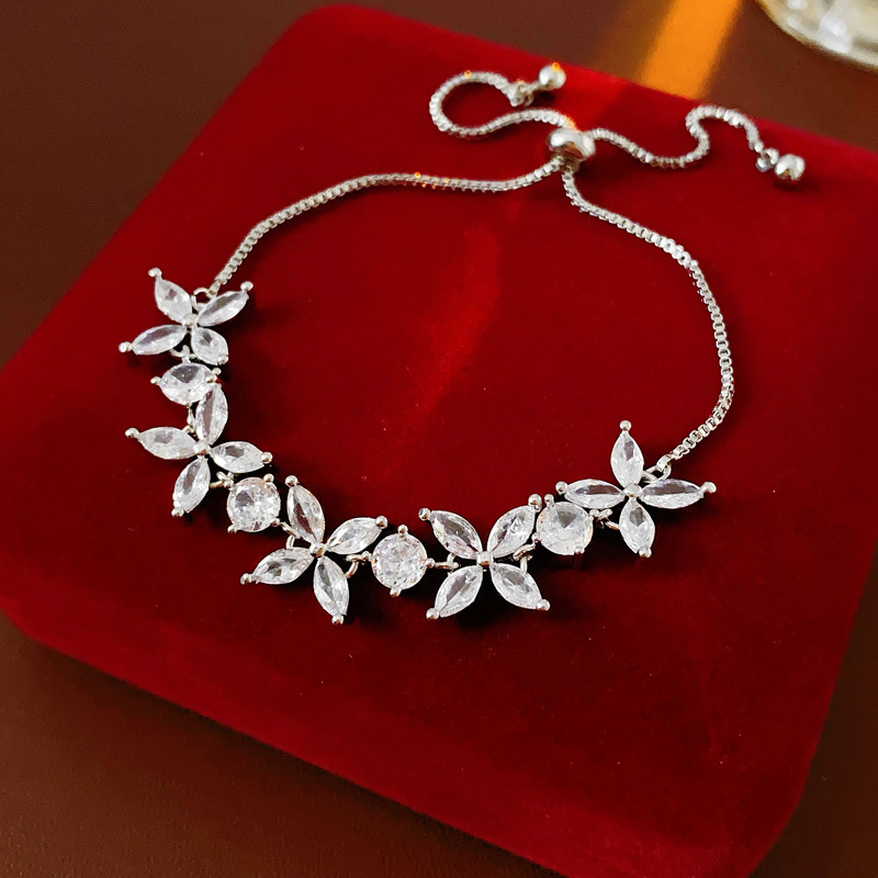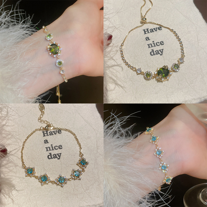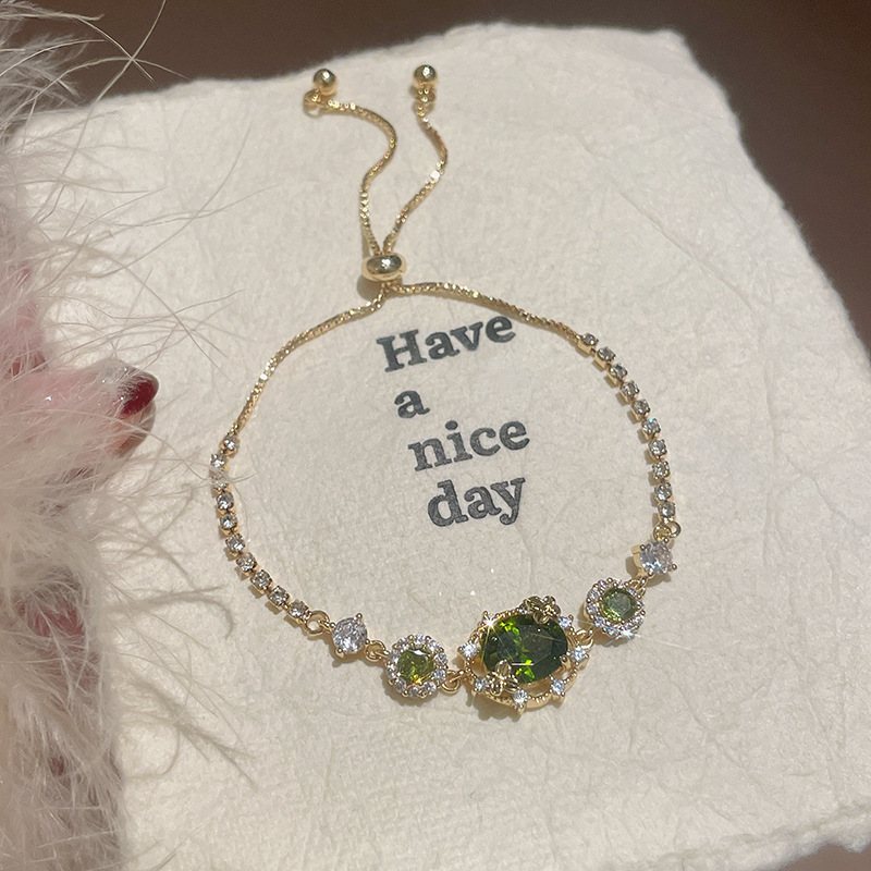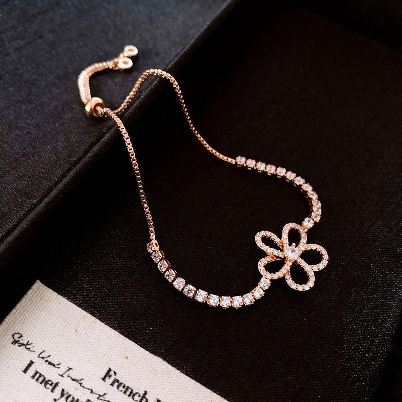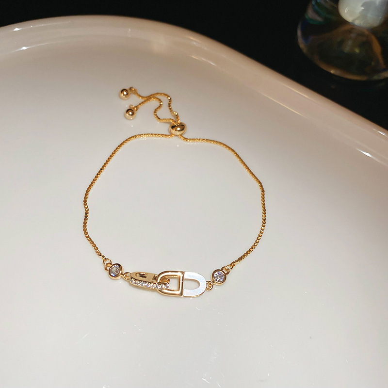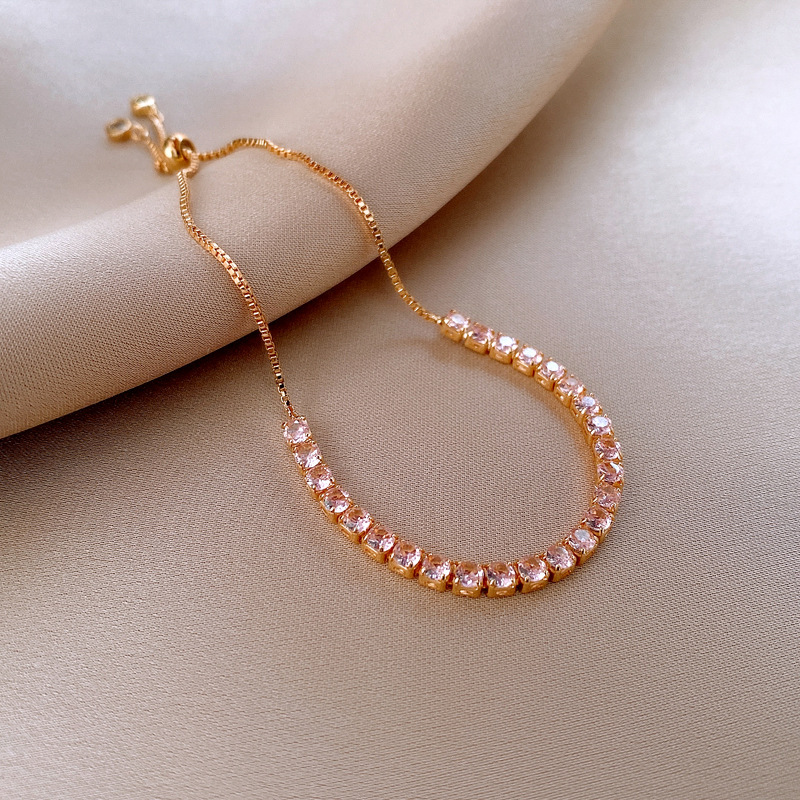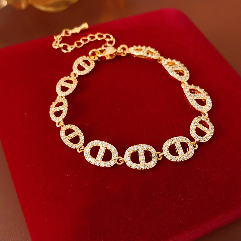 轻奢真金电镀锆石椭圆镶钻可调节手链时尚高级感手环通勤百搭手饰
