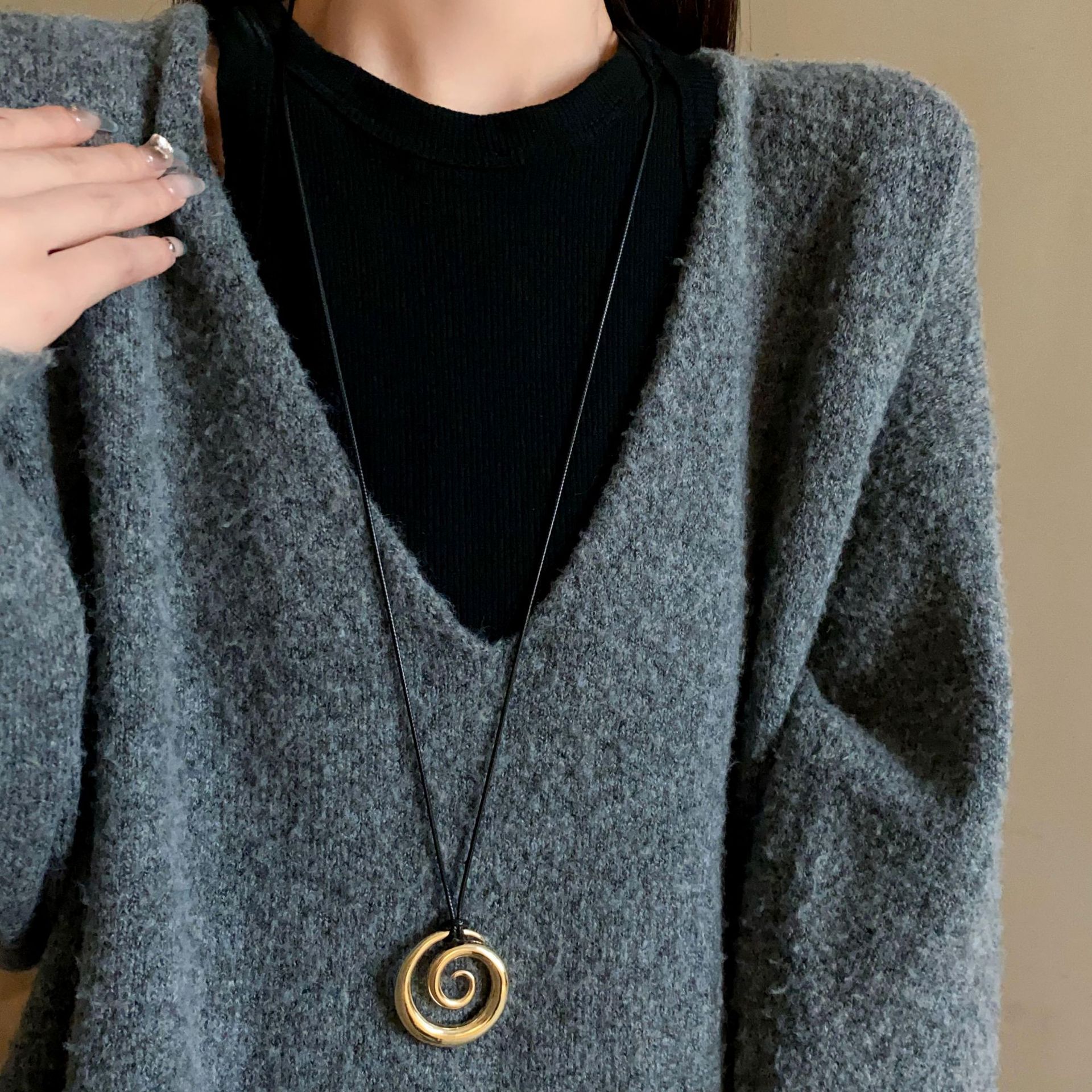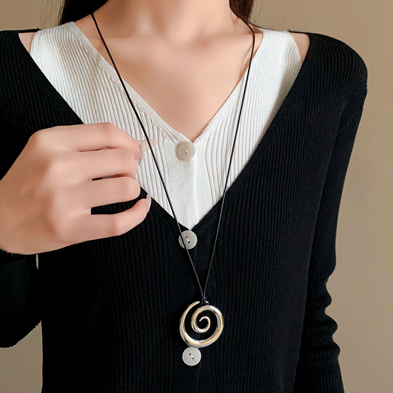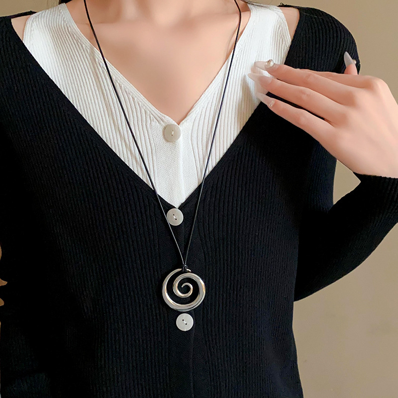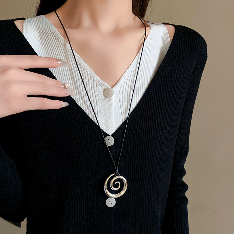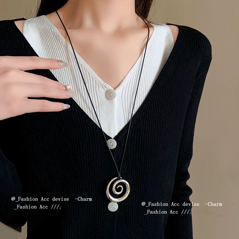 秋冬金属圆环吊坠项链欧美高级感潮流毛衣链跨境设计百搭项饰批发